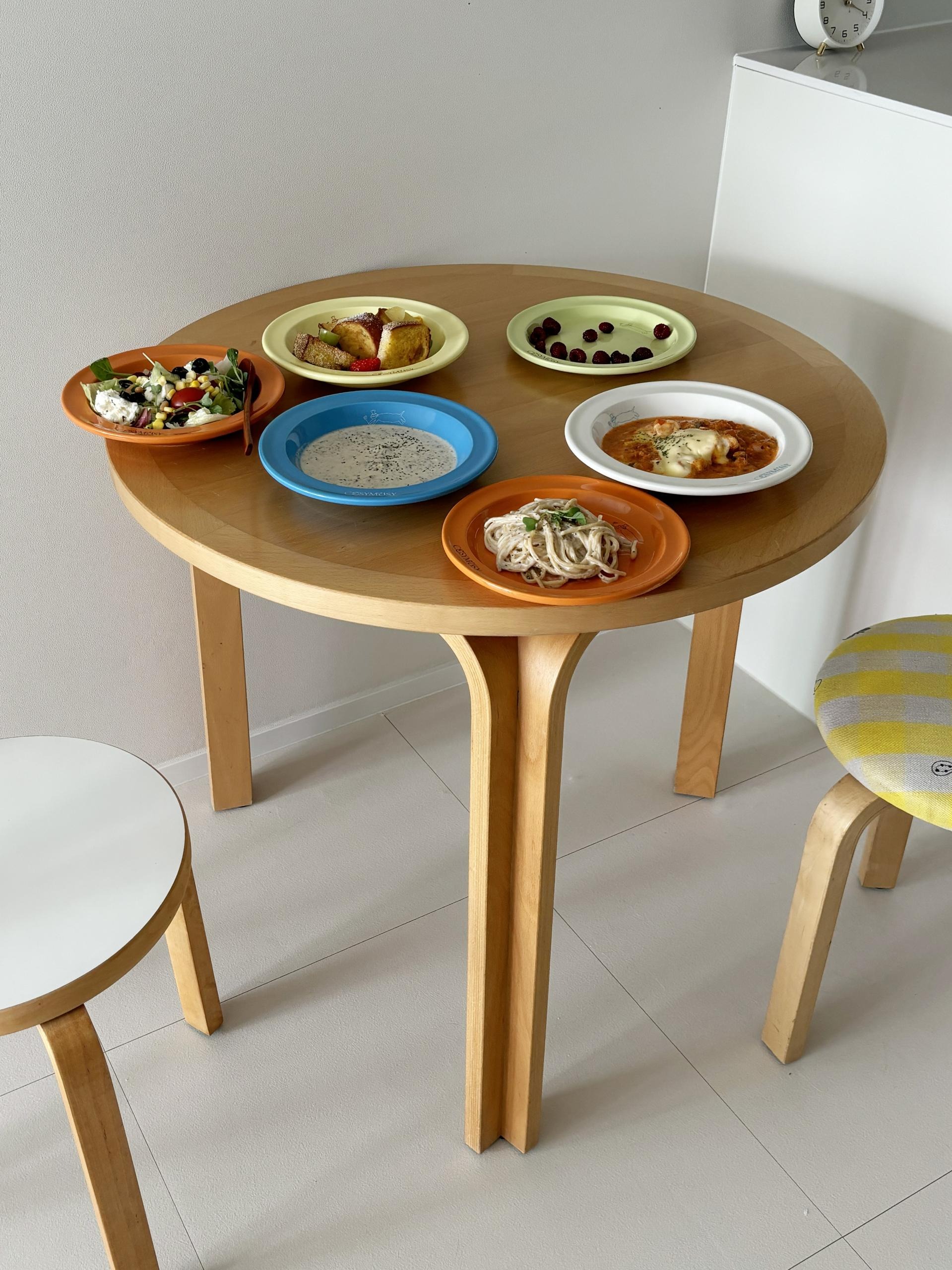 원형 형태로 디자인 되었으며, 유광의 질감과 톡톡 튀는 컬러감이 어우러져 식탁 분위기가 순식간에 화사하게 연출됩니다.
