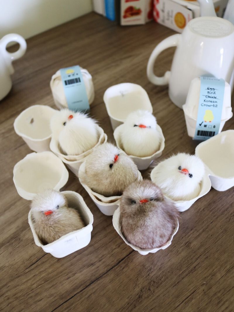 👩🏻 : 배가 한껏 부푼 뱁새의 형태를 그대로 표현한 뱁새 키링이 2구 달걀 케이스로 한 세트로 나오다니!