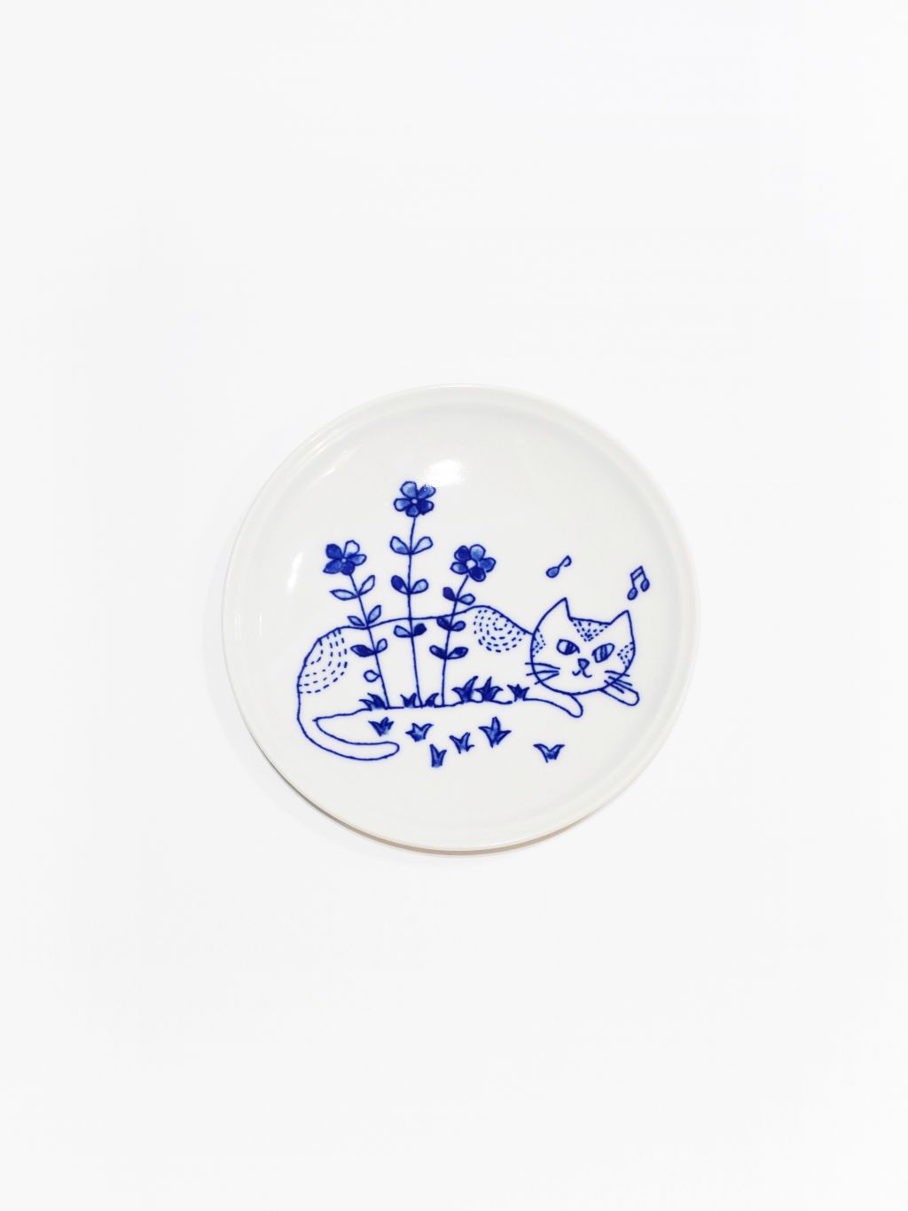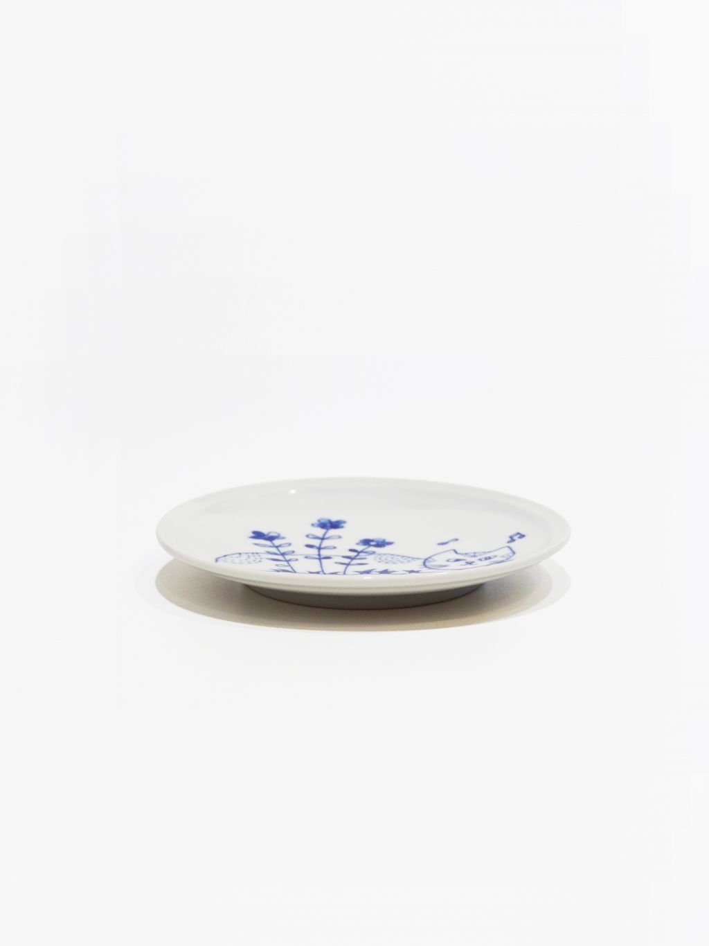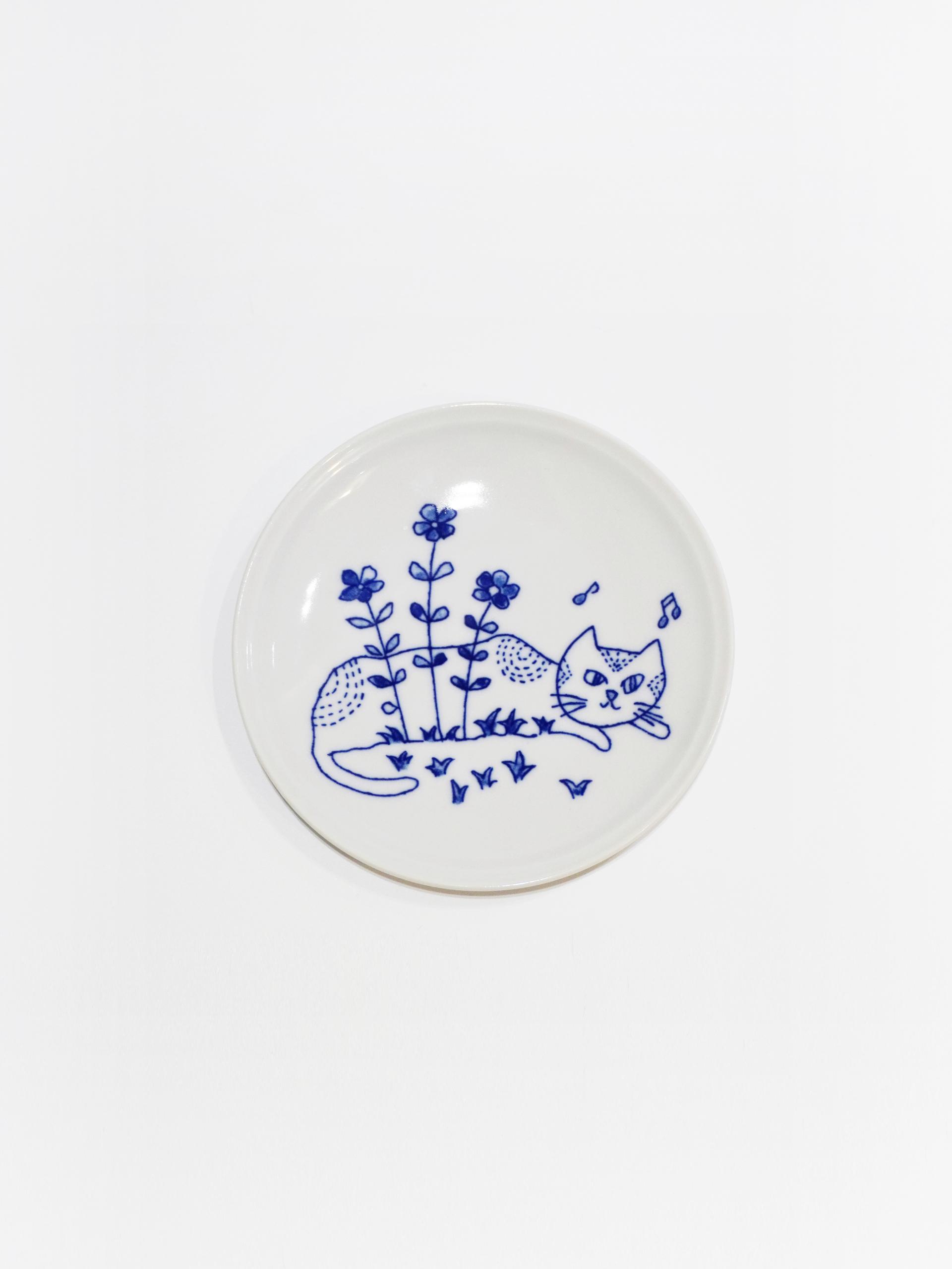 Blue Flower Graden Cat Plate
