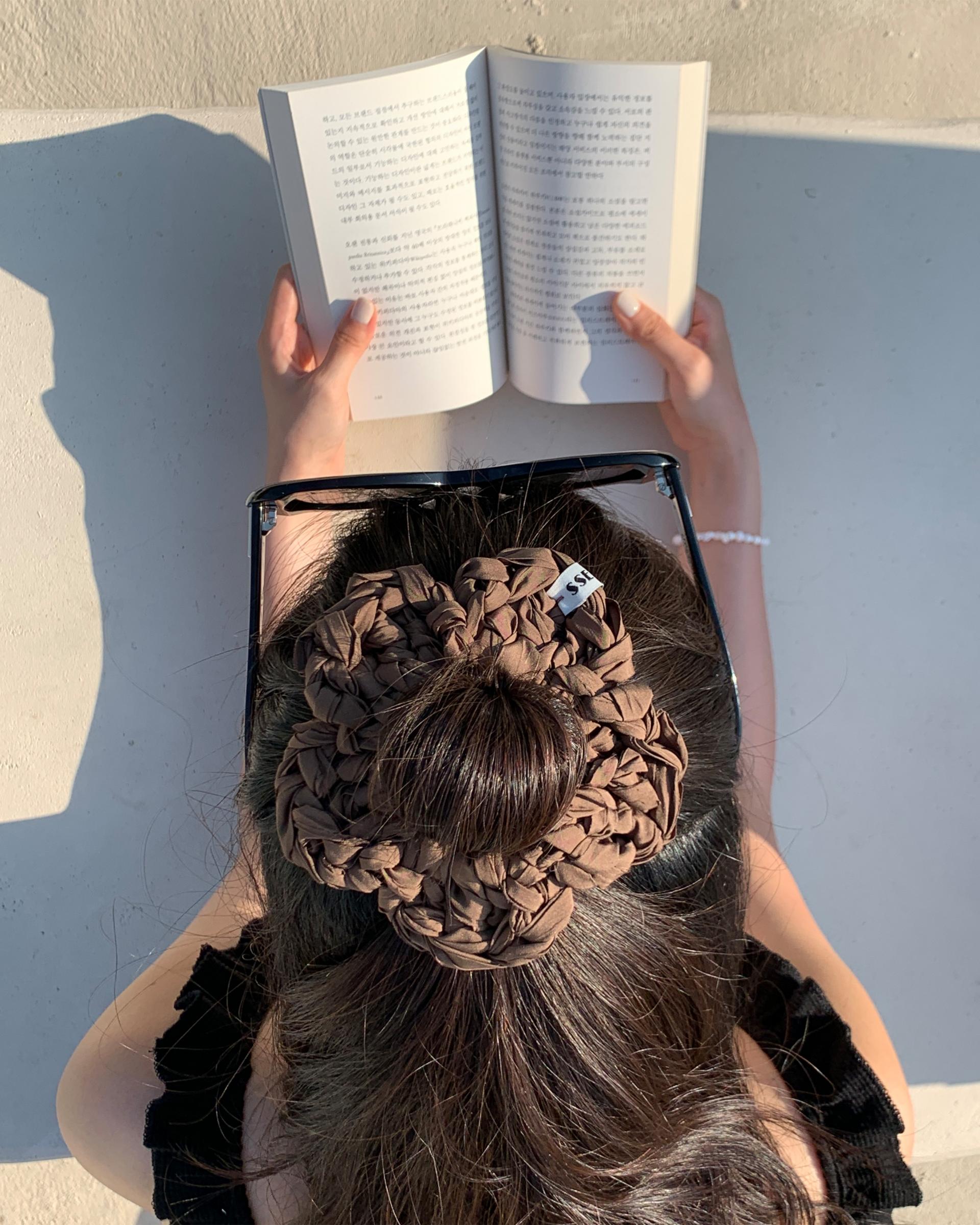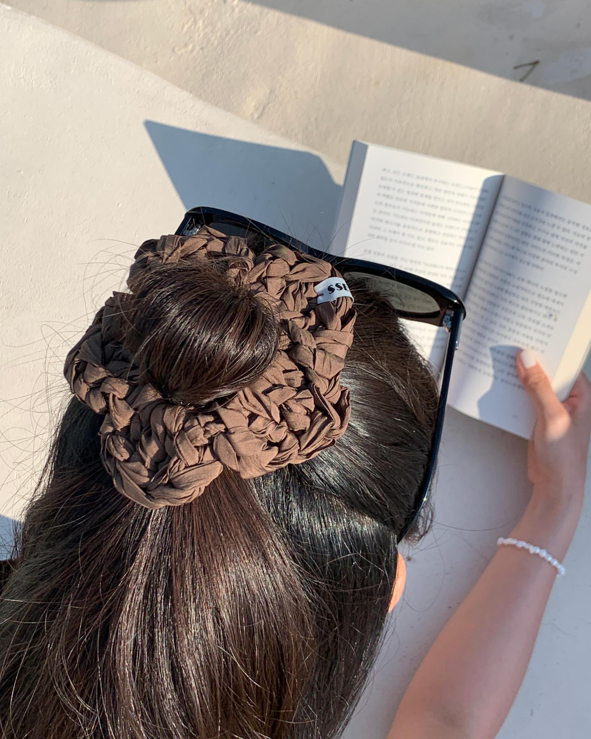 머리를 묶은 후 머리에 이쁘게 씌워 보세요. :)