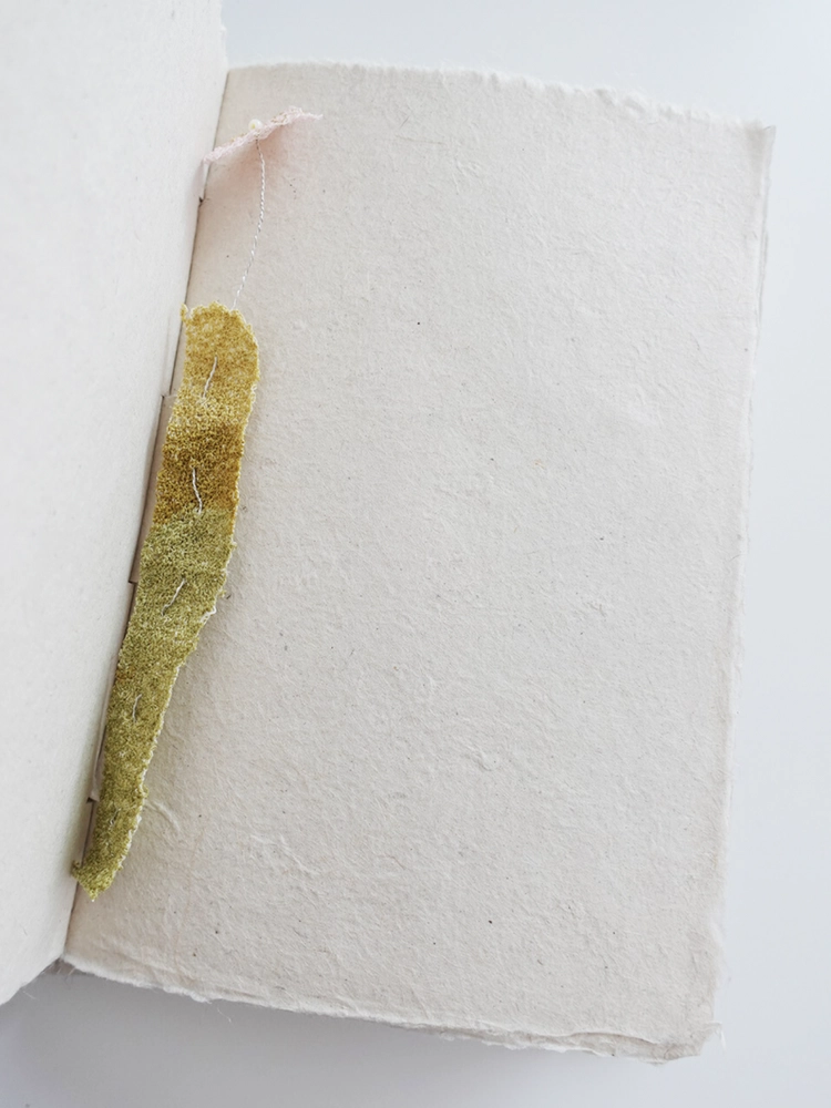 수작업으로 작업된 자수 조각들로 만든 꽃송이를 연상시키는 북마크입니다.