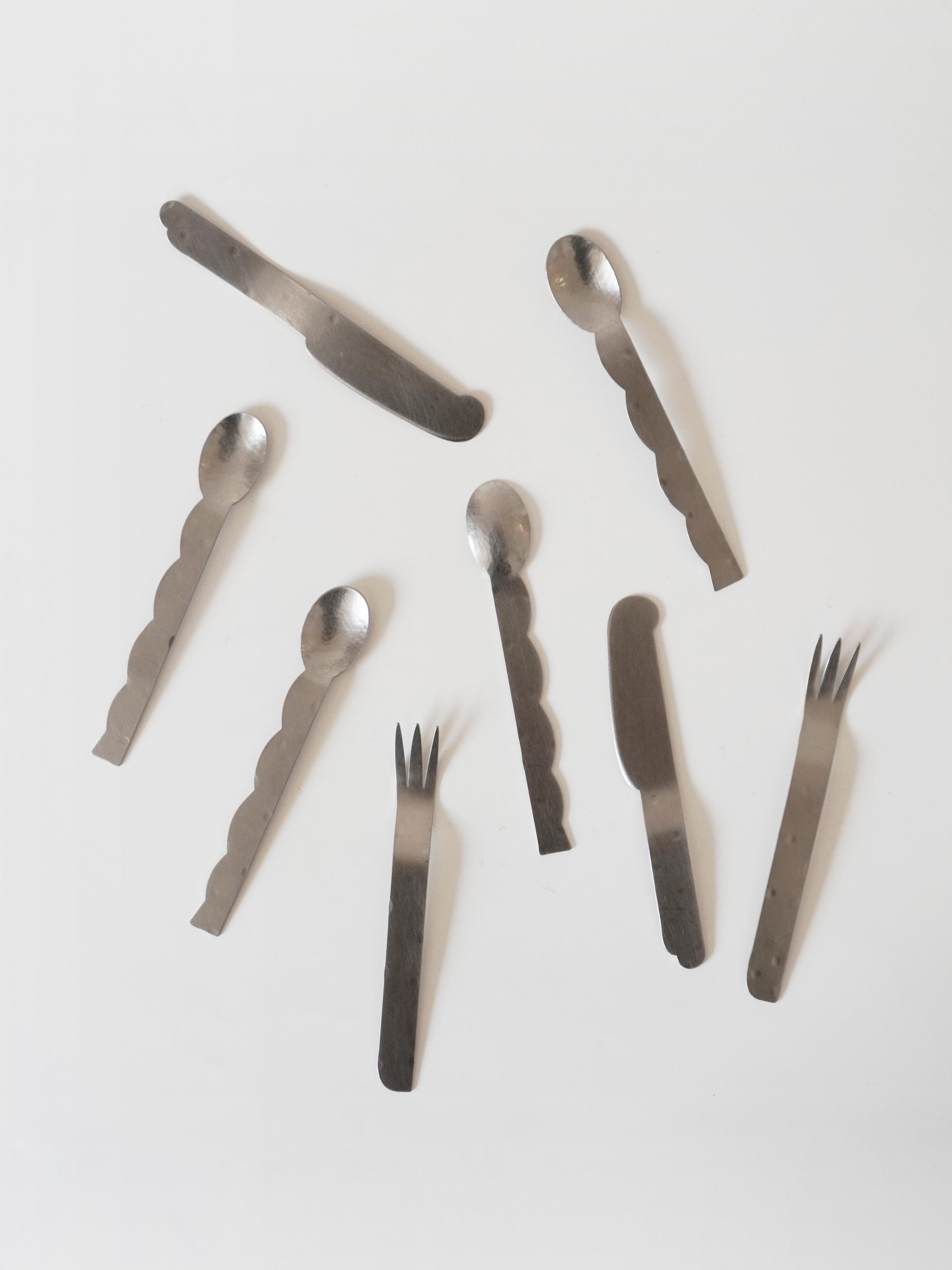 모든 커트러리에 망치 텍스처가 눈처럼 내려있습니다.