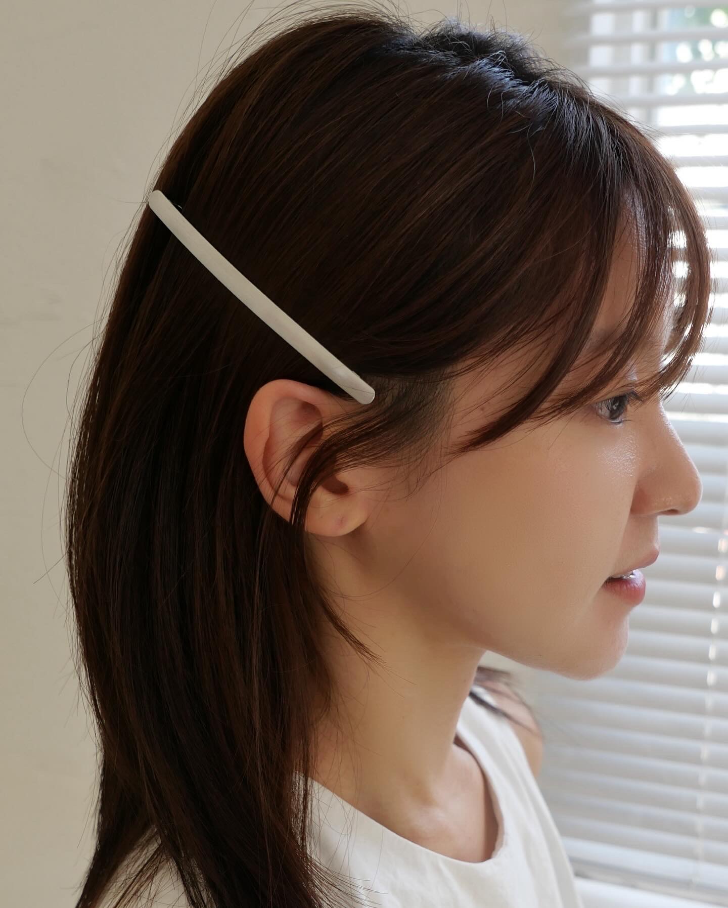 👩🏻: 매트한 질감의 길이가 있는 실버 헤어핀이에요!