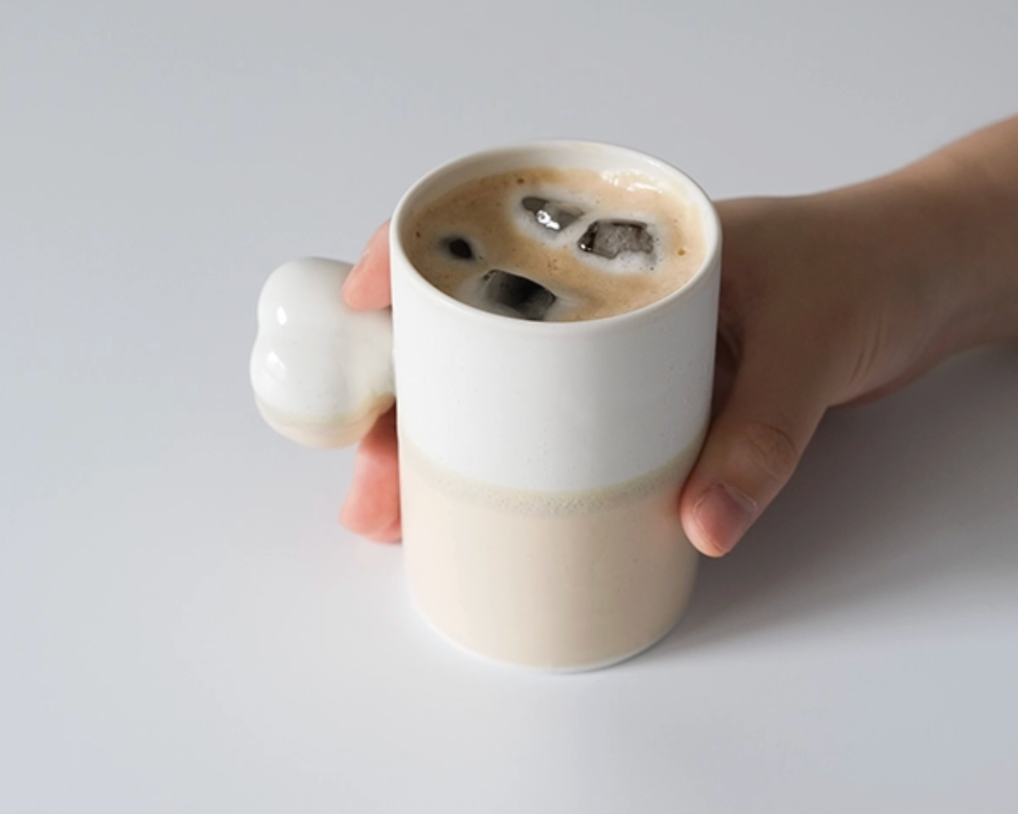 목화솜의 형태를 가장 편한 그립감으로 연구하고 빚어 컵의 손잡이로 기록하였습니다.