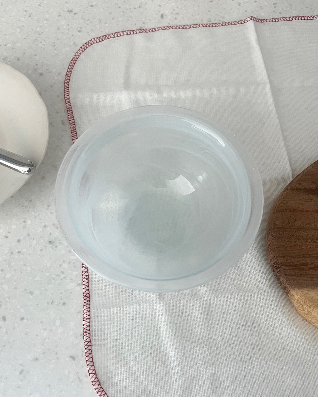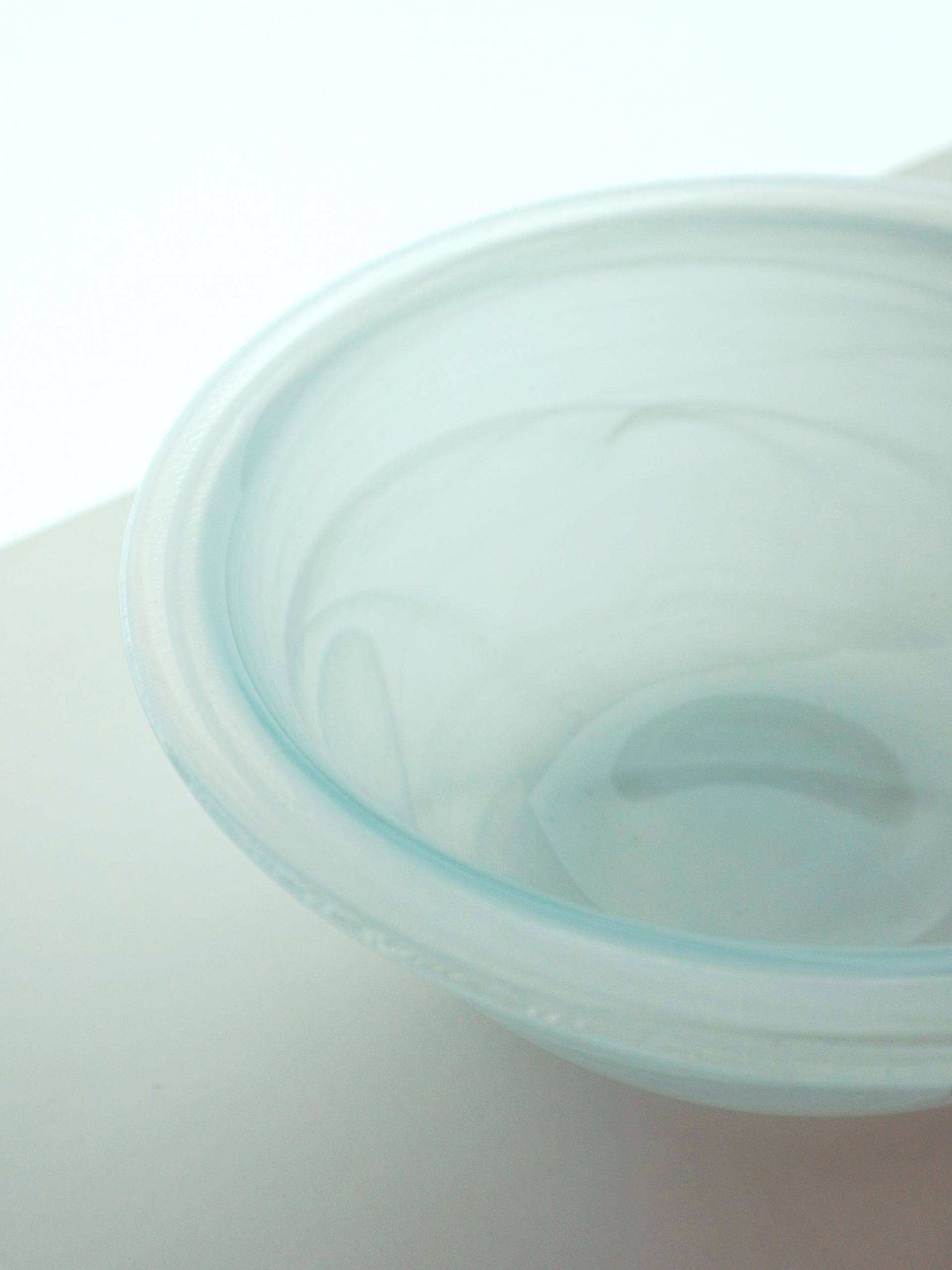 투명한 유리에 화이트 마블이 포인트인 보울입니다.