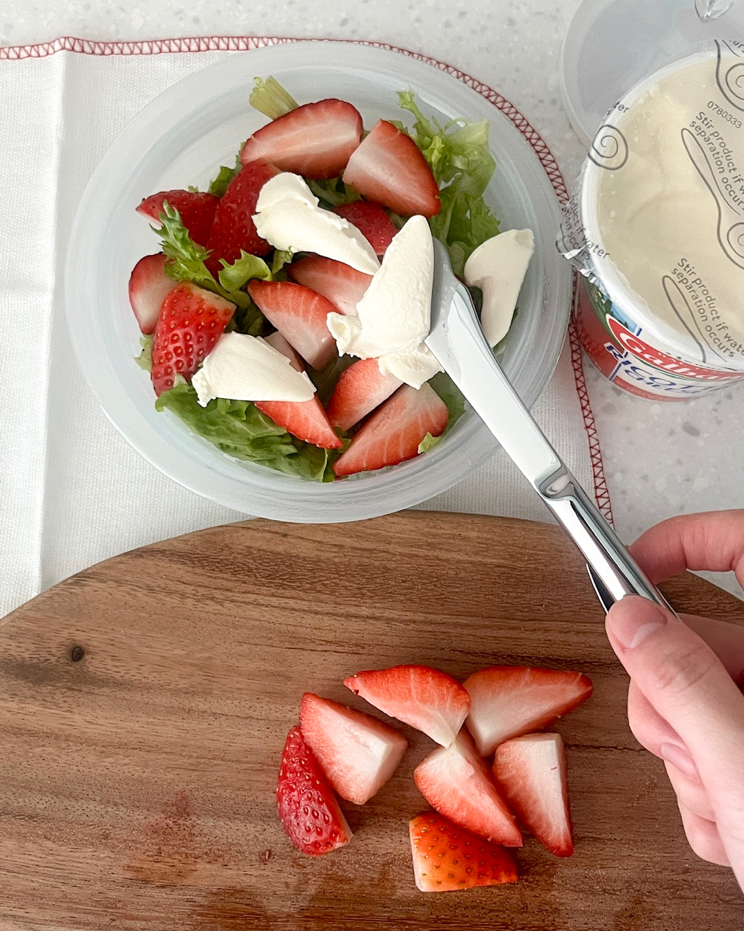 애매하게 남은 채소류를 잘게 썰어 담아 드레싱을 한 스쿱 넣어 소파에 앉아 한 손에 들고 가볍게 먹는 용도로 사용하고 있어요.