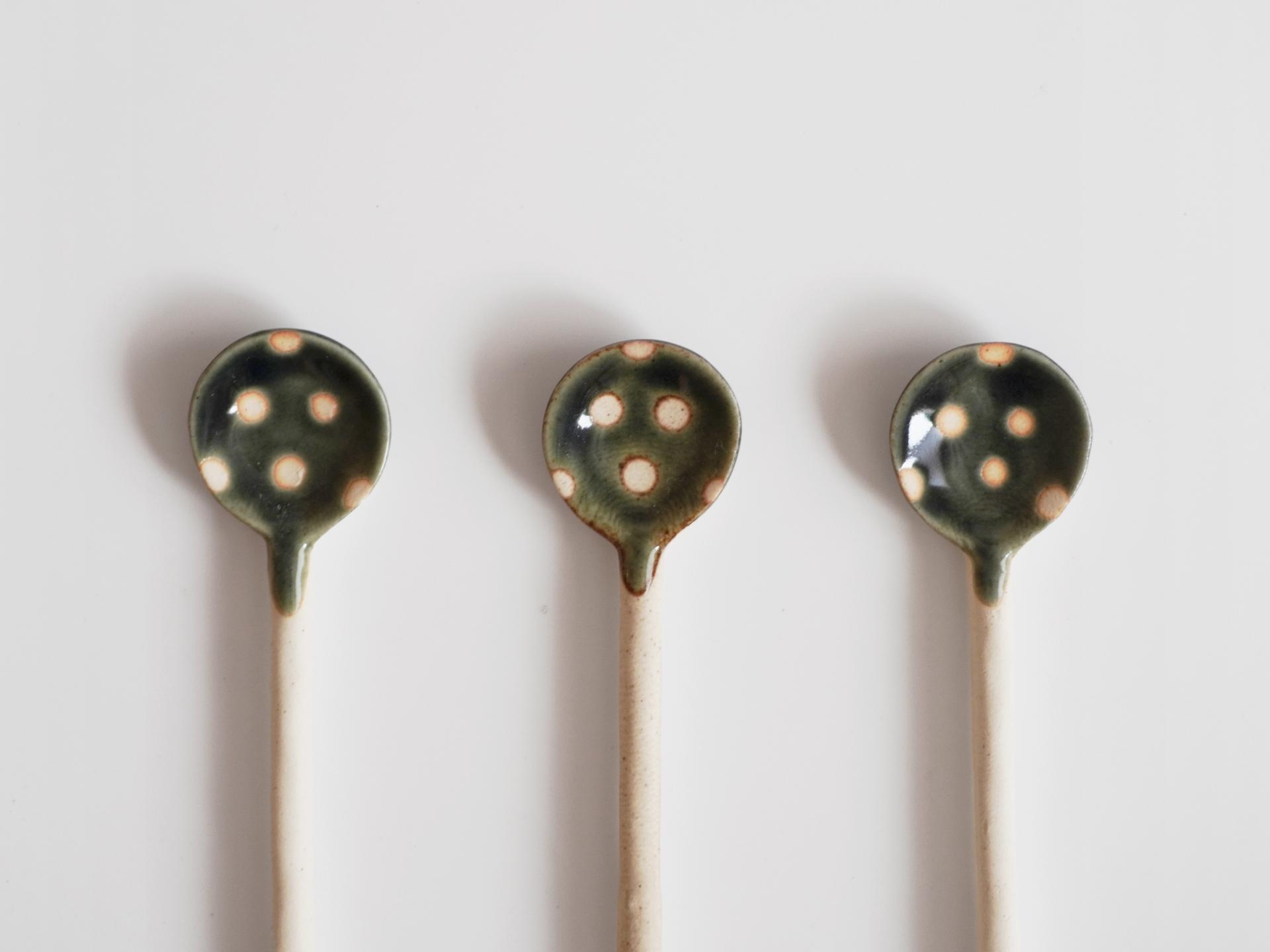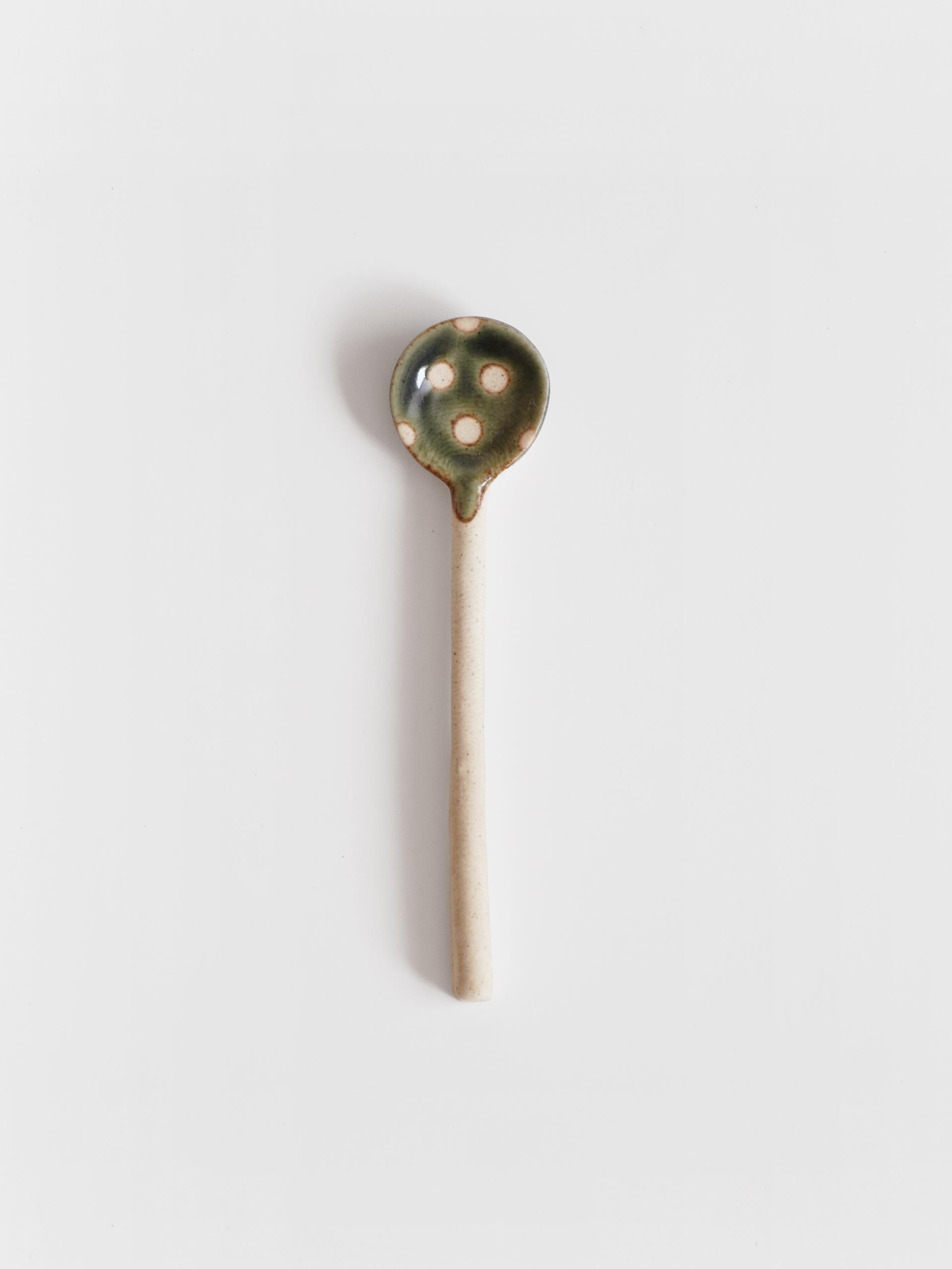 👩🏻 : 도트와 차분한 올리브 유약의 조합이 밋밋한 그릇에 포인트가 되어주는 스푼이에요.