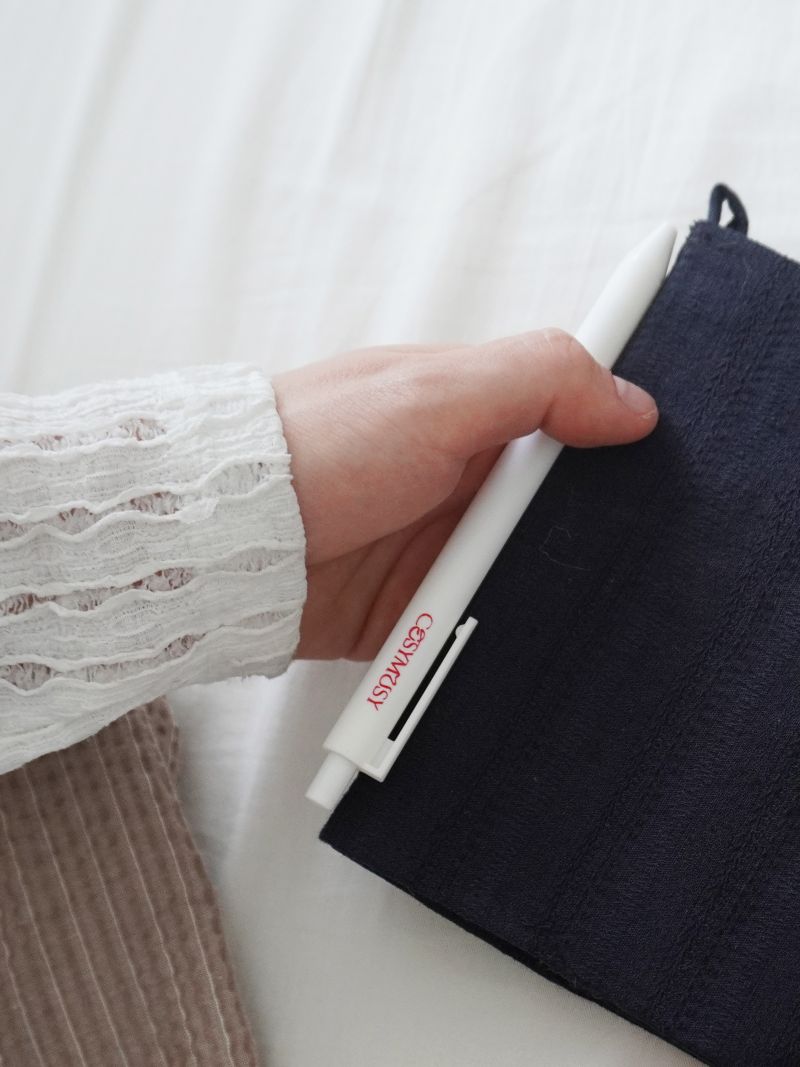 노트를 챙기면 펜을 깜박하게 되는 저의 칠칠 맞은 성격으로 탄생한 제품인데요! 저는 두 권을 구매하여 하나는 영감 기록 노트용, 하나는 틈틈이 읽고 싶은 책을 담아 좋아하는 구절에 밑줄을 그어가며 활용하고 있어요. 그러다 보니 의외로 잦은 메모와 꾸준한 독서를 하고 있는 제 자신을 보며 뿌듯함도 느끼는 요즘이랍니다.