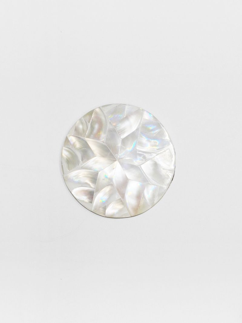 반짝이는 자개 조각들이 만들어낸 패턴이 돋보이는 코스터입니다.
