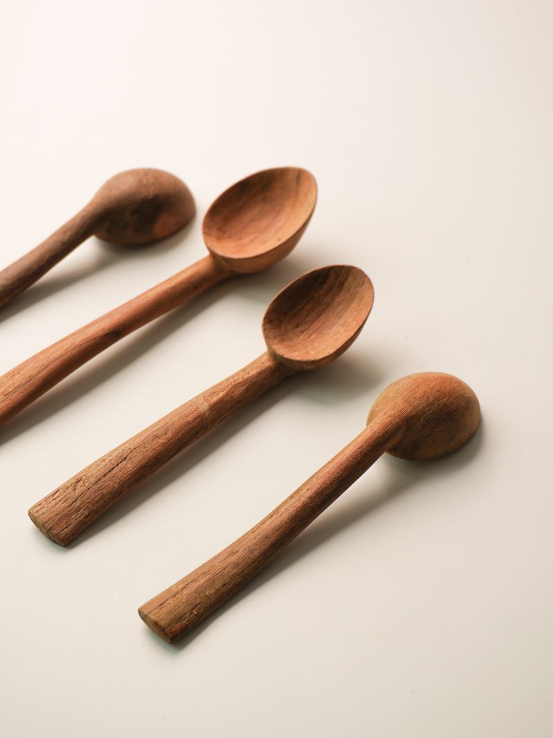 눈에 띄는 컬러라곤 빨간색 실 하나지만 우드 및 스테인레스를 포함한 다양한 소재의 테이블웨어 라인들을 품어내는 'Mok-hwa Som Fabric'!