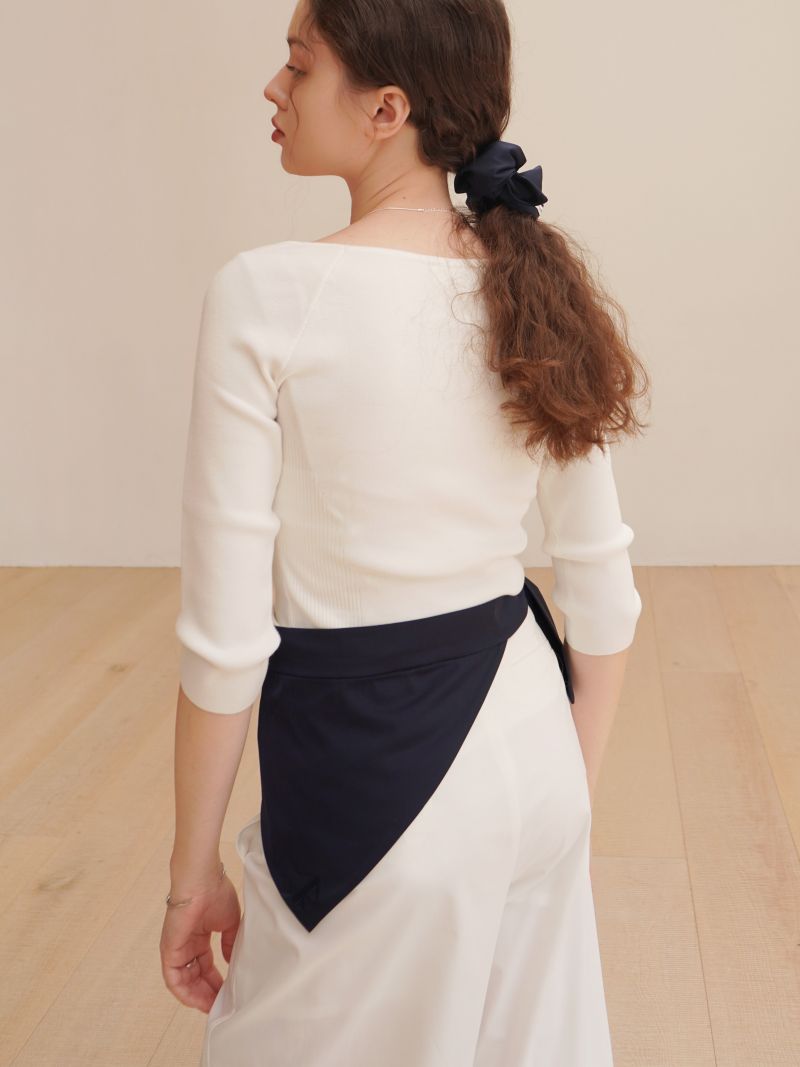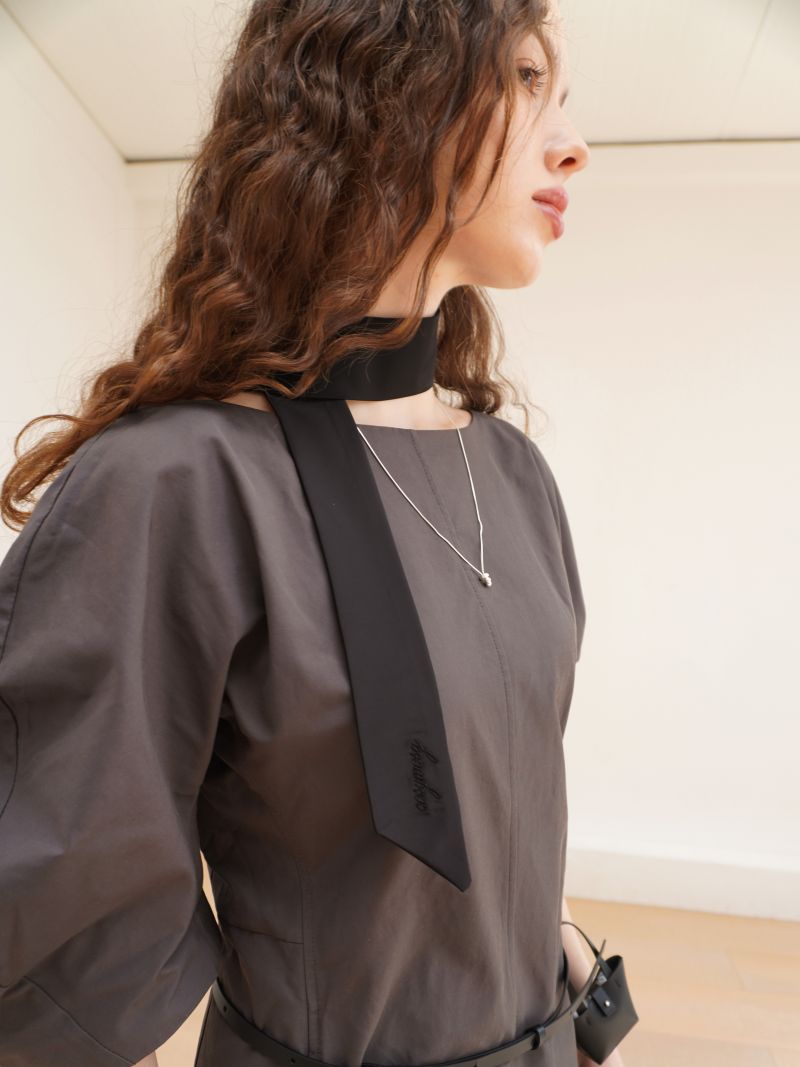 타이 부분을 그대로 두어 스카프처럼 연출할 수도 있으며, 위쪽으로 올려 리본처럼 묶을 수도 있는 투웨이 아이템입니다.