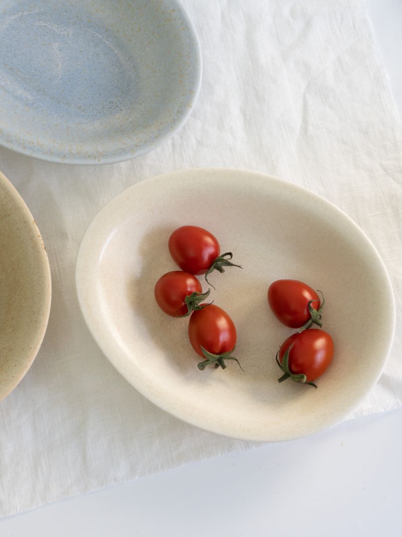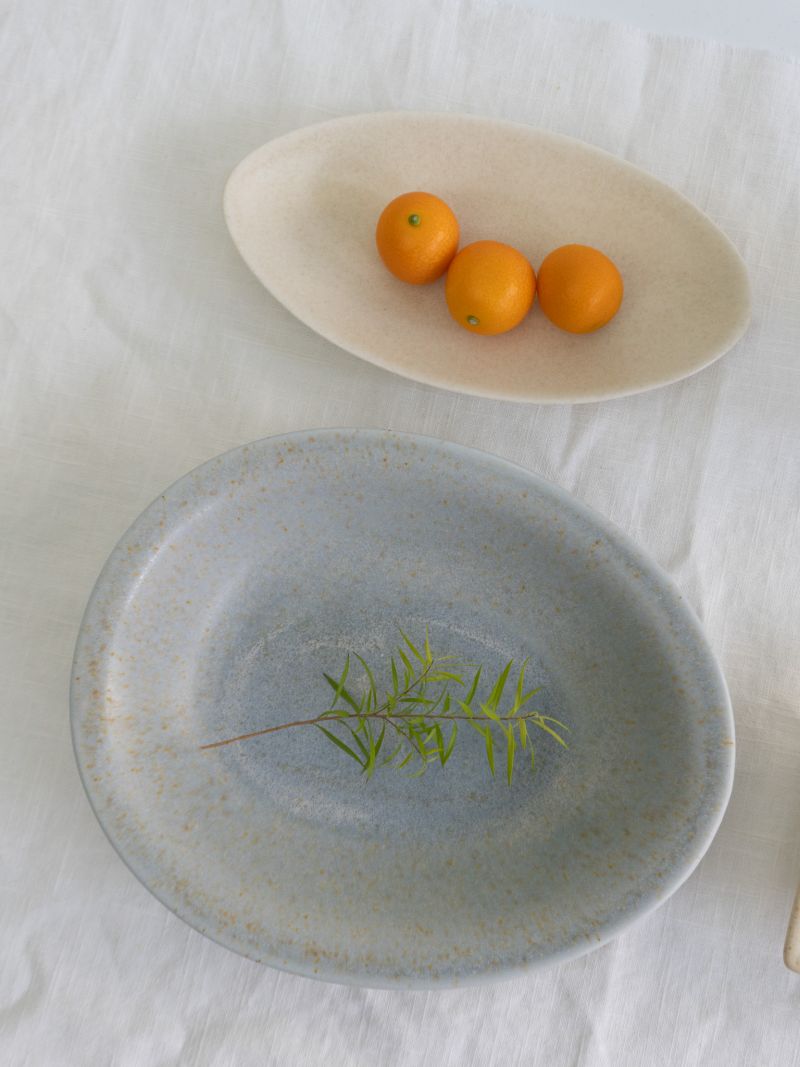 손바닥 위에 살포시 내려앉은 잎사귀처럼 부드러운 곡선이 돋보이는 작은 플레이트입니다.