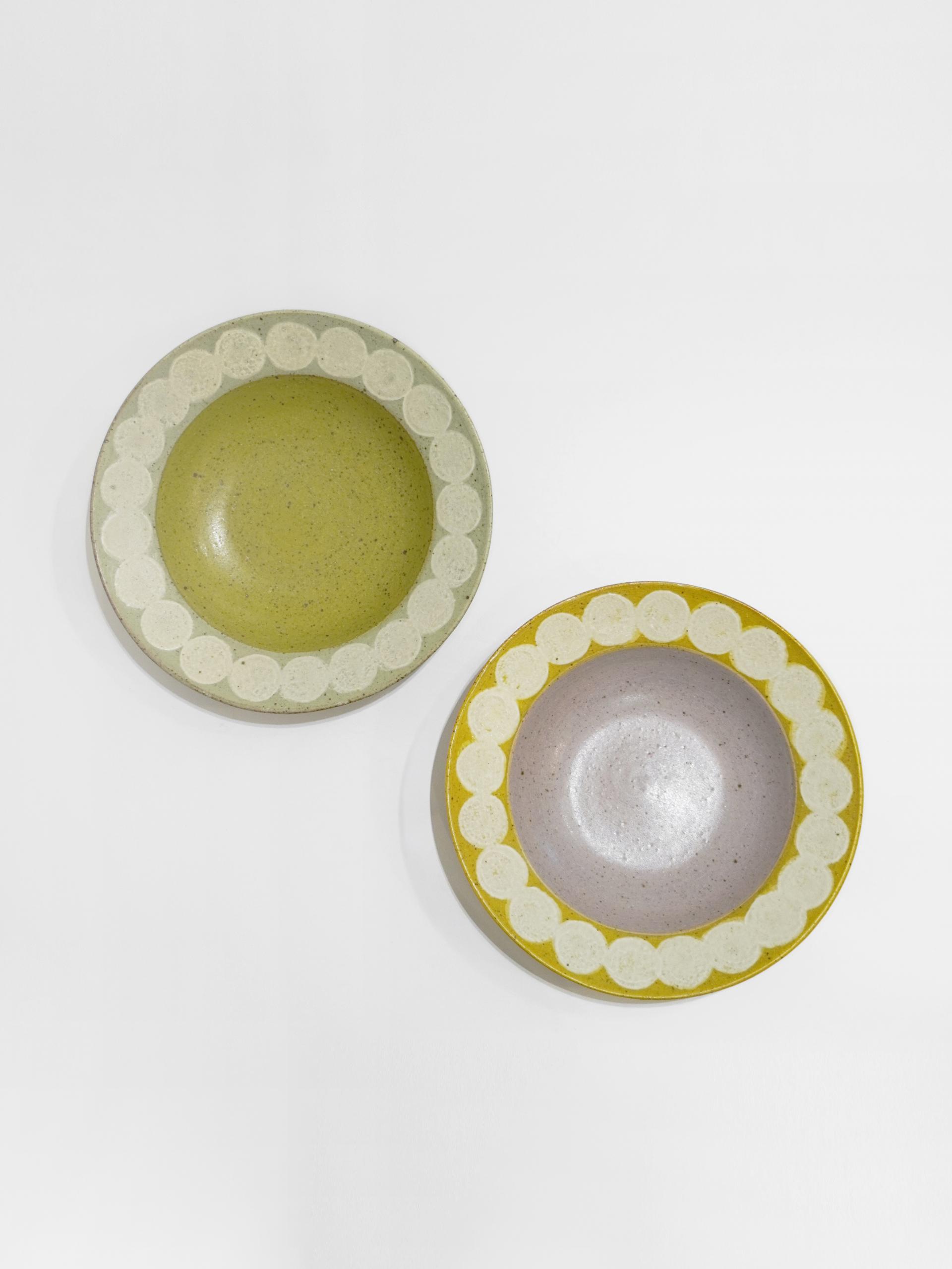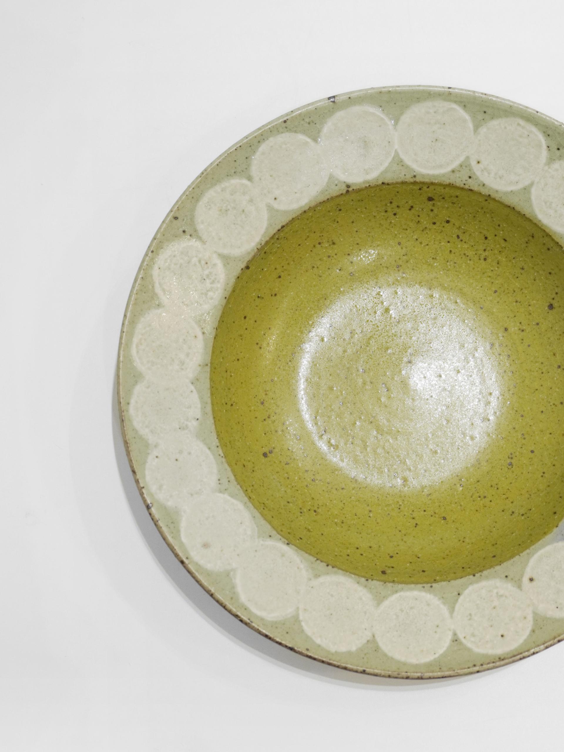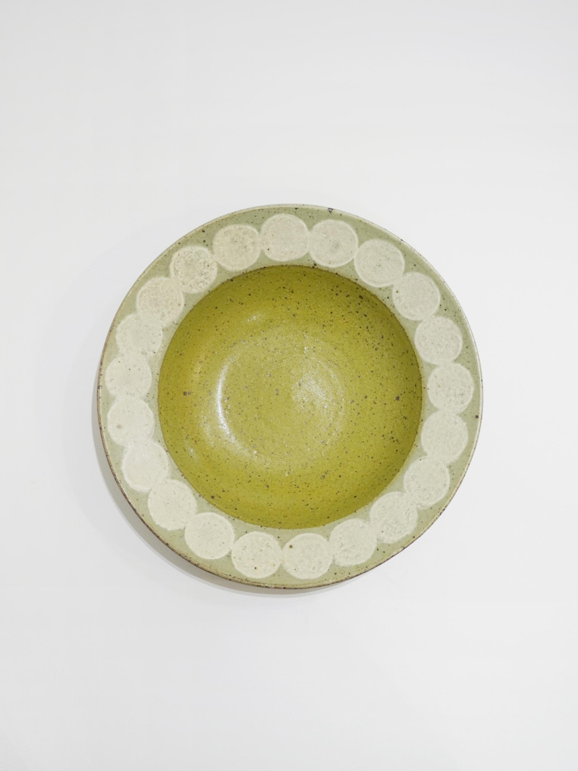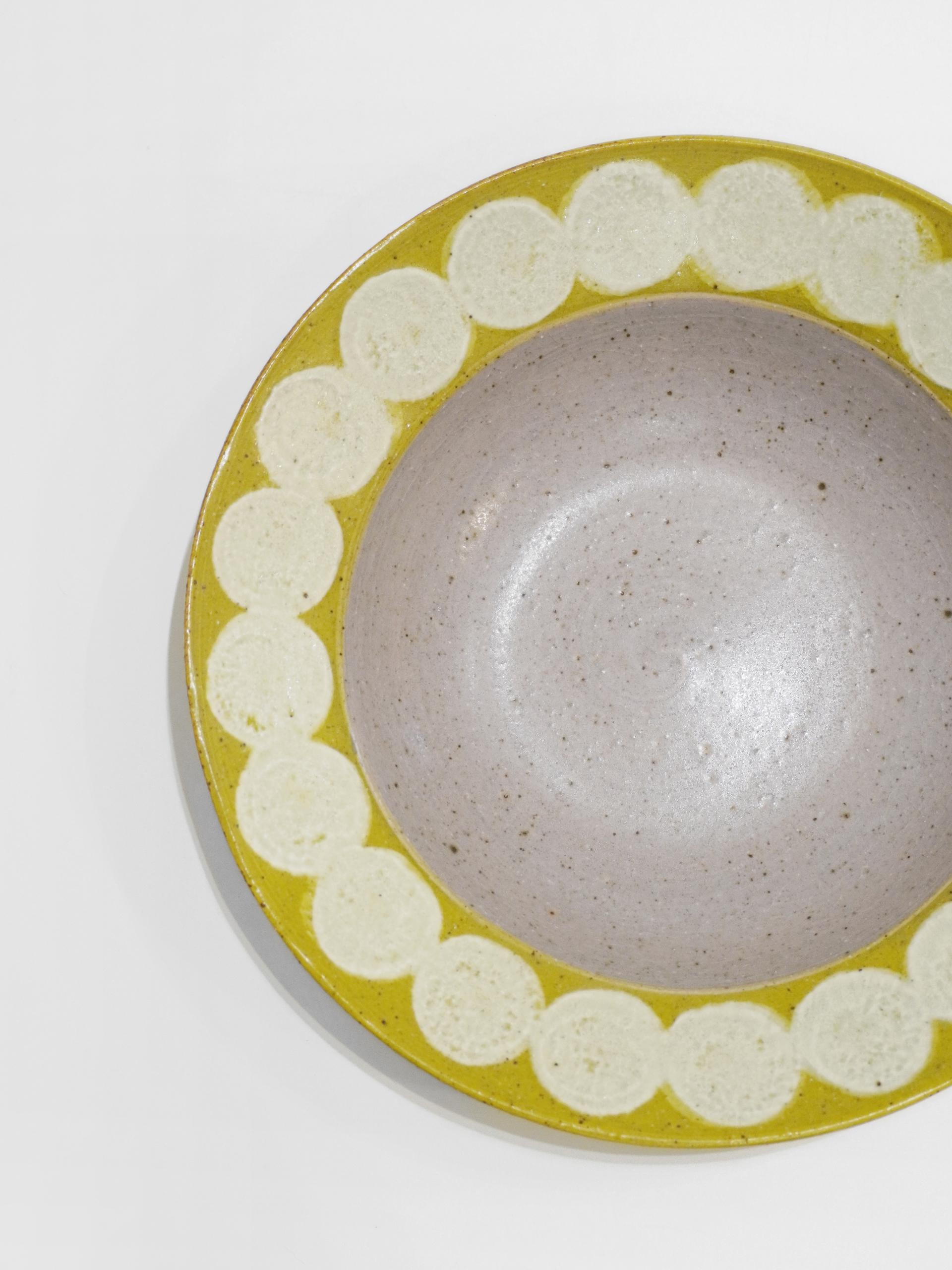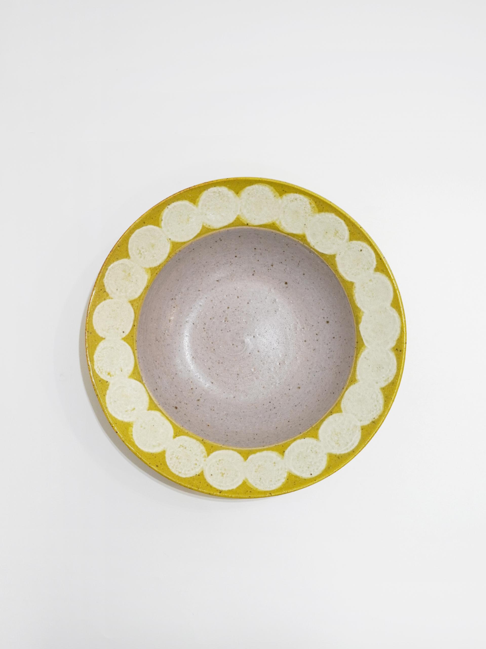 동그라미 패턴과 따뜻한 컬러 조합을 가진 보울입니다.