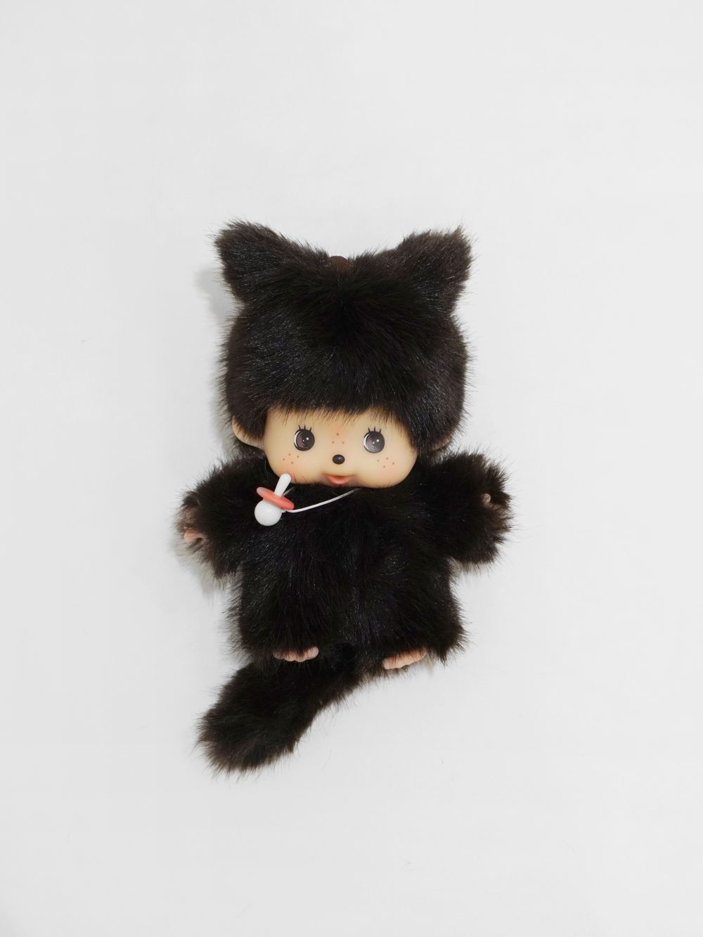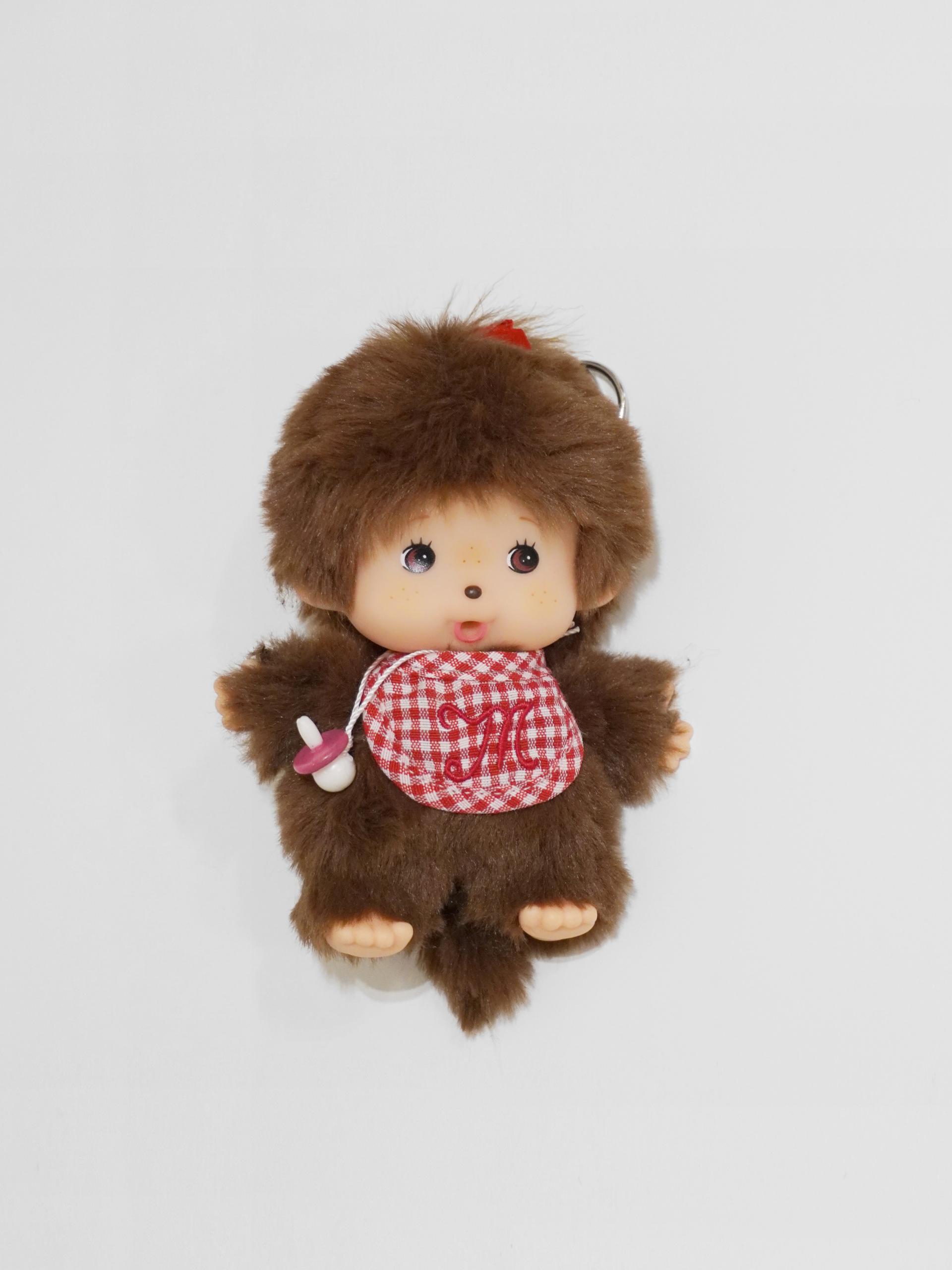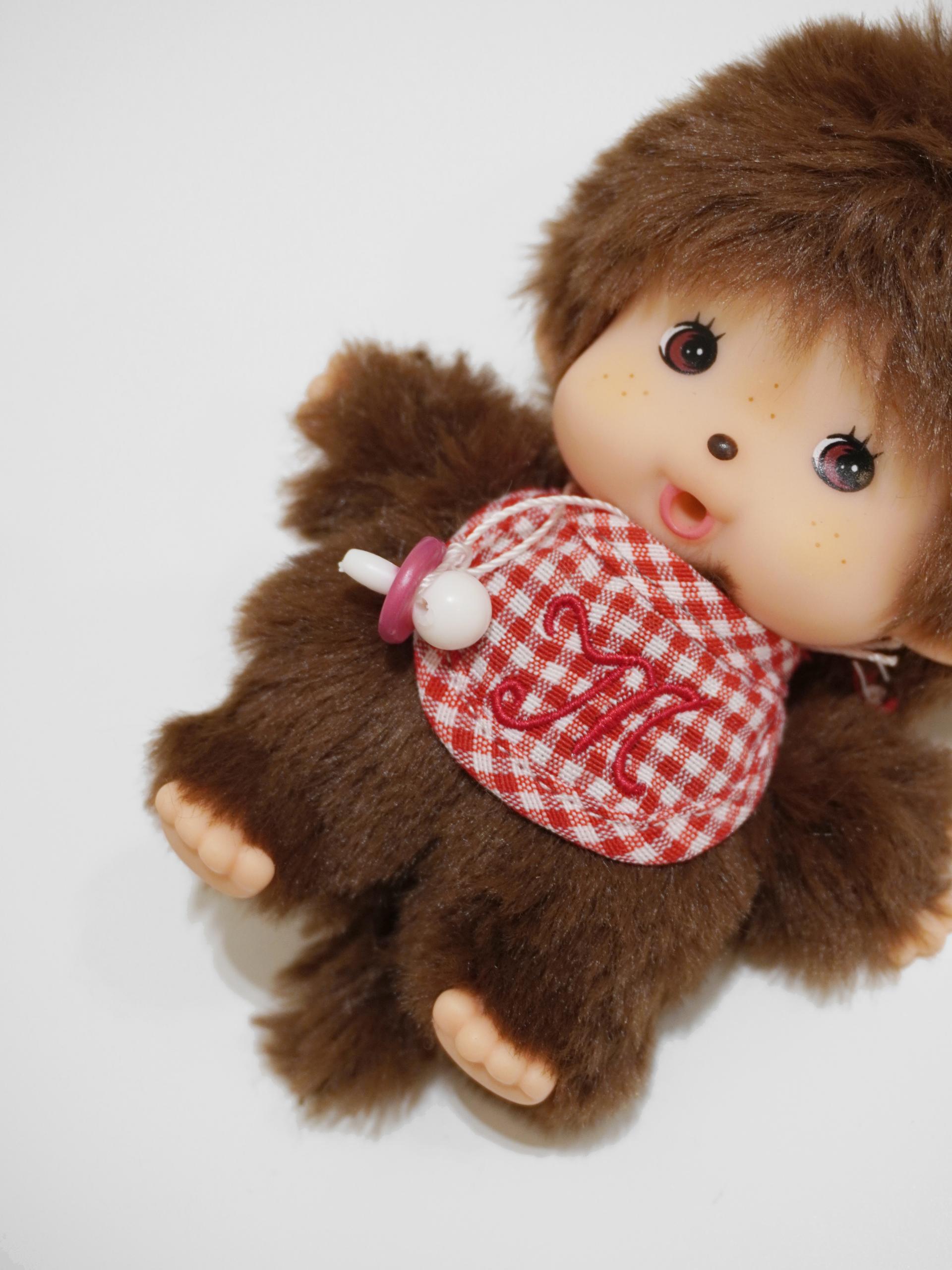 아직 아기 몬치치라 쪽쪽이를 입에 물고 있답니다! 빨간 리본과 체크 케이프까지 착용한 몬치치를 가방에 달아 함께해보세요. :)