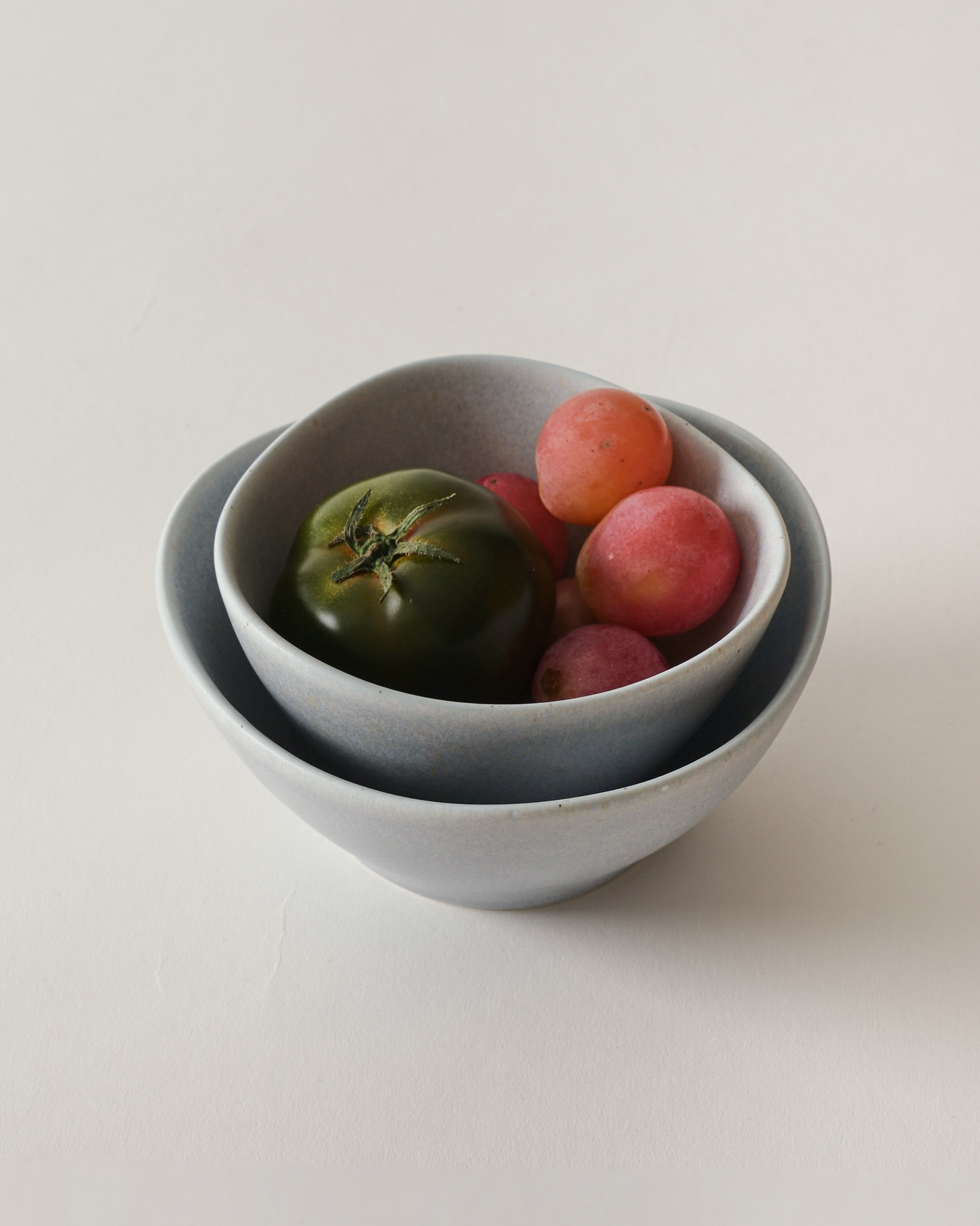 서쪽에서 불어오는 바람처럼 가볍고 은은한 블루빛이 감도는 유약입니다.