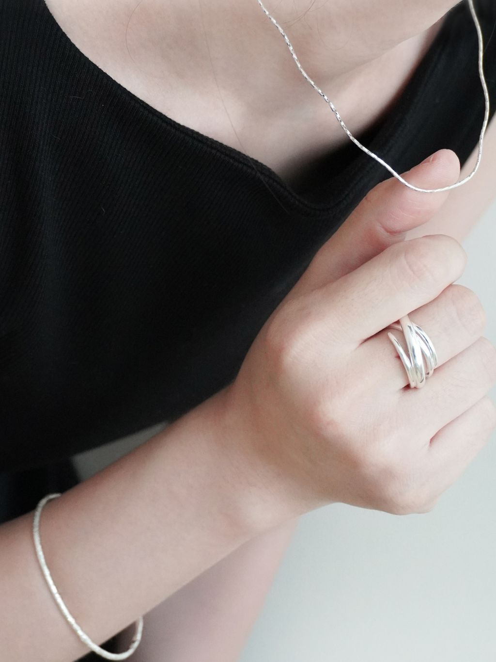 과한 목걸이가 부담스럽다면 이런 얇고 은은하게 넥 라인을 빛춰주는 주얼리로 포인트를 줘보세요.