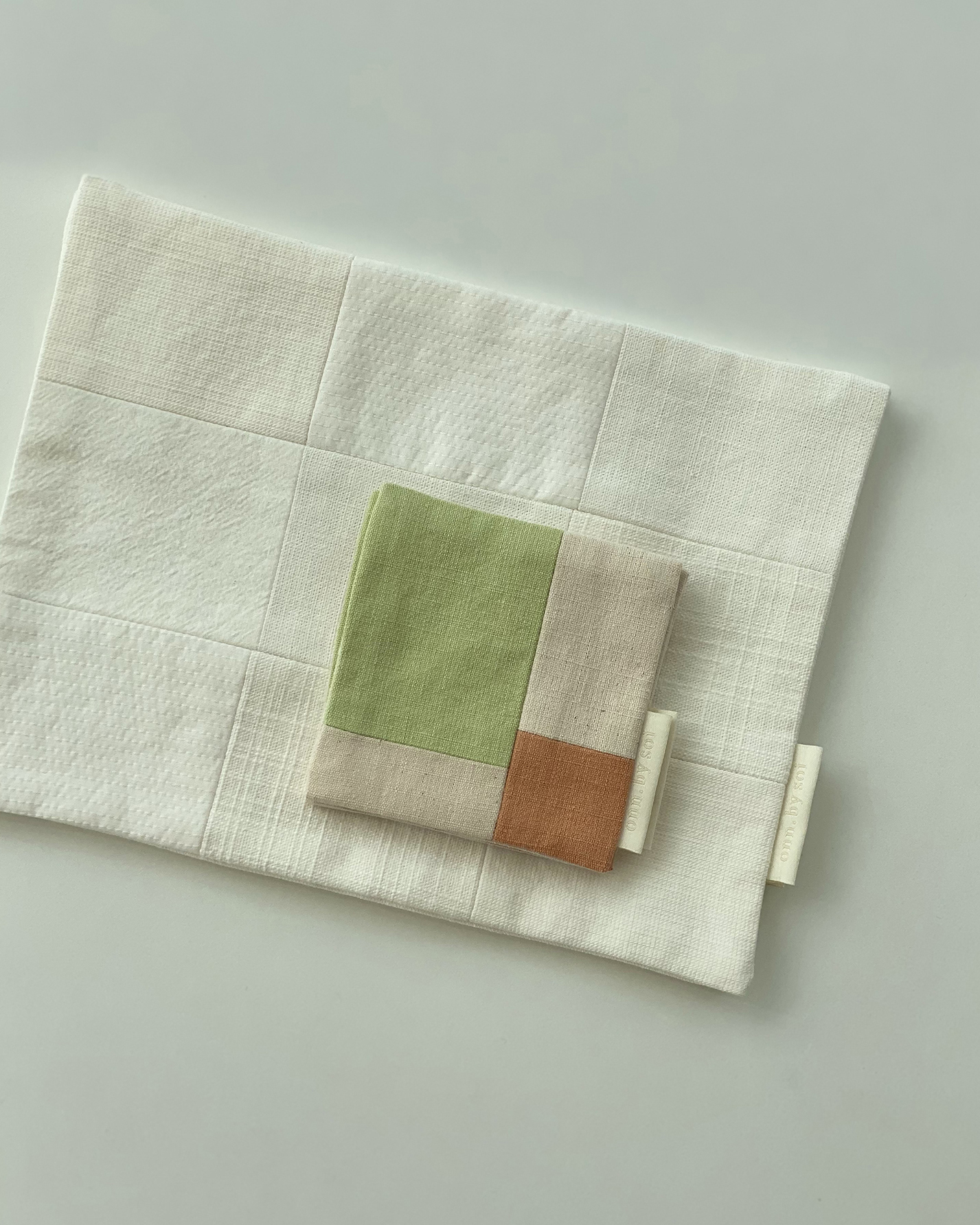 차분하고 포근한 느낌의 백색부터 녹차, 황토로 색을 낸 천연 염색의 원단까지 눈에 담기는 색감이 마음이 한결 차분해지는 기분이 들어요.