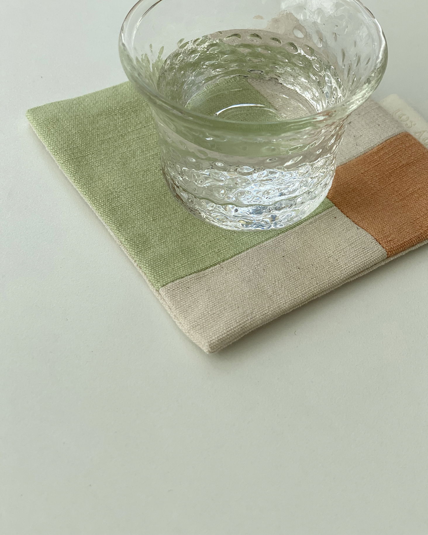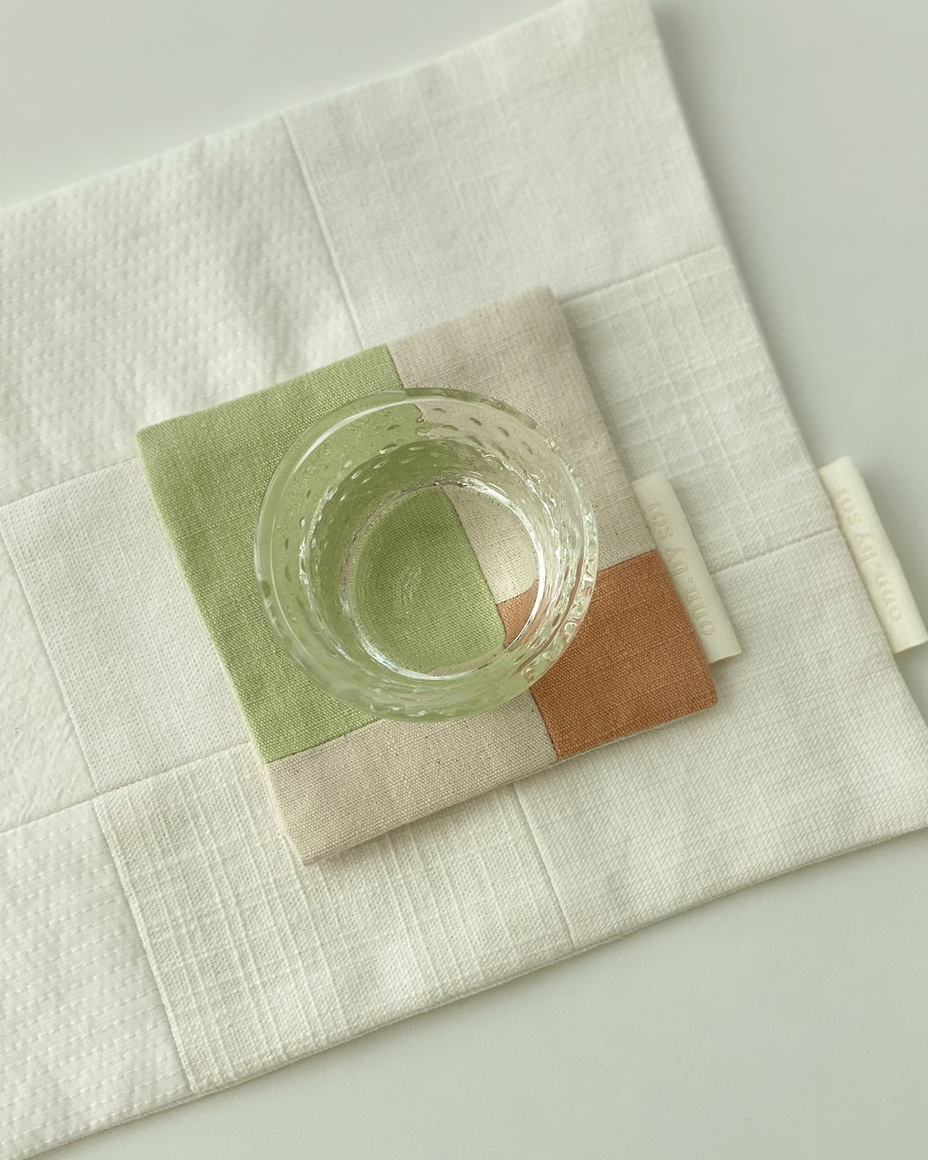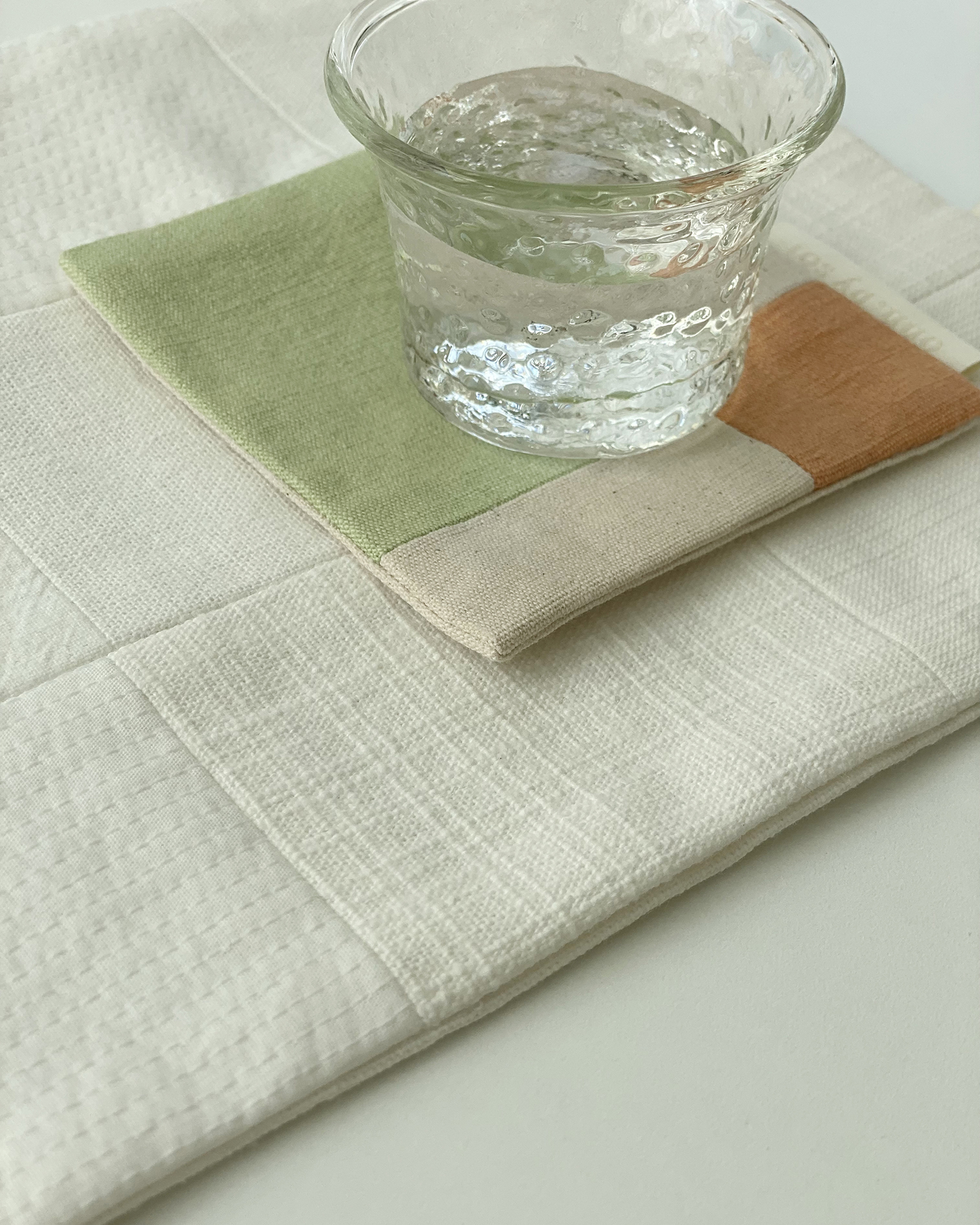 👩🏻 : 서로 다른 질감을 가진 무명의 조각들이 만나 조화를 이룬 티 코스터예요.