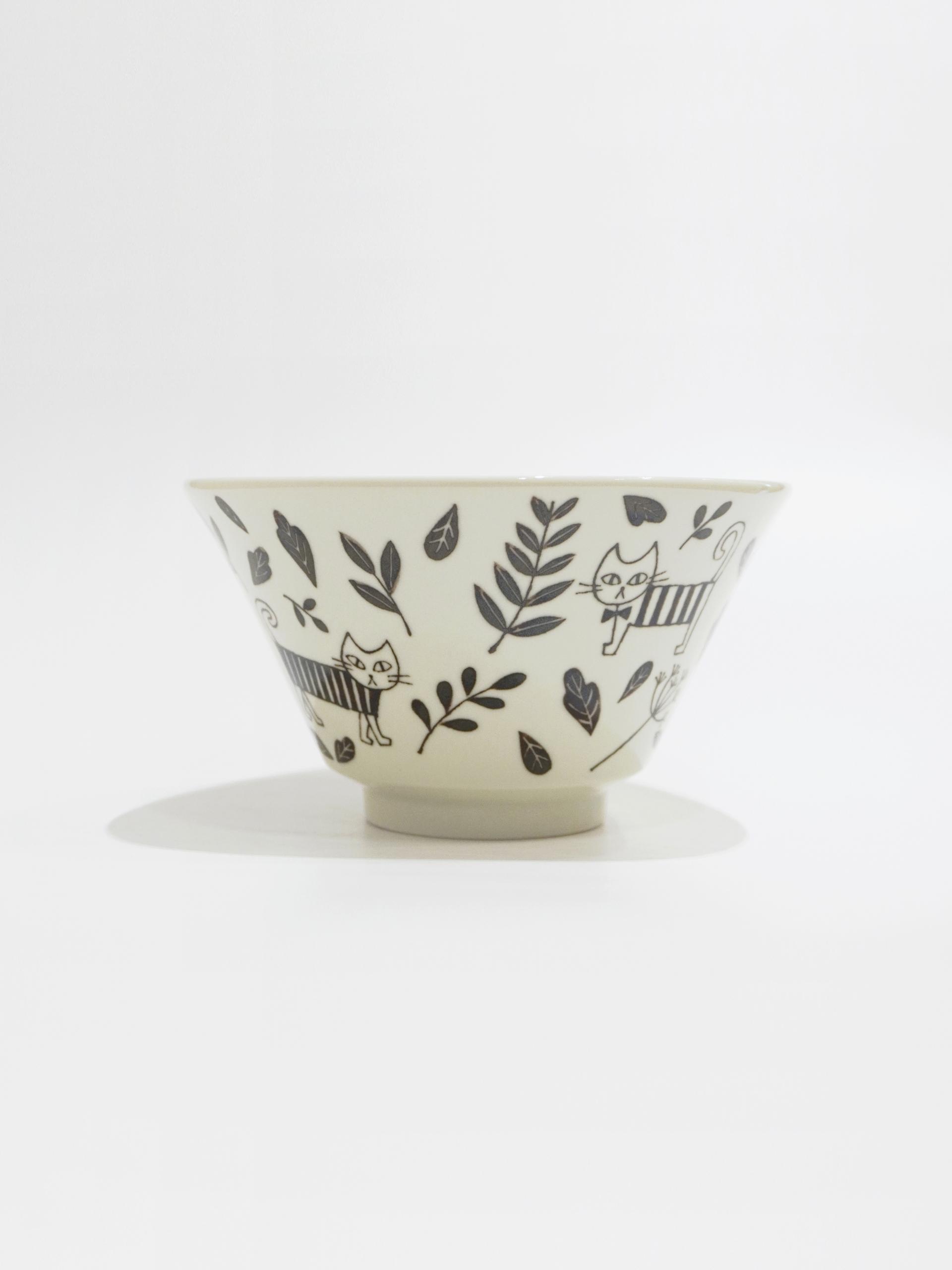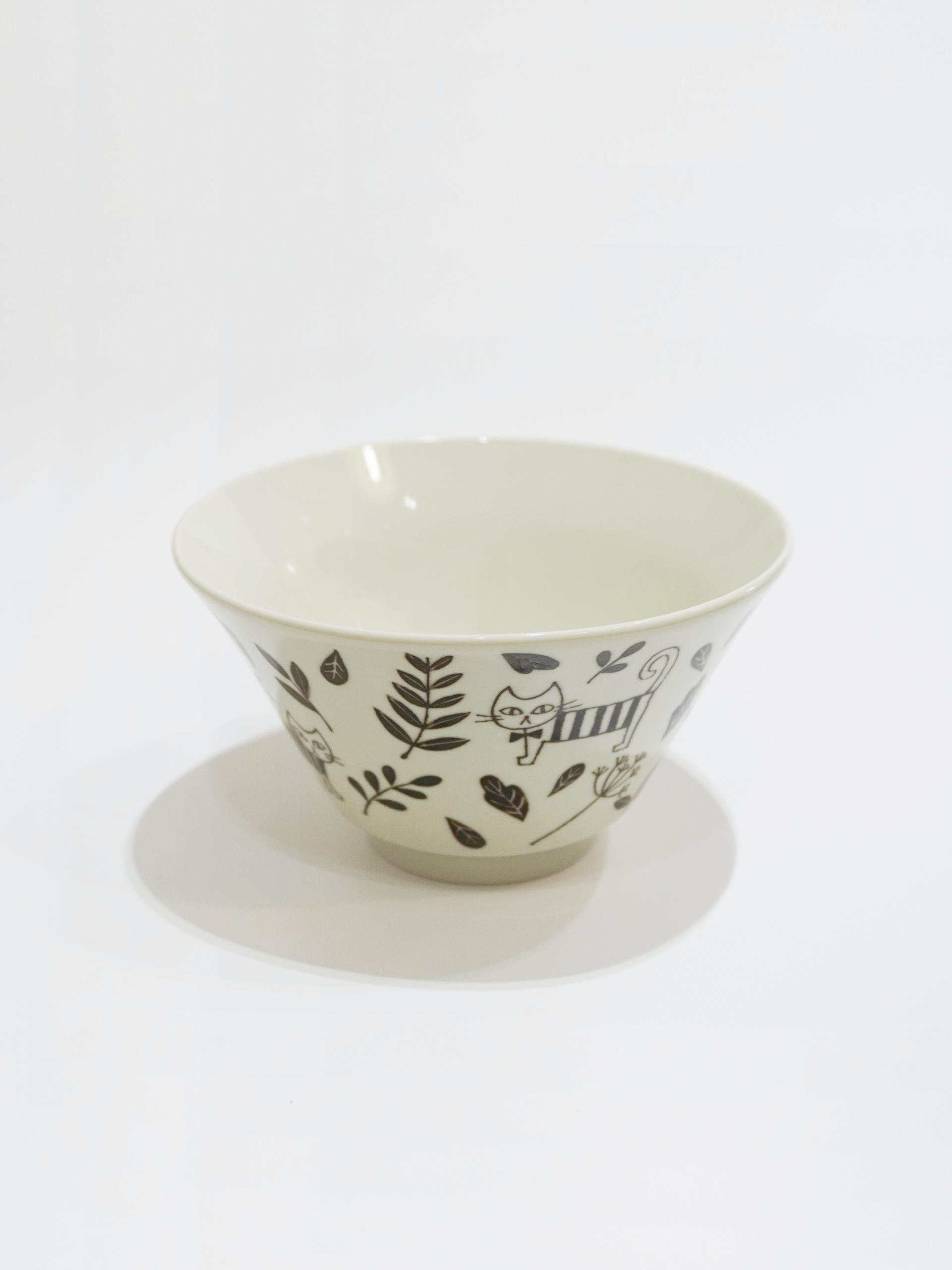 따뜻한 컬러감의 풀과 고양이 패턴이 돋보이는 보울입니다.