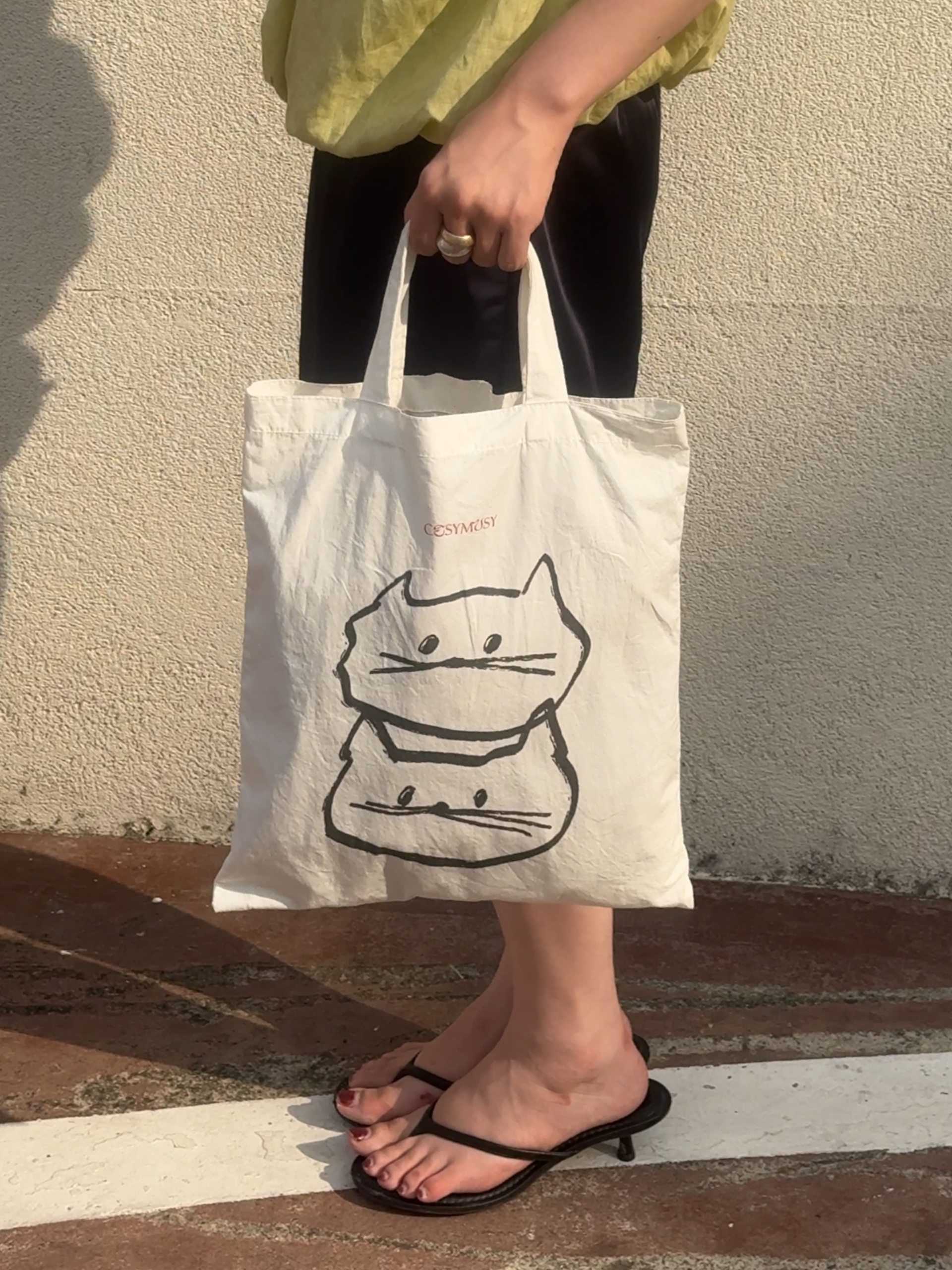▼ 패브릭 쇼핑백의 후면에는 패턴 없이 마감되어, 룩에 따라 양면 사용이 가능합니다.