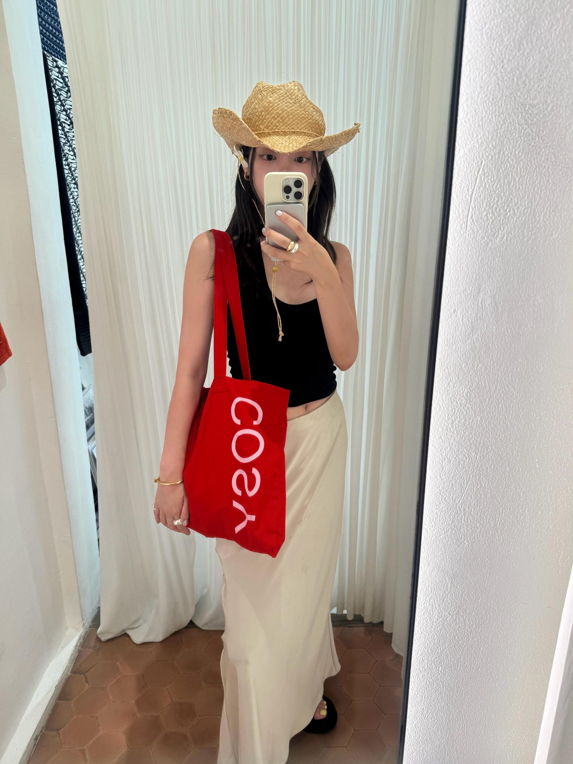 불규칙하게 배치된 타이포그래피가 주는 위트와 여유로운 실루엣이 만나, 어디서든 시선을 사로잡는 코지모지의 빅 에코백입니다.