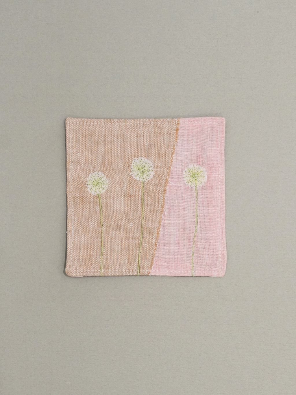 👩🏻 : 차분한 색감의 원단 위에 꽃잎과 풀잎 같은 작은 조각들을 작가님의 손으로 한 땀 한 땀 수놓아 정성스럽게 만든, 세상에 단 하나뿐인 원앤온리 코스터예요.
