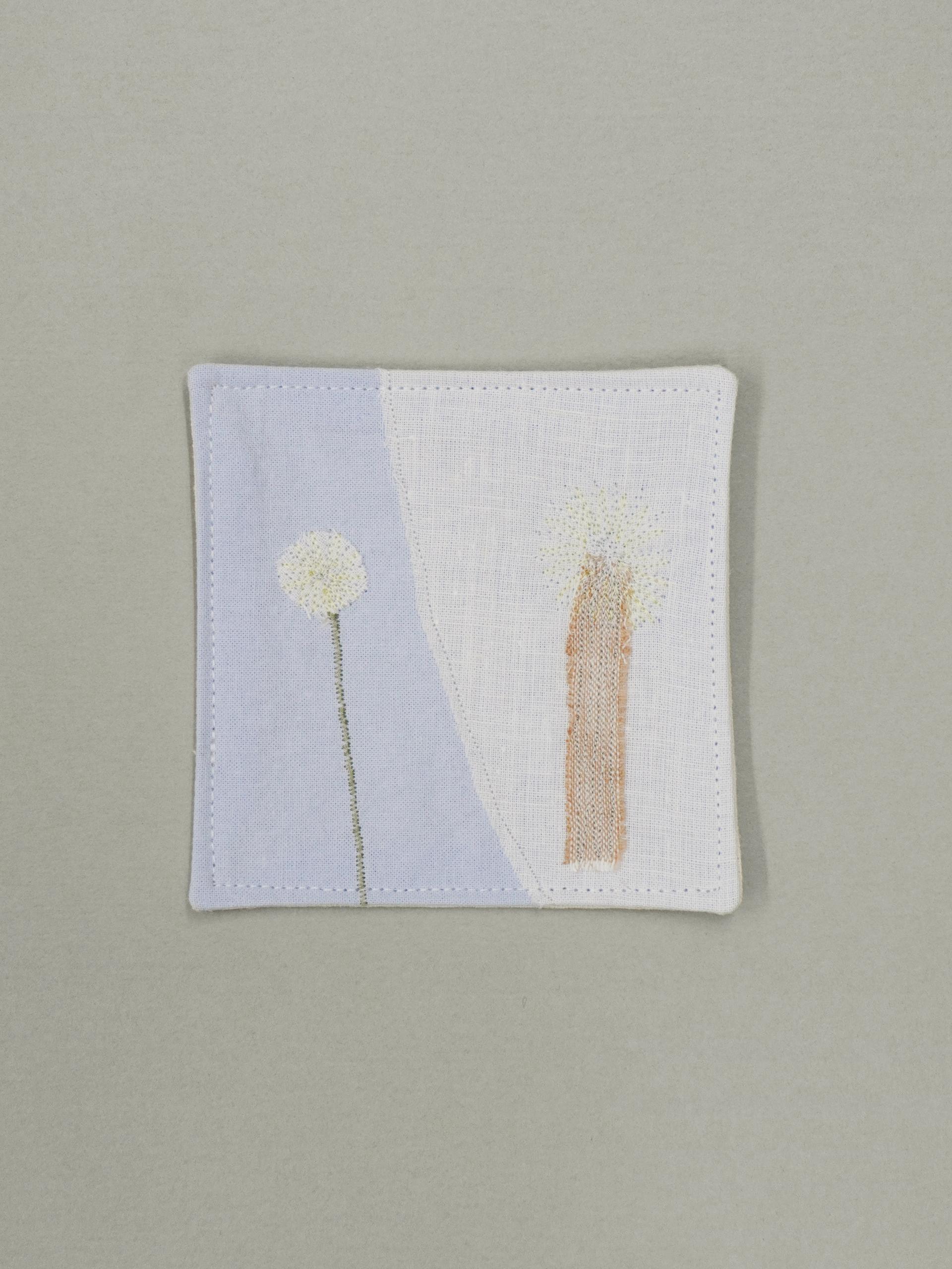 👩🏻 : 차분한 색감의 원단 위에 꽃잎과 풀잎 같은 작은 조각들을 작가님의 손으로 한 땀 한 땀 수놓아 정성스럽게 만든, 세상에 단 하나뿐인 원앤온리 코스터예요.