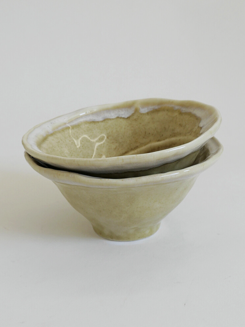 부드럽게 펼쳐진 림과 자연스럽게 흐르는 유약의 결이 어우러진 형태의 누들 보울입니다.