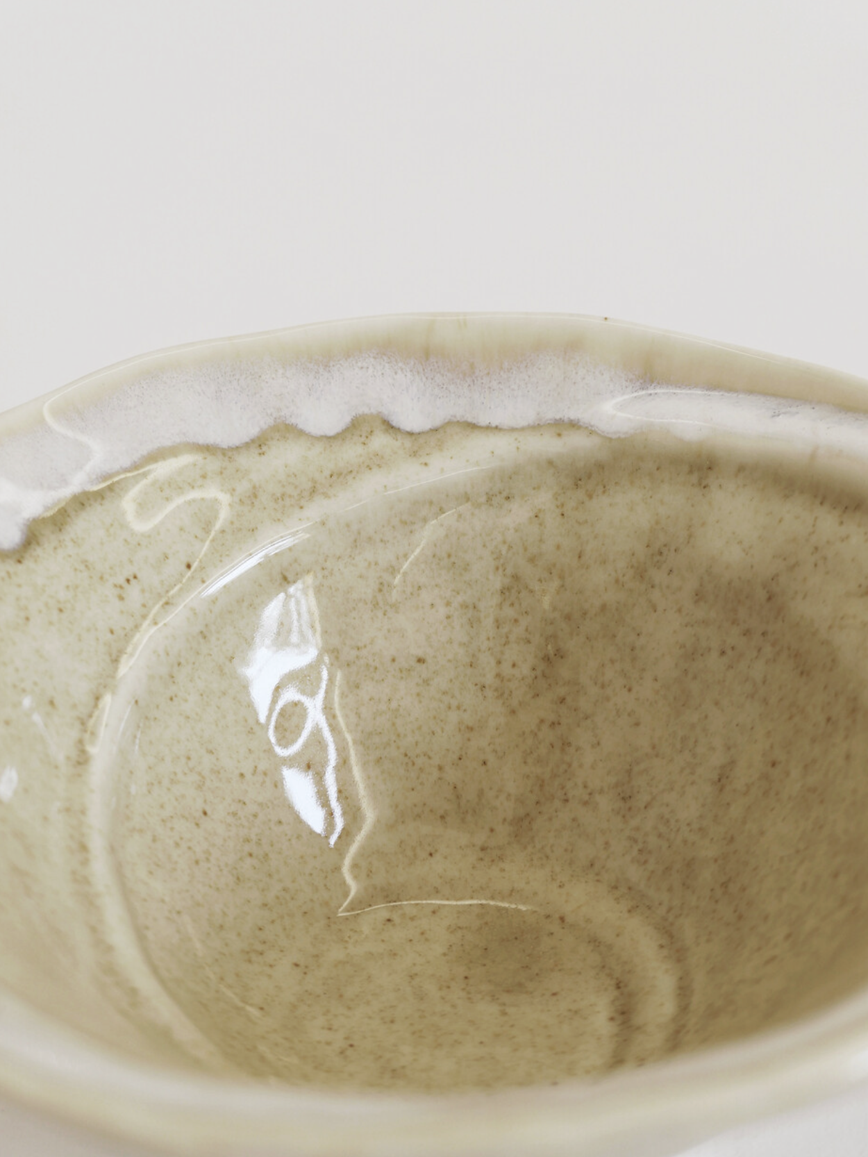 비대칭적인 전부분과 안쪽에는 소용돌이 형태의 굴곡으로 유약의 흐름을 고요하게 담아냅니다.