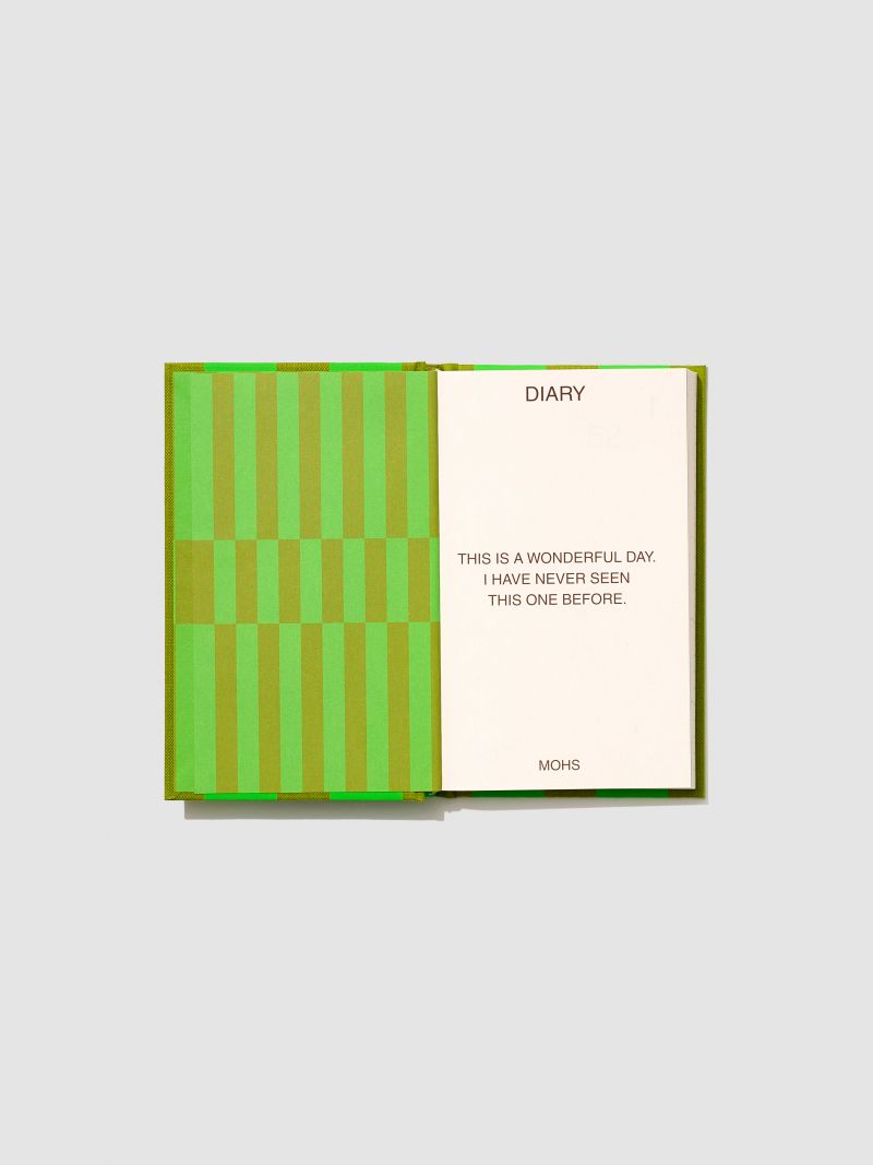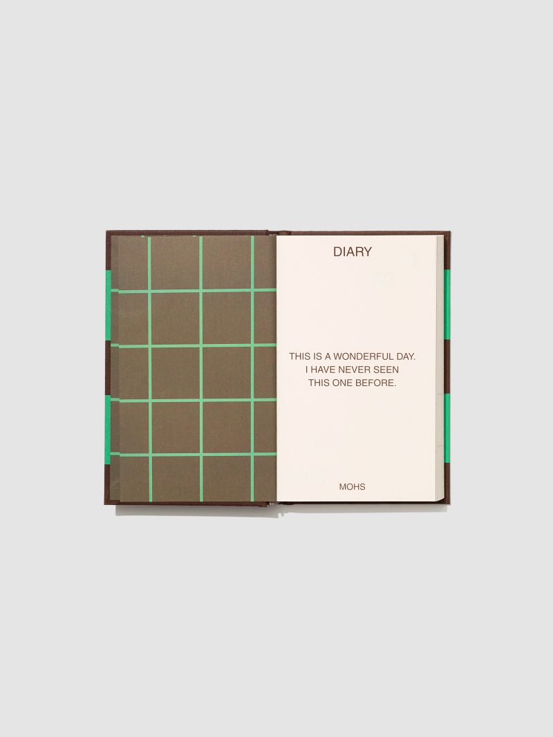 표지는 지클로스(원단의 결을 가지고 있는 종이)이며 그 위에 실크스크린으로 패턴을 찍었습니다. 타이포는 박으로 깔끔하게 마무리했고요. 고급스러우면서 감각적인 느낌이 들며 무엇보다 모스가 원하는 컬러감을 잘 구현하는 방법이었어요.