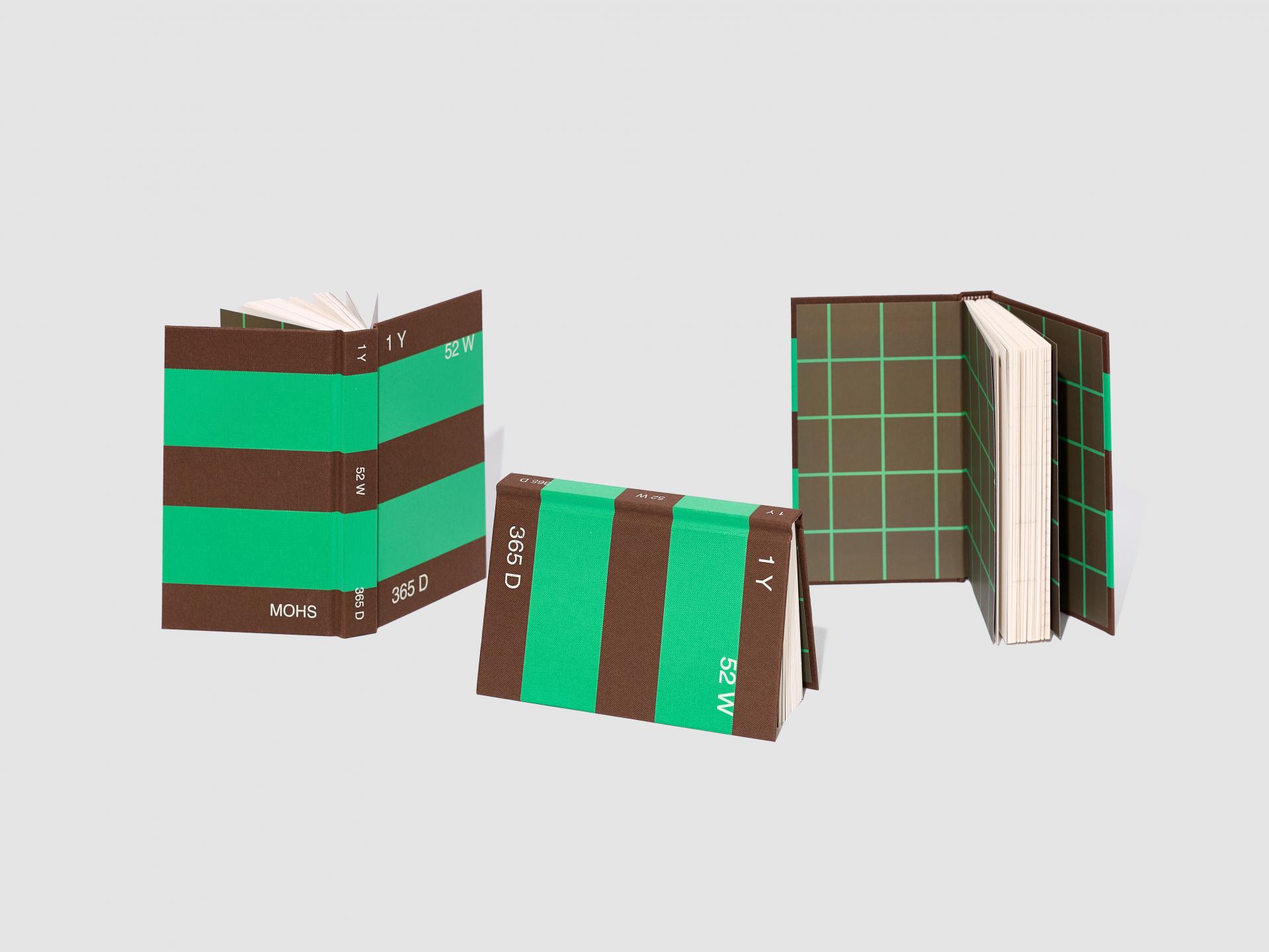 표지는 지클로스(원단의 결을 가지고 있는 종이)이며 그 위에 실크스크린으로 패턴을 찍었습니다. 타이포는 박으로 깔끔하게 마무리했고요. 고급스러우면서 감각적인 느낌이 들며 무엇보다 모스가 원하는 컬러감을 잘 구현하는 방법이었어요.
