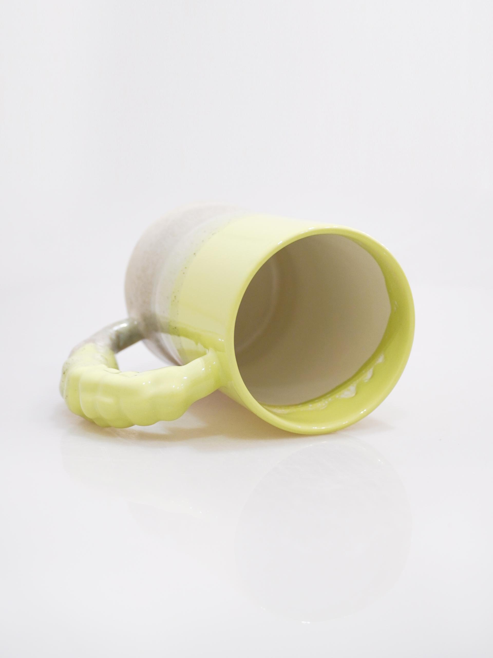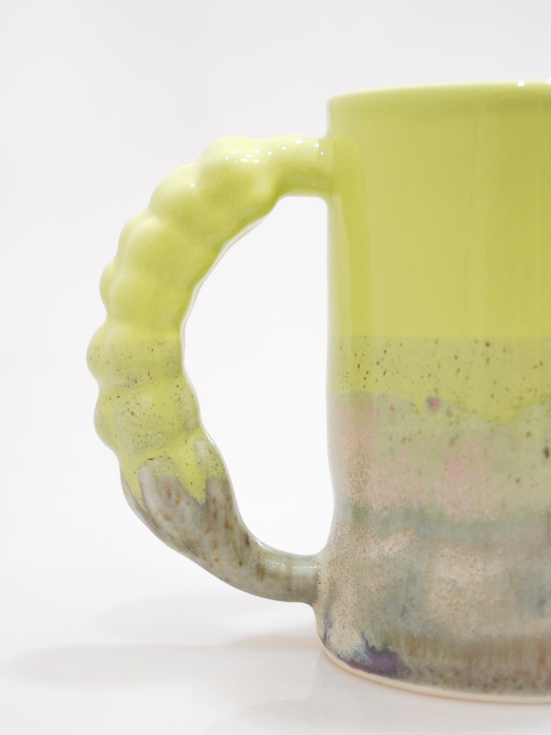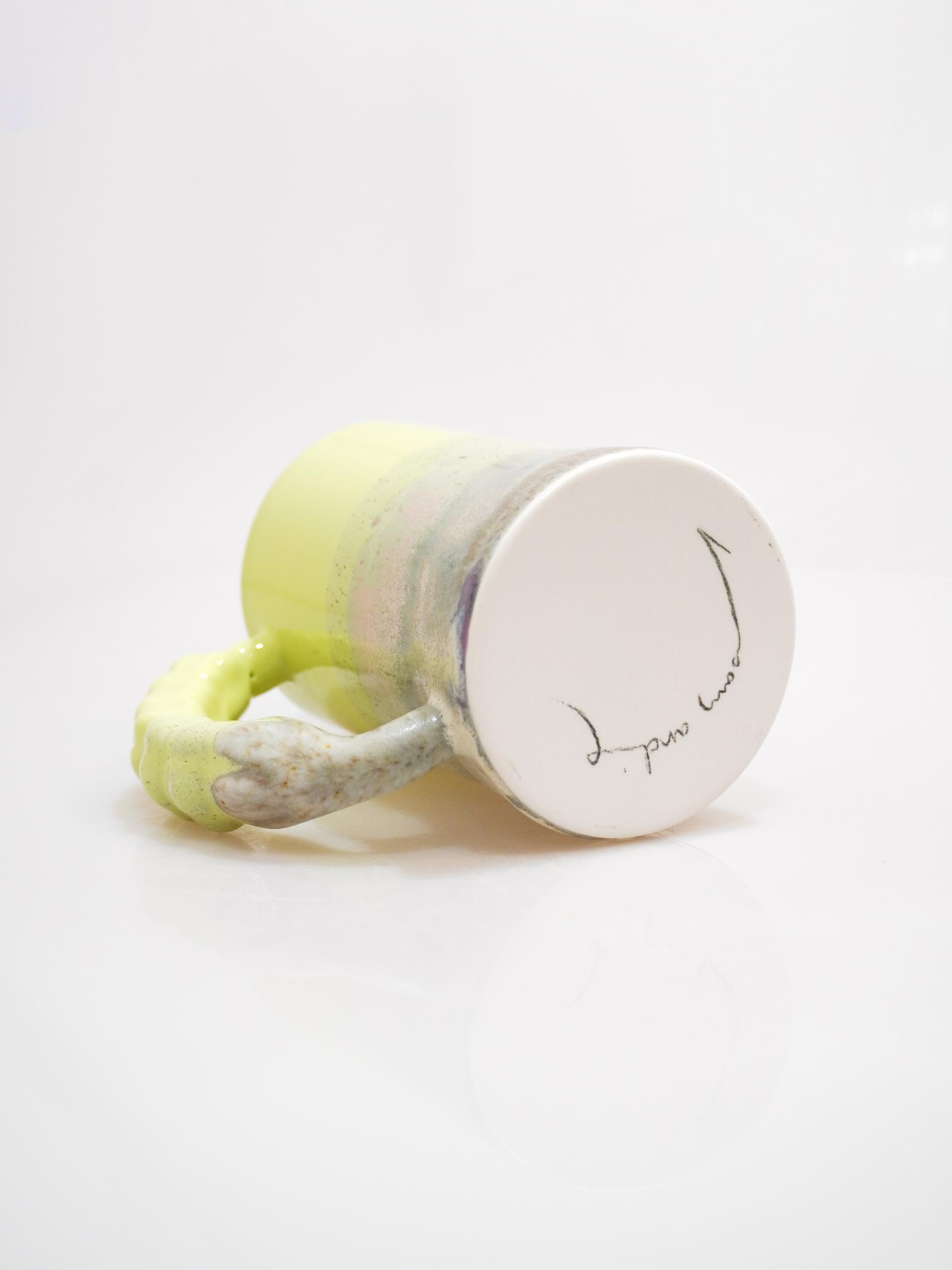 👩🏻 : 라벤더 꽃봉오리의 핸들과 흘러내리는 듯한 다채로운 유약의 섬세함이 느껴지는 컵입니다.