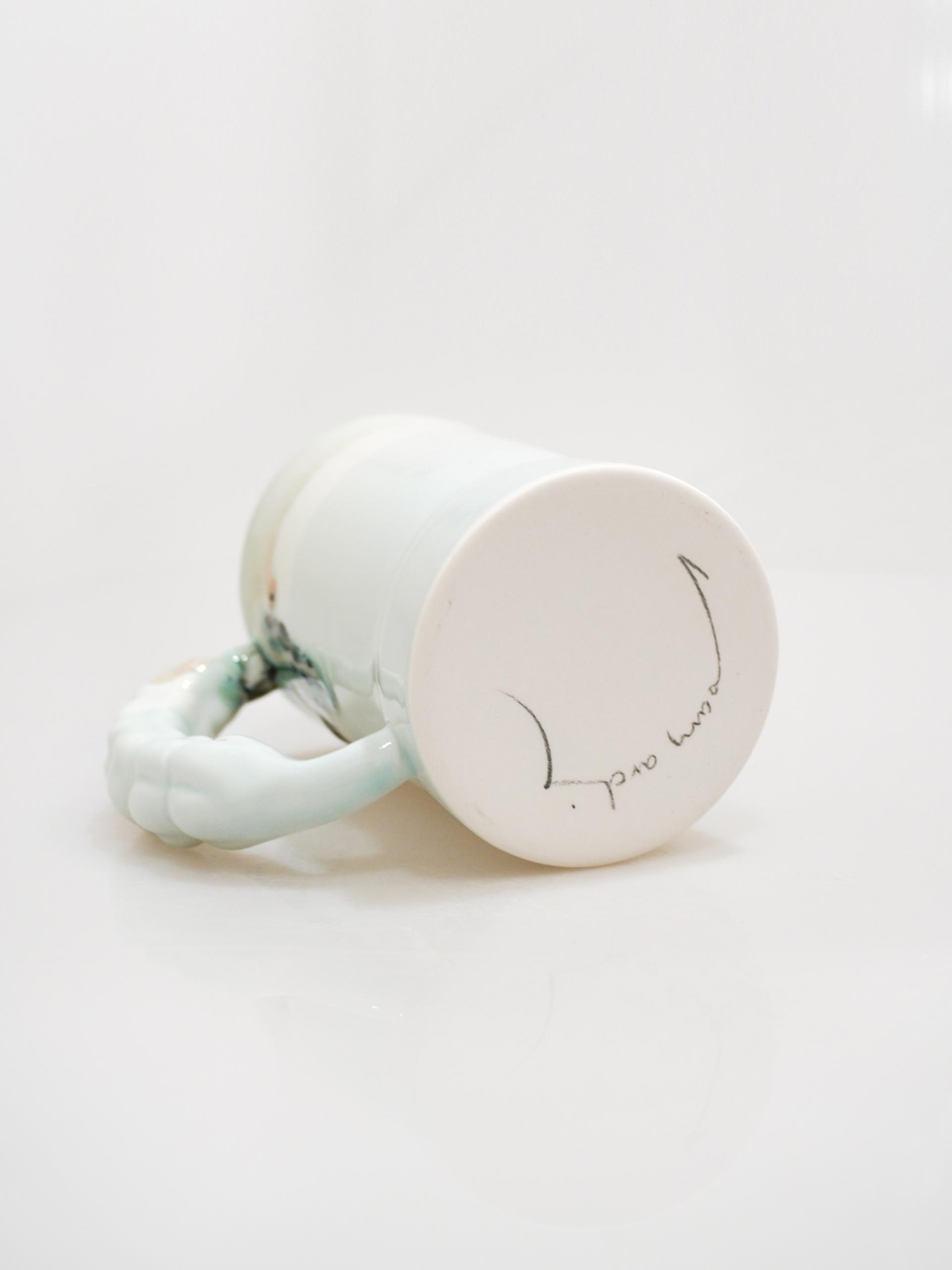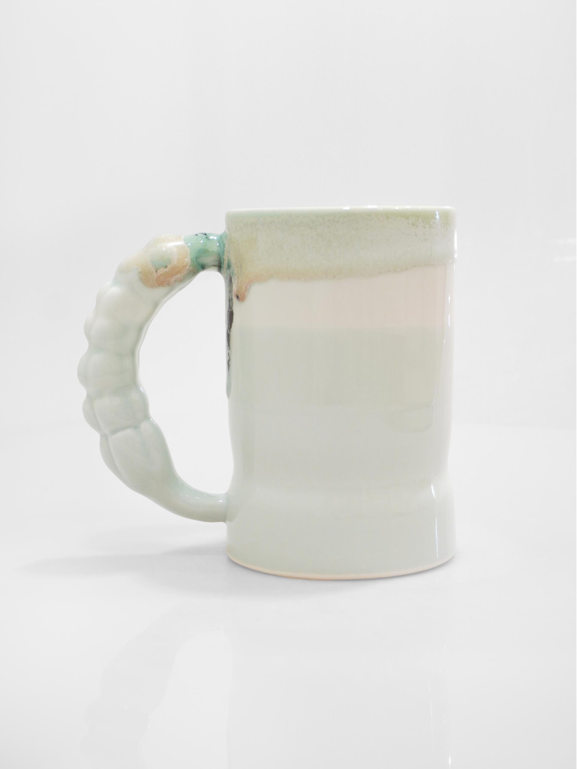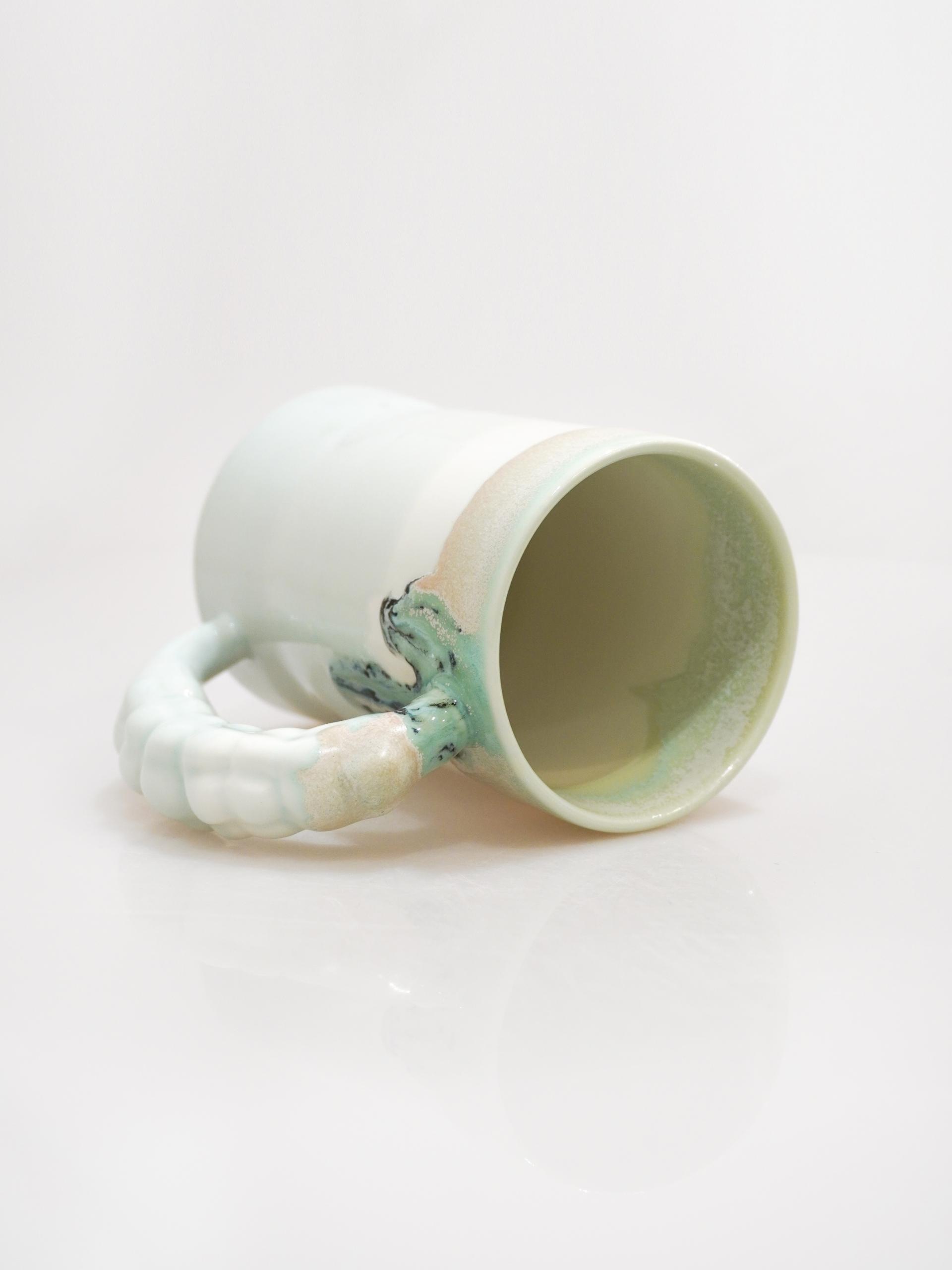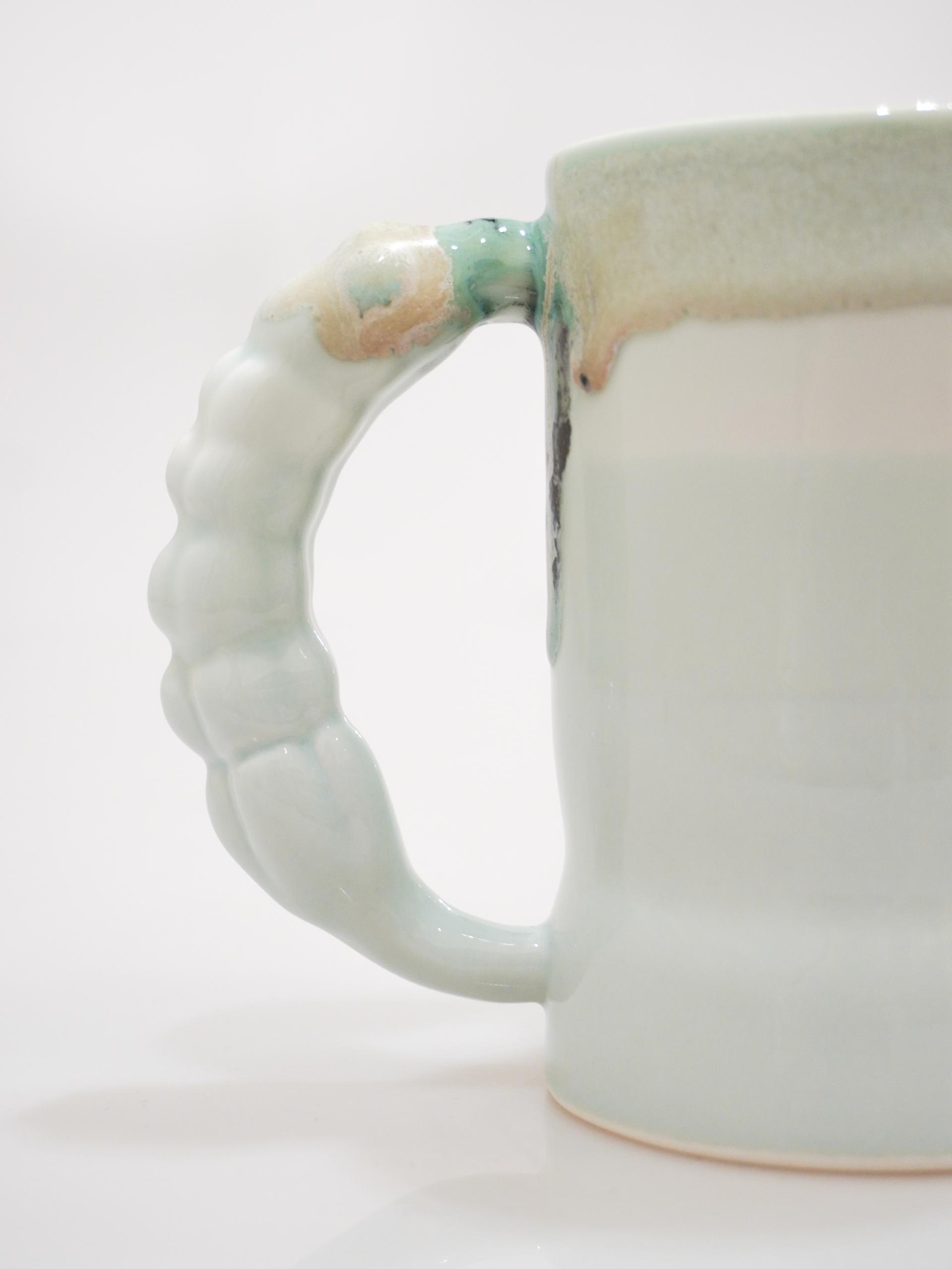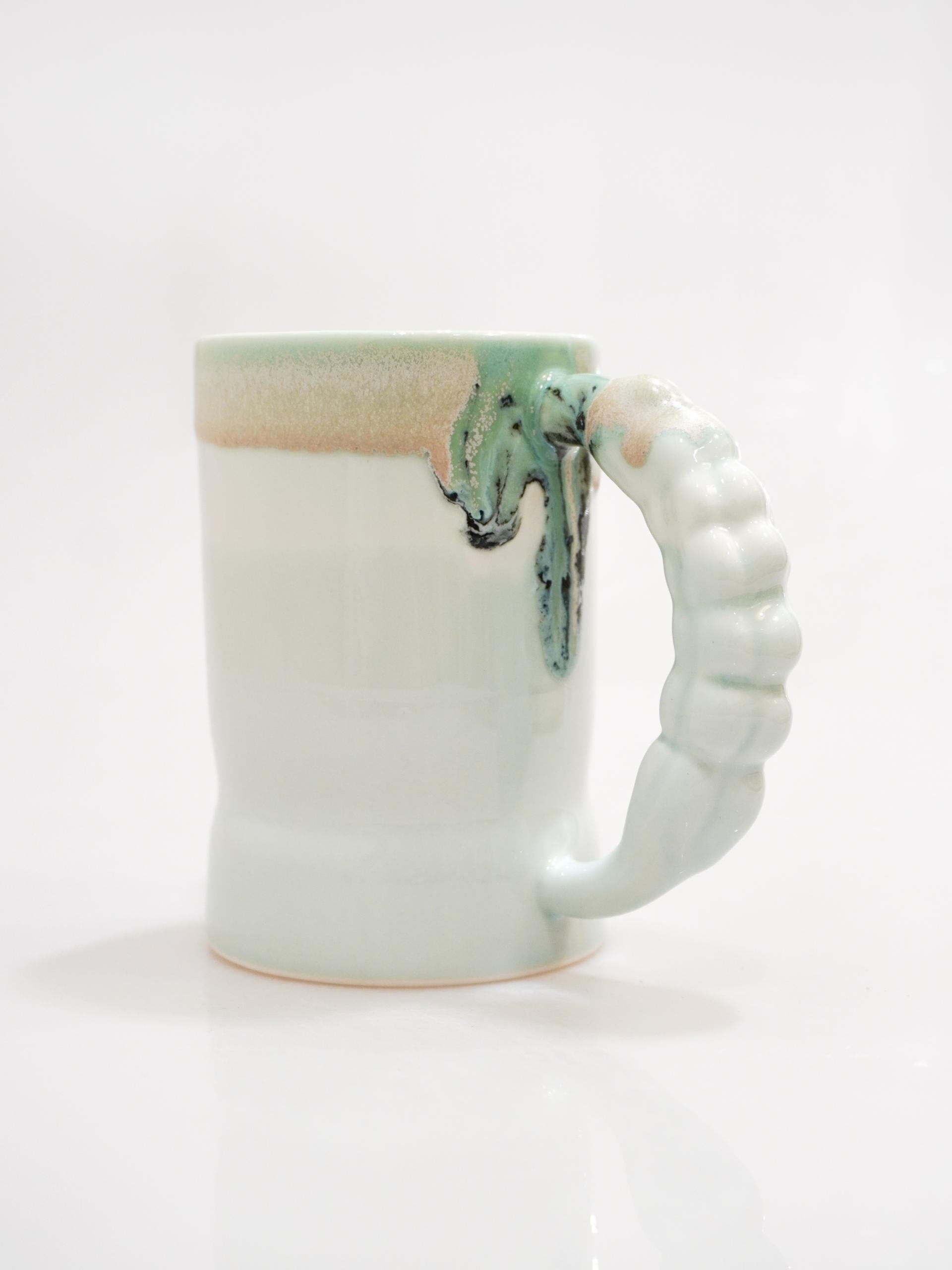 👩🏻 : 라벤더 꽃봉오리의 핸들과 흘러내리는 듯한 다채로운 유약의 섬세함이 느껴지는 컵입니다.