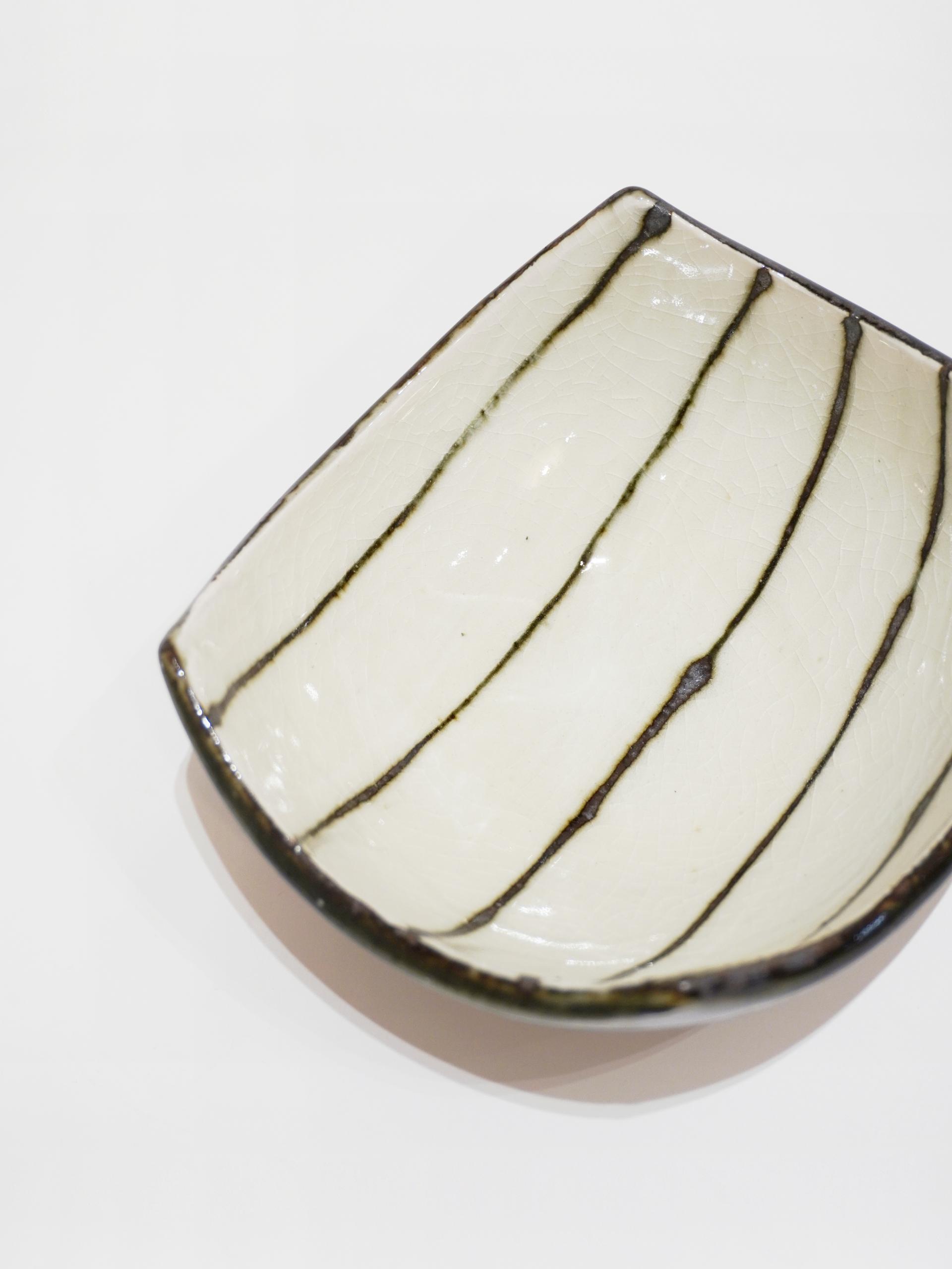 깊이감있는 둥근 형태에 투박한 줄무늬가 특징인 보울입니다.