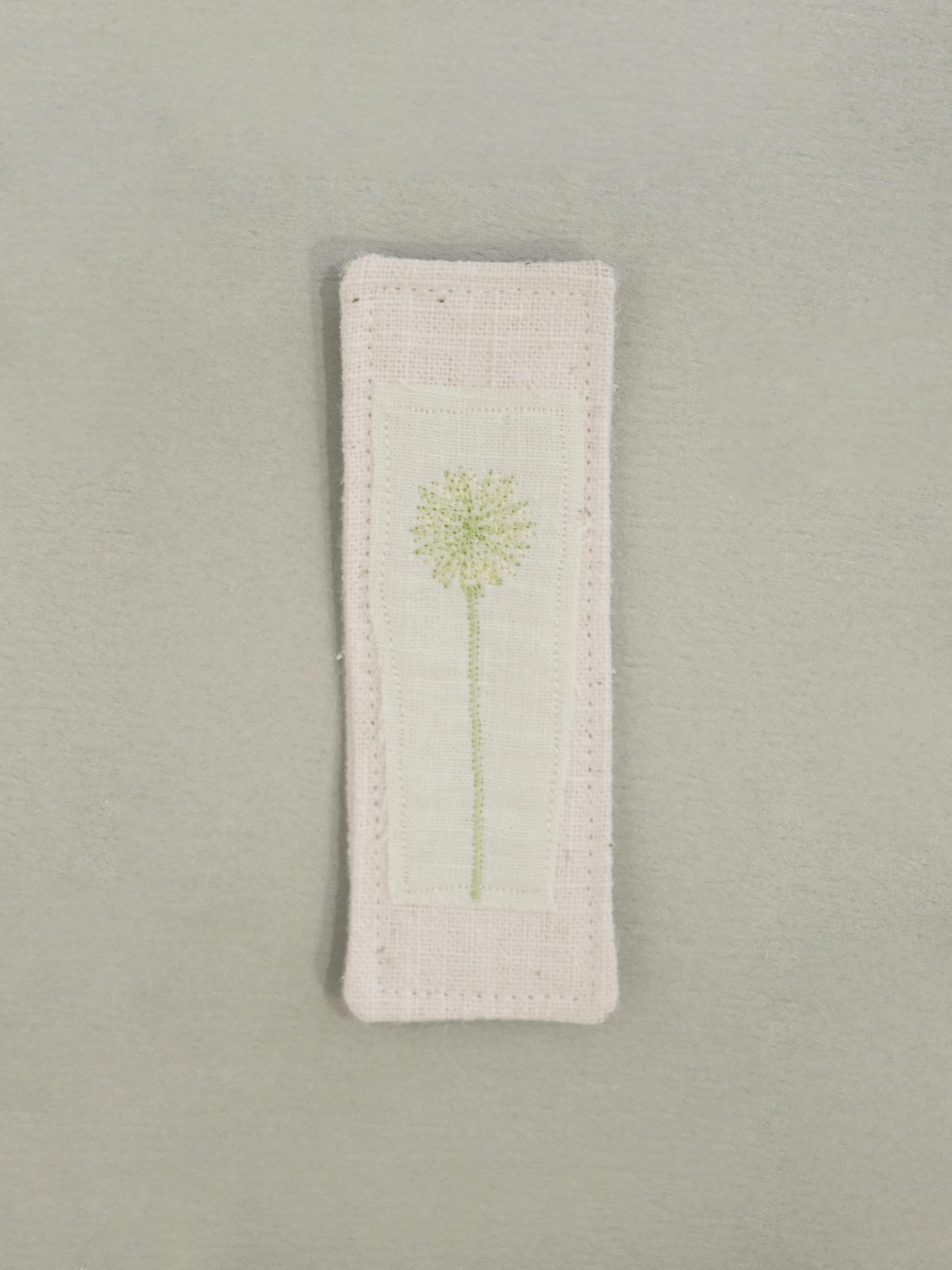 👩🏻 : 차분한 색감의 원단 위에 꽃잎과 풀잎 같은 작은 조각들을 작가님이 손으로 한 땀 한 땀 수놓아 정성스럽게 만든, 세상에 단 하나뿐인 원앤온리 북마크예요.