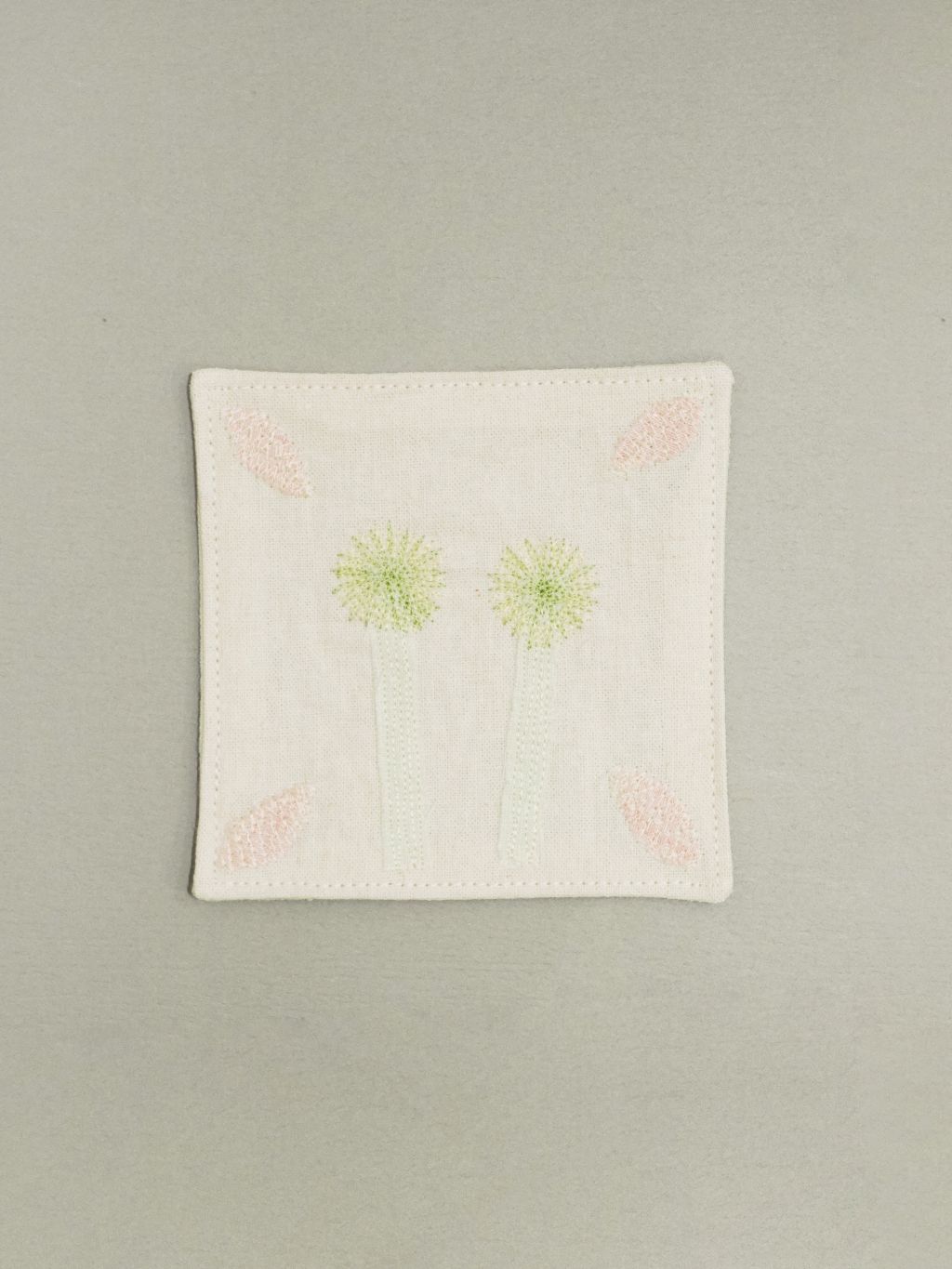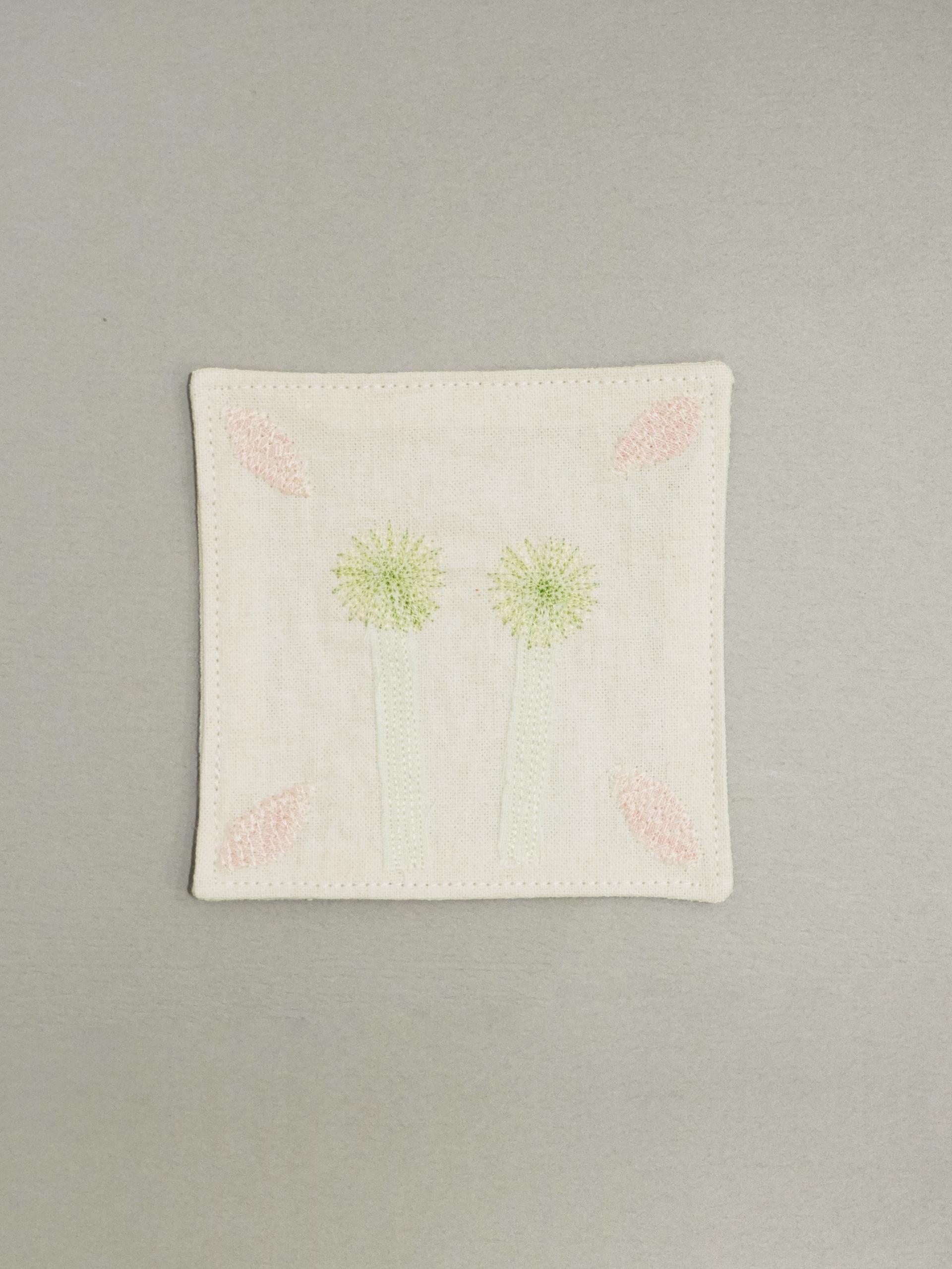 👩🏻 : 차분한 색감의 원단 위에 꽃잎과 풀잎 같은 작은 조각들을 작가님의 손으로 한 땀 한 땀 수놓아 정성스럽게 만든, 세상에 단 하나뿐인 원앤온리 코스터예요.