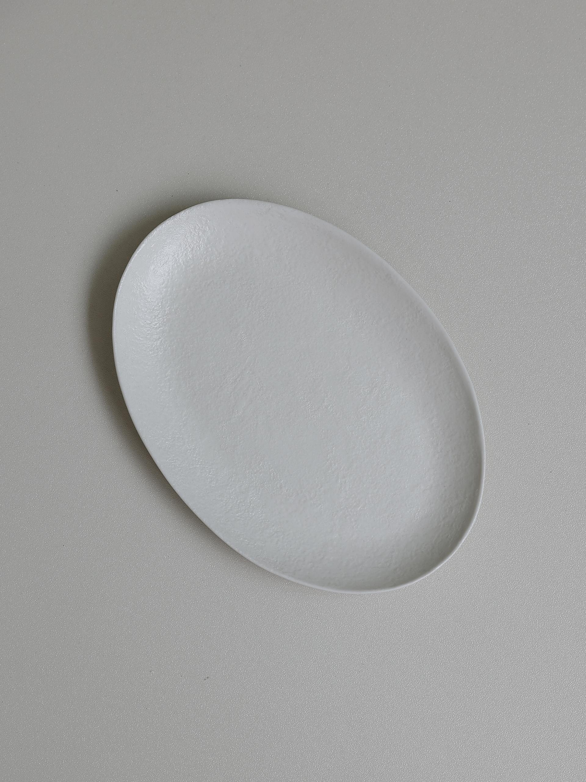 잔잔한 질감이 올라간 슬림하고 낮은 형태감을 갖고있는 군더더기 없는 깔끔한 플레이트입니다.