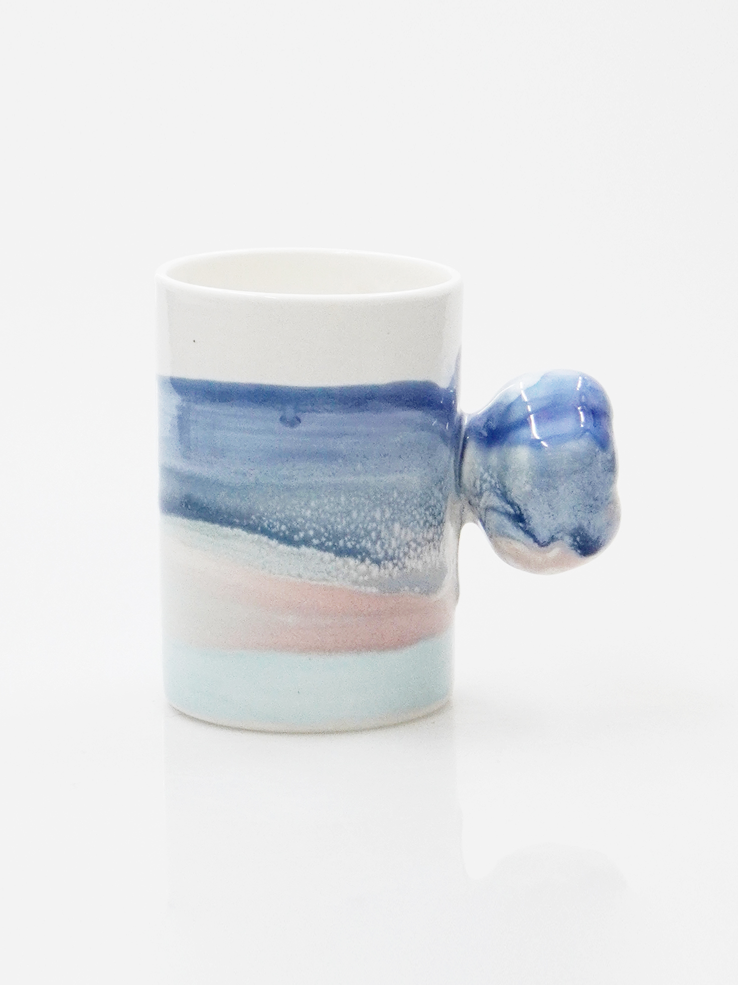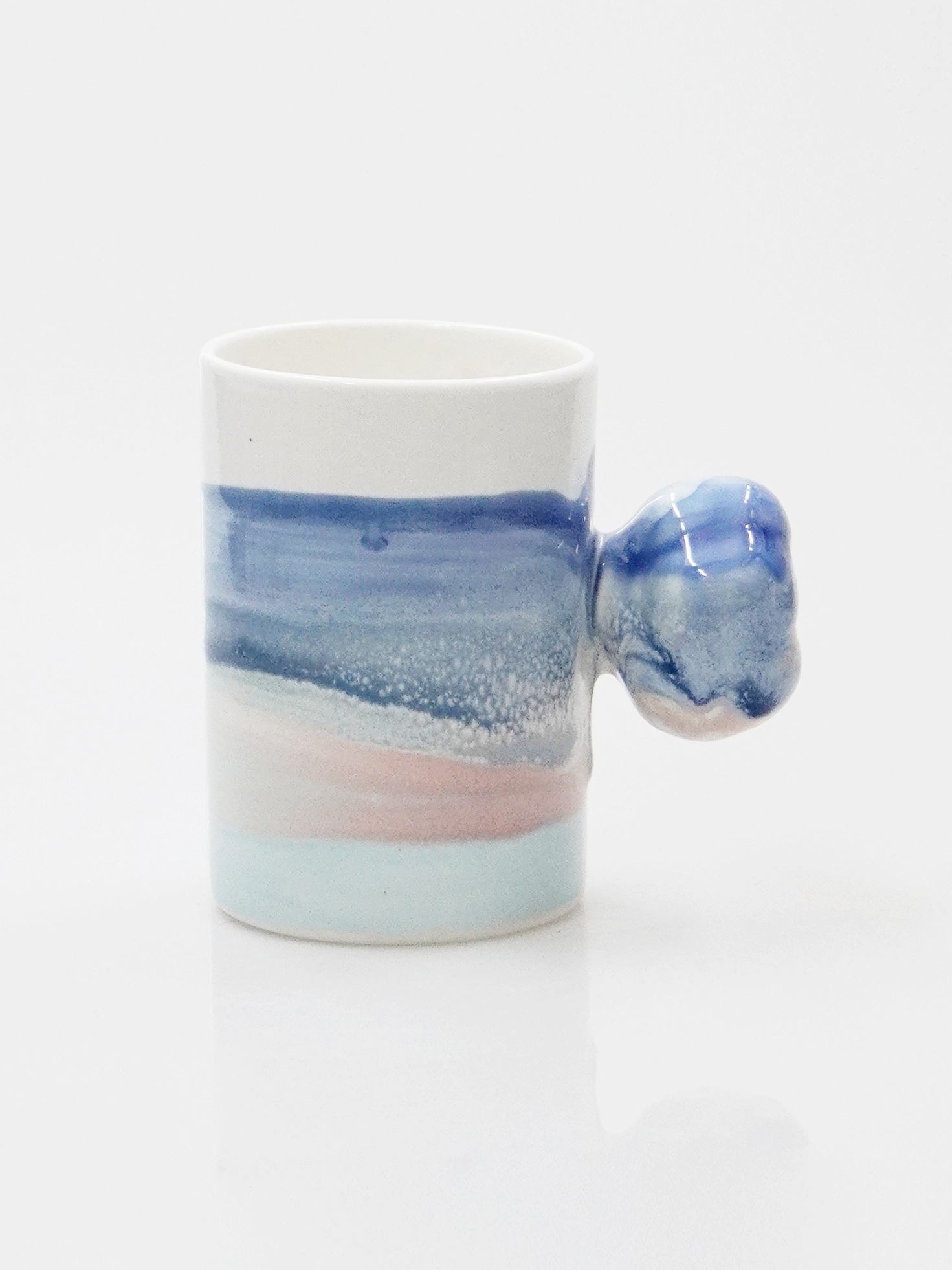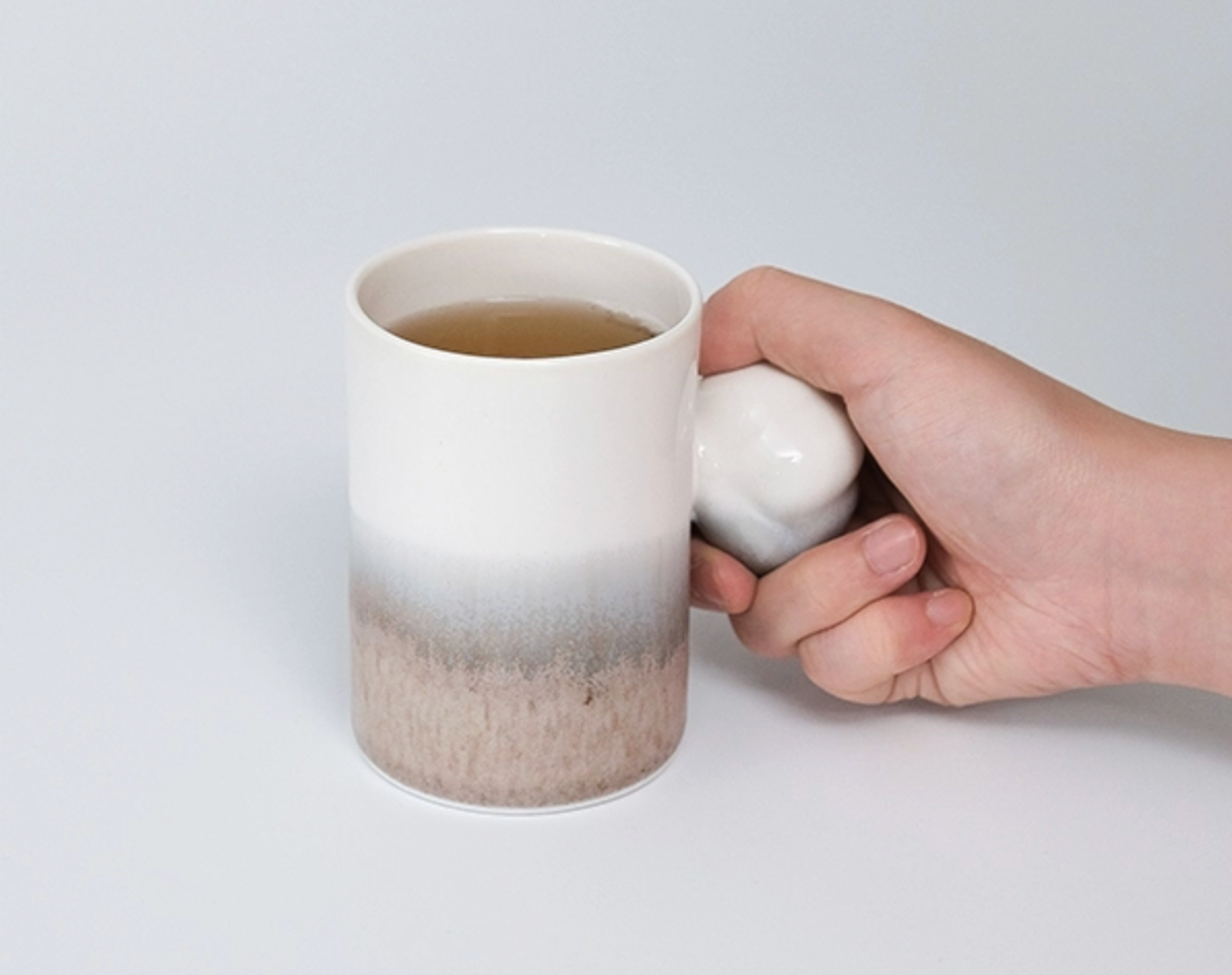 목화솜의 형태를 가장 편한 그립감으로 연구하고 빚어 컵의 손잡이로 기록하였습니다.