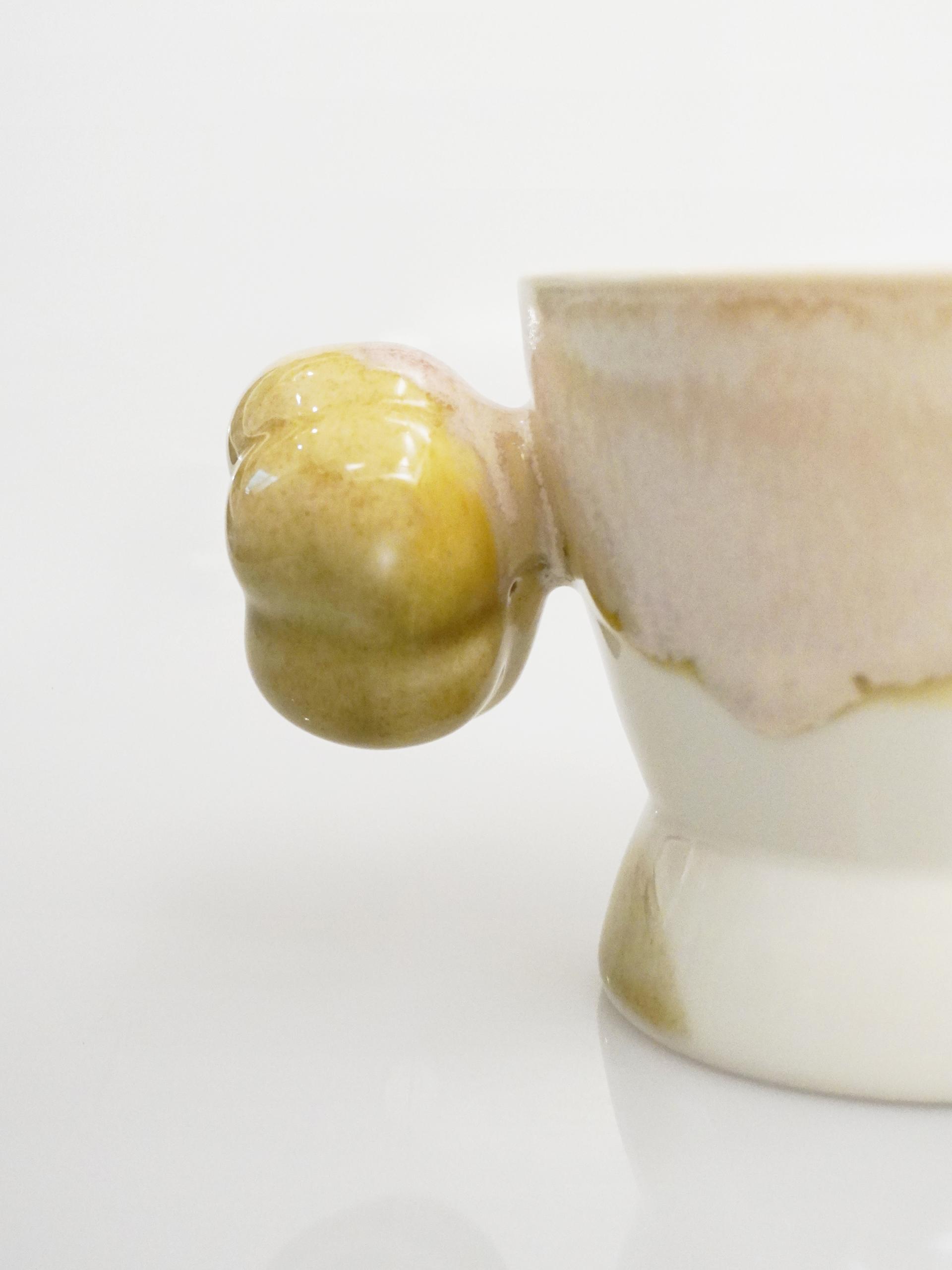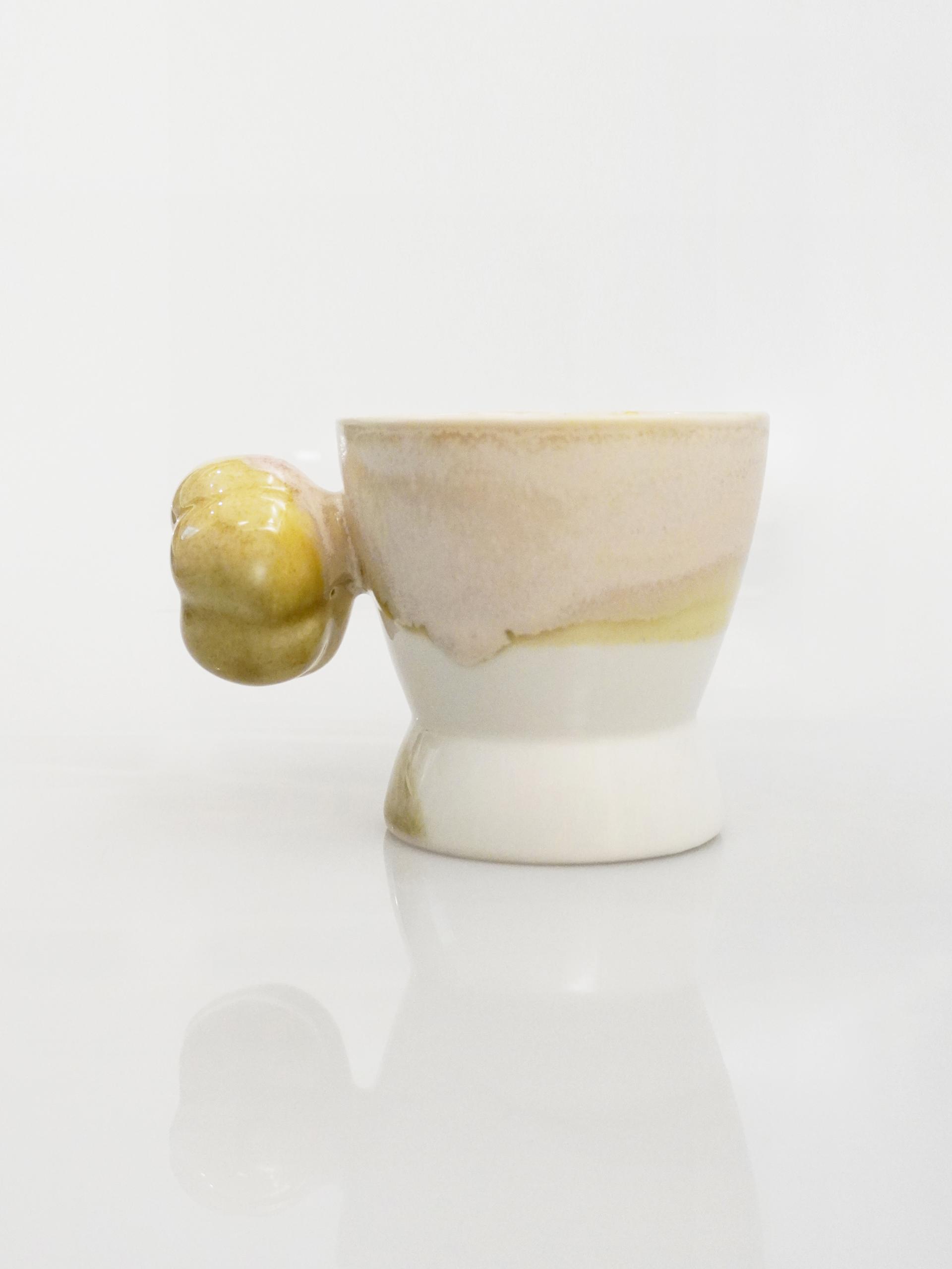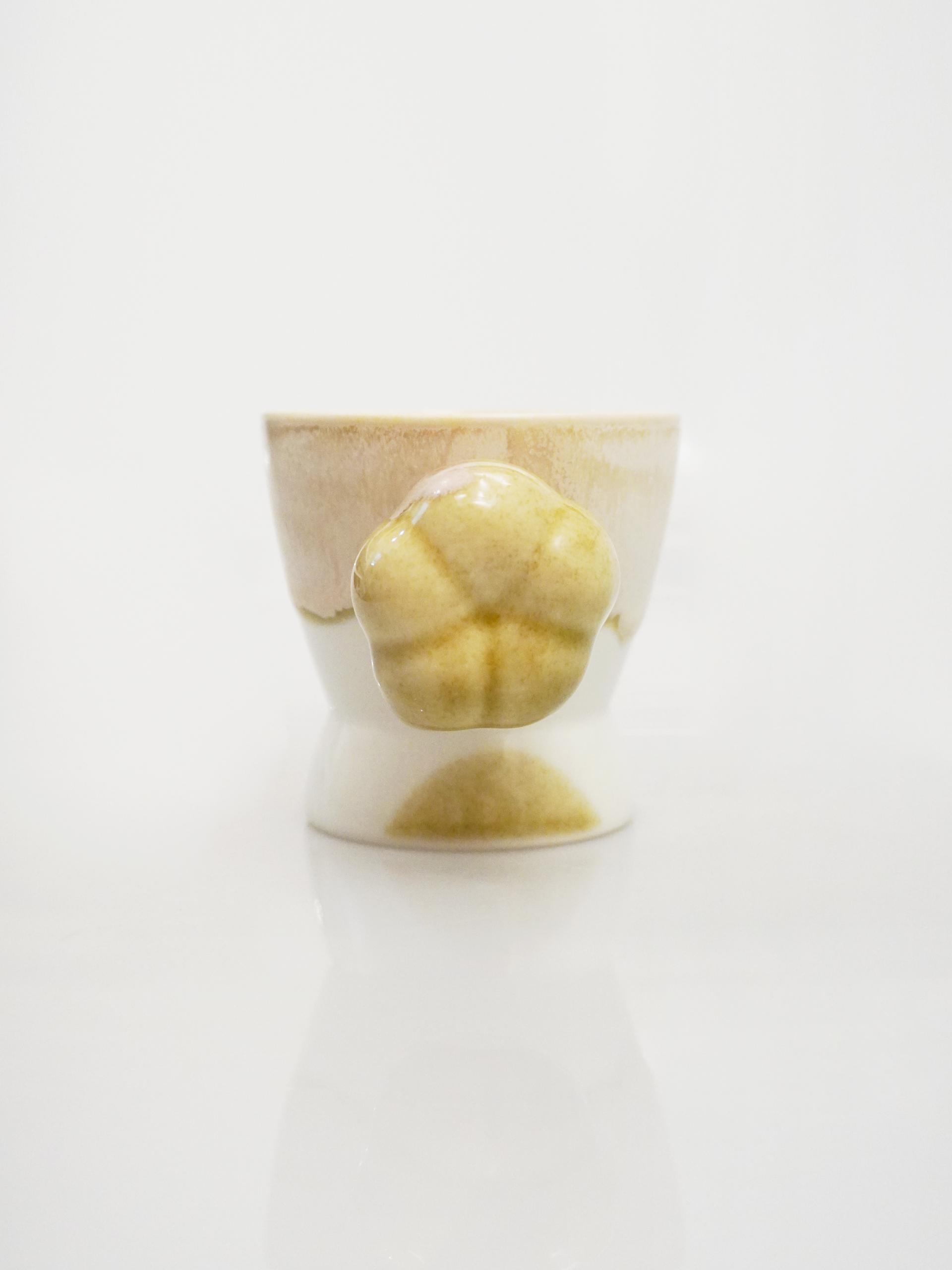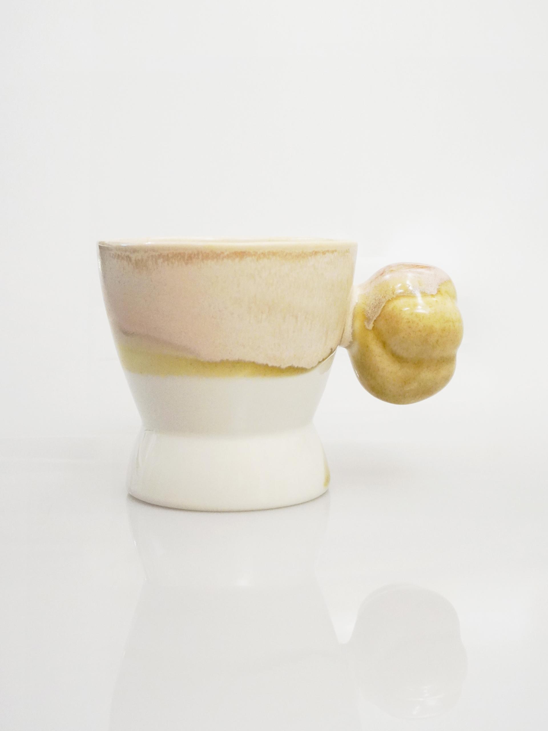 목화솜의 형태를 가장 편한 그립감으로 연구하고 빚어 컵의 손잡이로 기록하였습니다.
