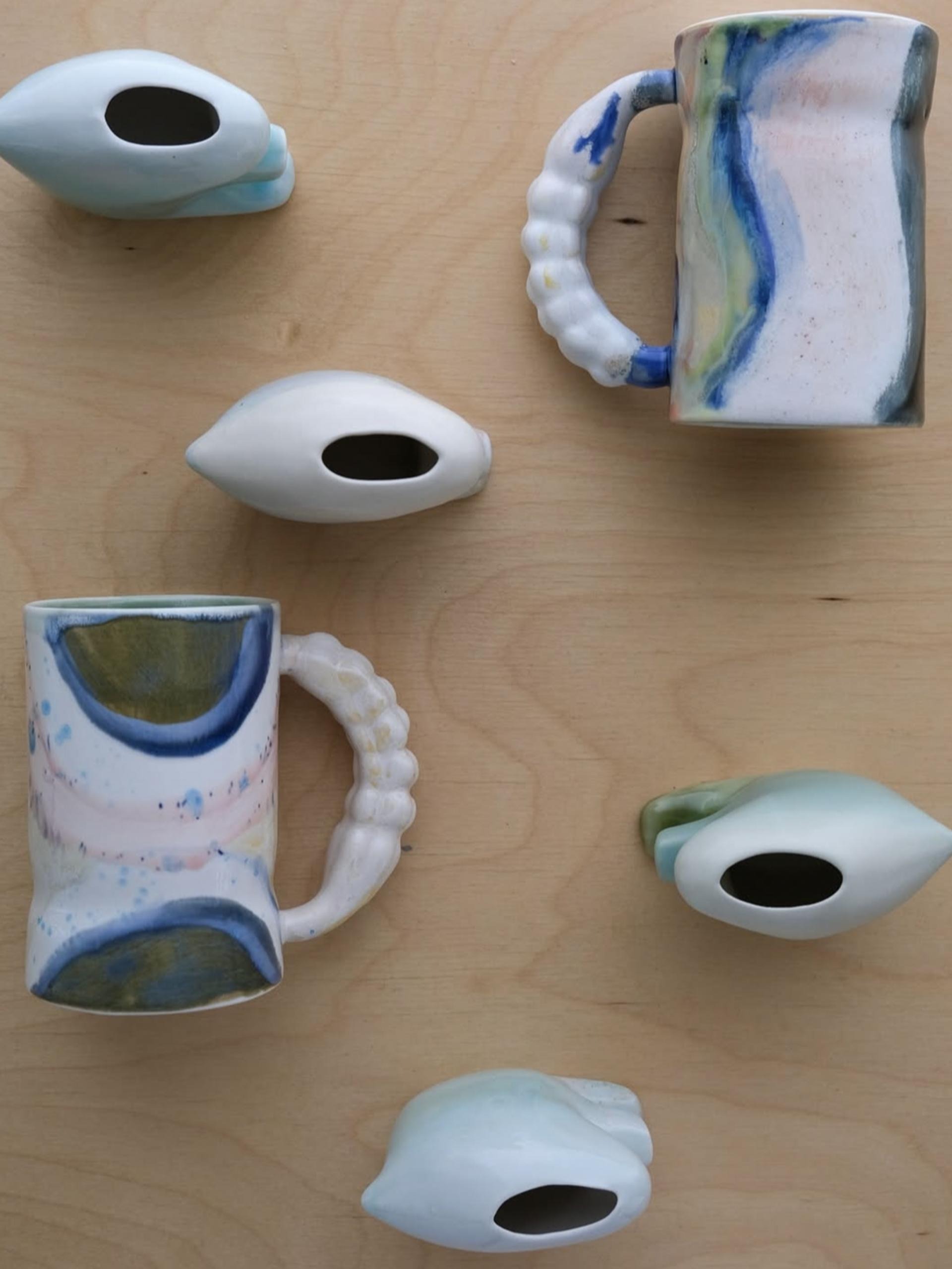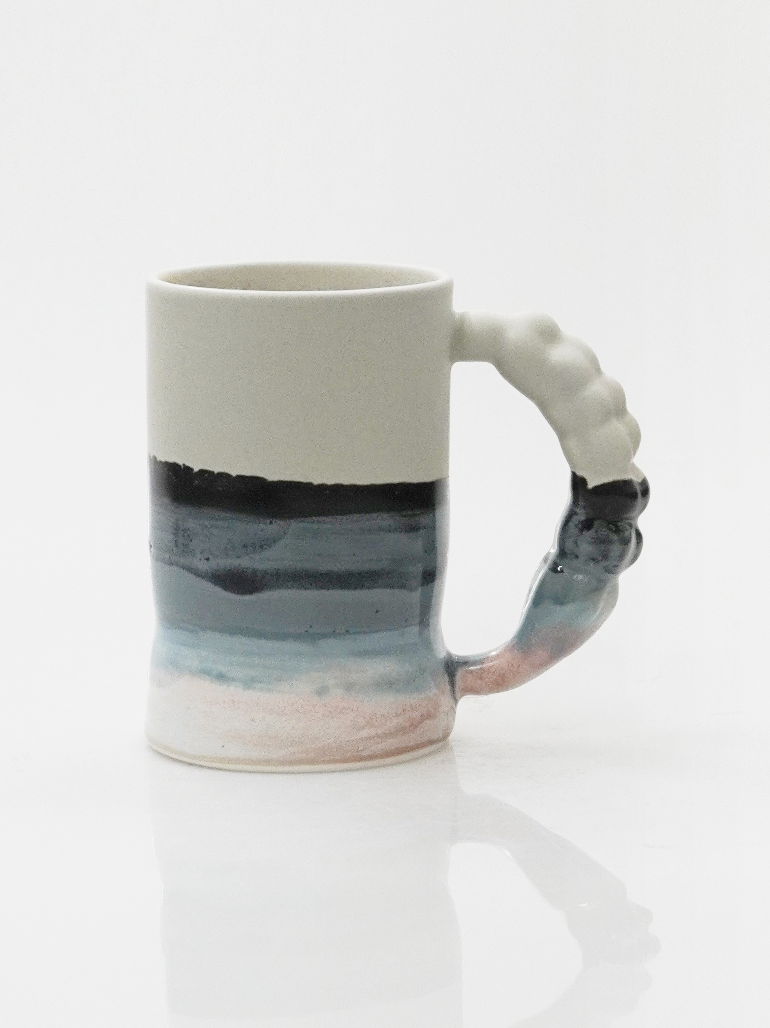 부드러우면서도 강인한 도자를 남기고자 하며, 라벤더의 꽃봉오리를 손잡이의 형태로 빚어 기록하였습니다.