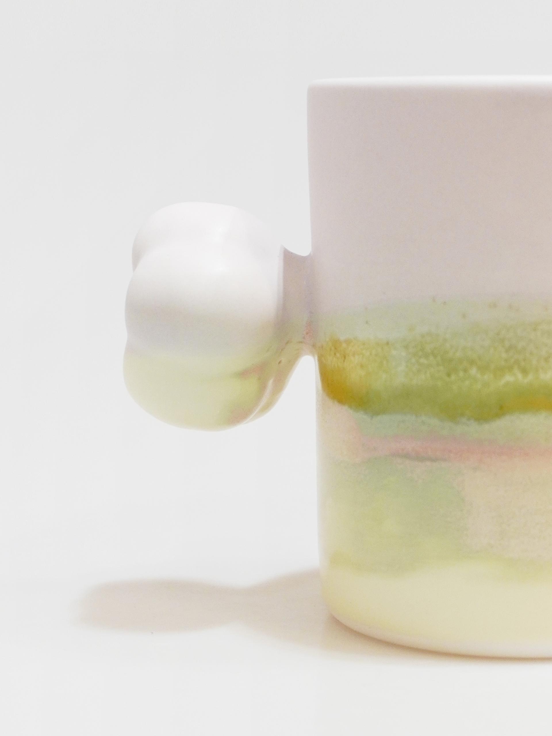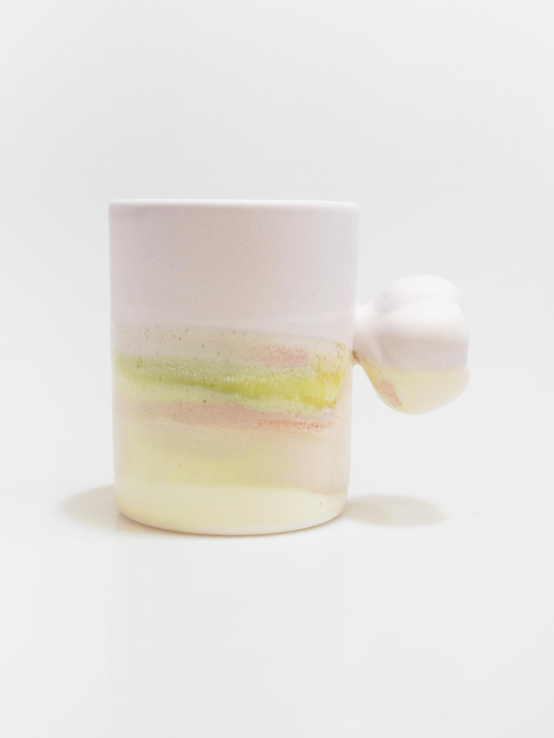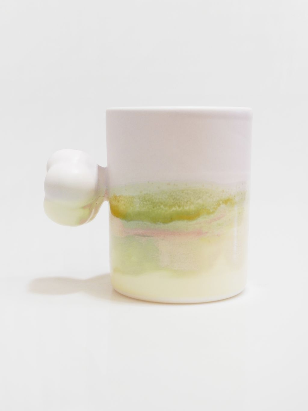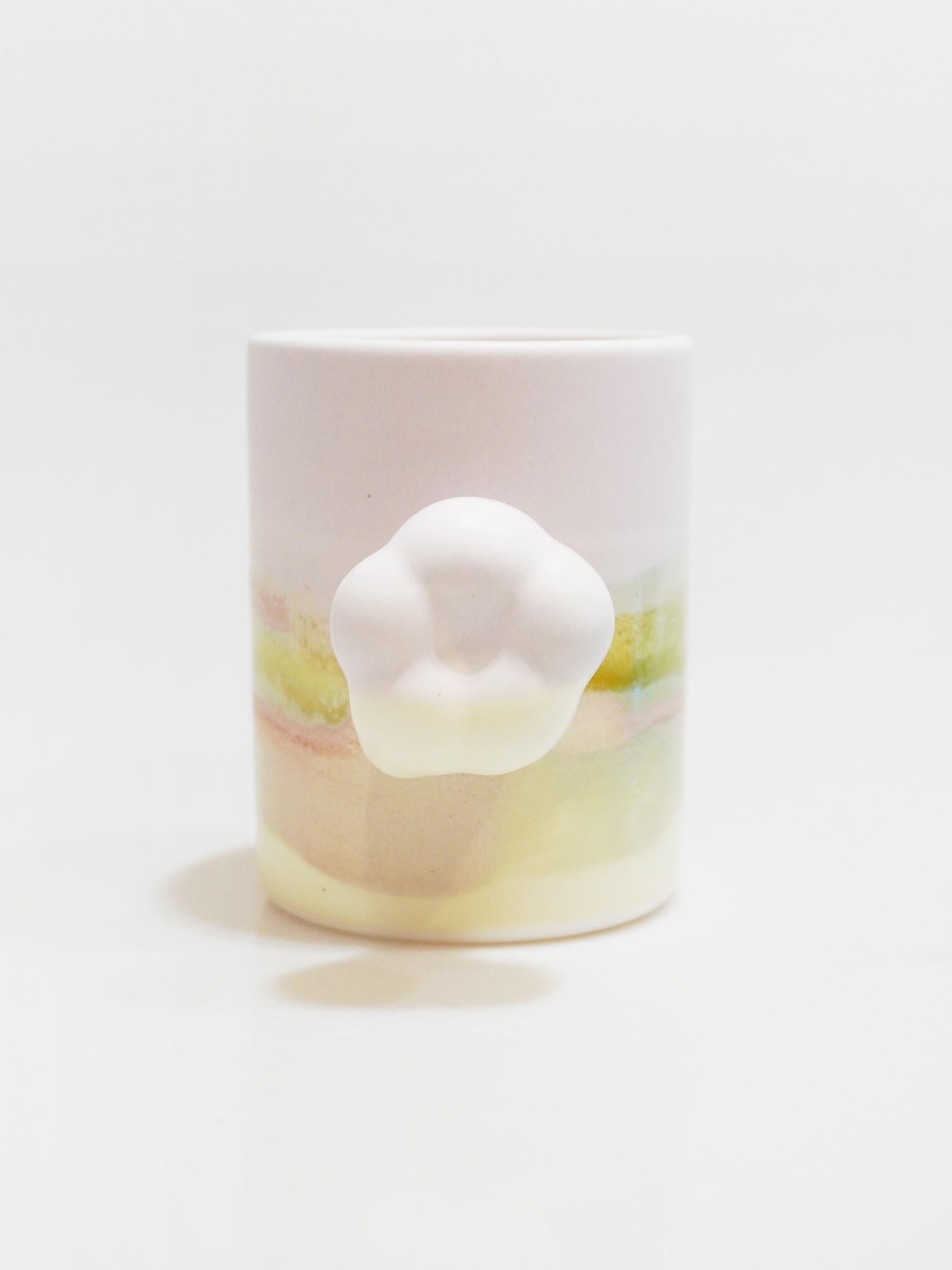 목화솜의 형태를 가장 편한 그립감으로 연구하고 빚어 컵의 손잡이로 기록하였습니다.