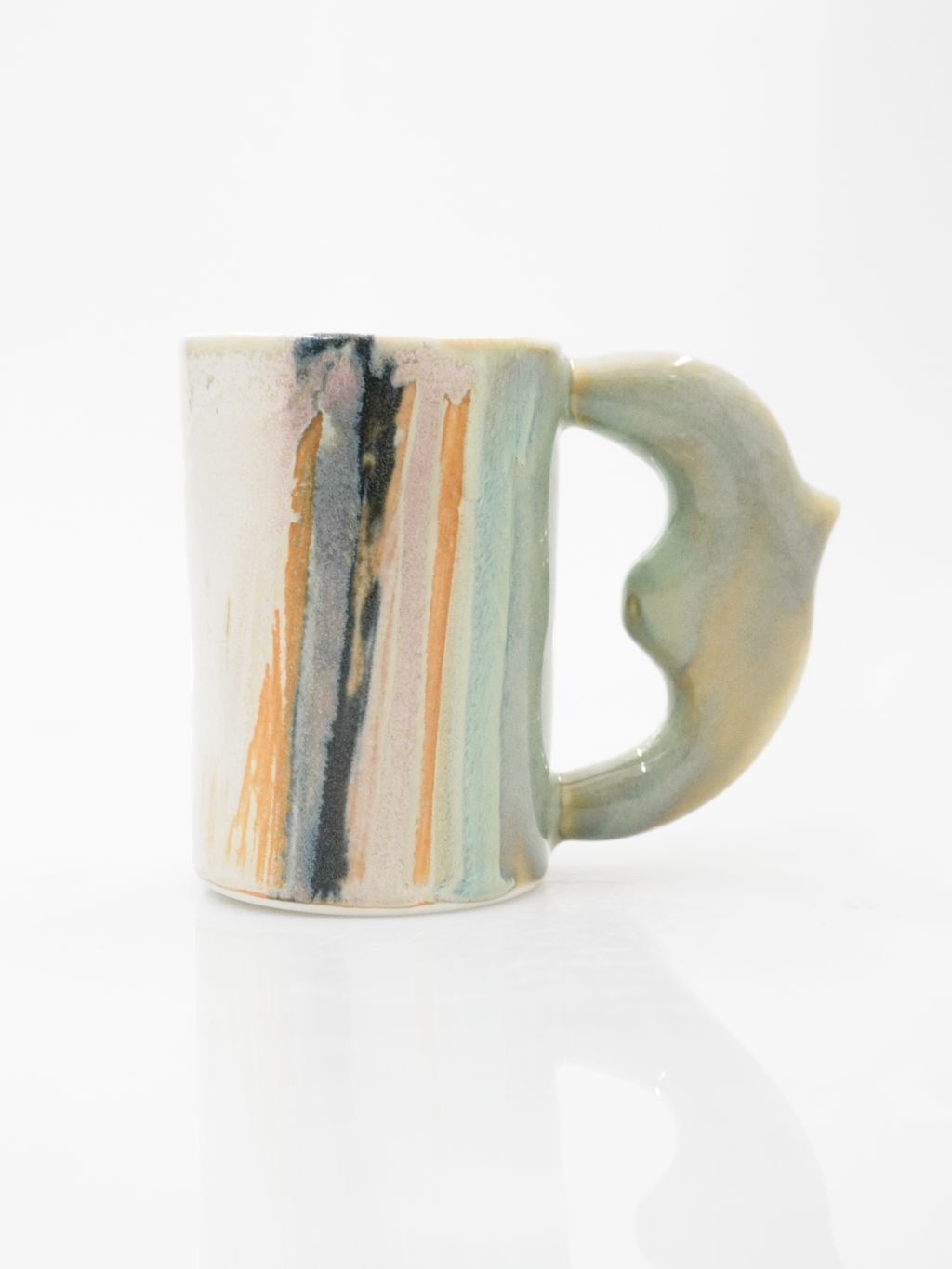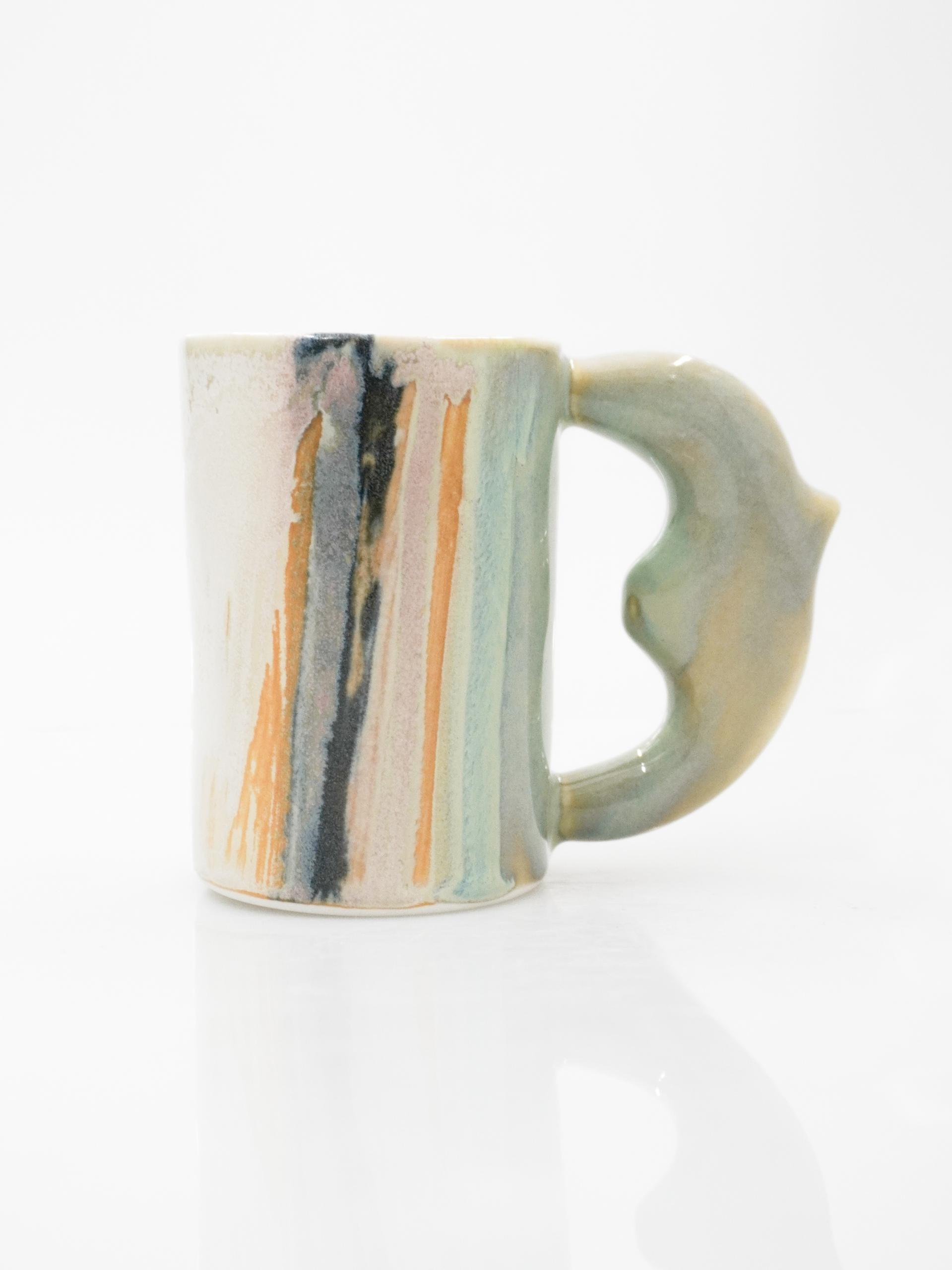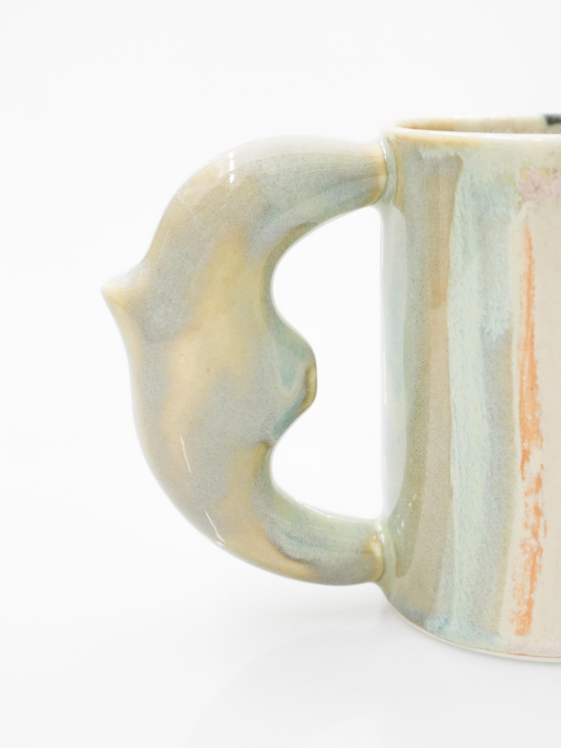 이 새 모양 손잡이는 마치 한 마리의 새가 화려한 꽃의 꽃가루를 묻혀 온 것 같기도 하고, 깊고 깊은 바닷속 파도를 데려온 것 같기도 해요. 그래서인지 보고만 있어도 괜히 여행하는 기분이 드는 컵이랍니다.