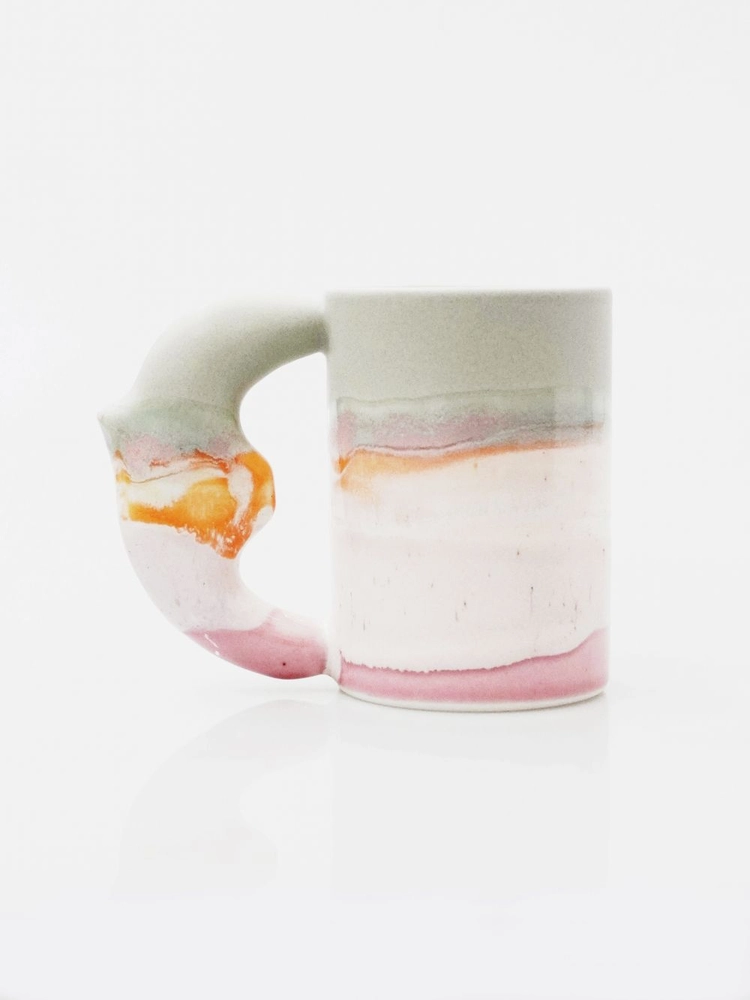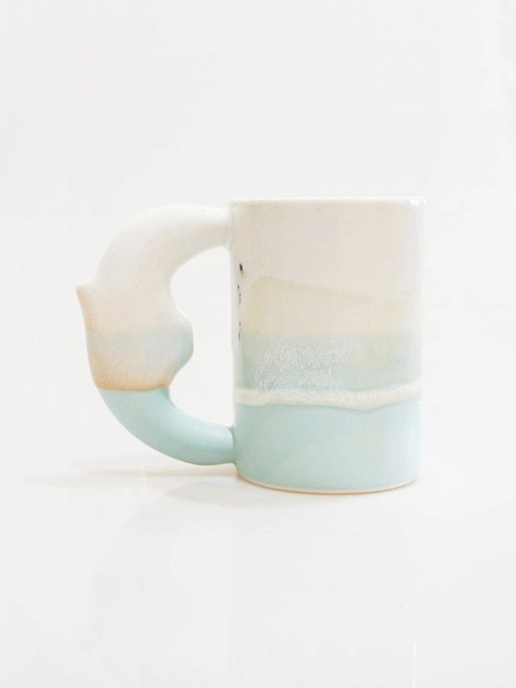 이 새 모양 손잡이는 마치 한 마리의 새가 화려한 꽃의 꽃가루를 묻혀 온 것 같기도 하고, 깊고 깊은 바닷속 파도를 데려온 것 같기도 해요. 그래서인지 보고만 있어도 괜히 여행하는 기분이 드는 컵이랍니다.