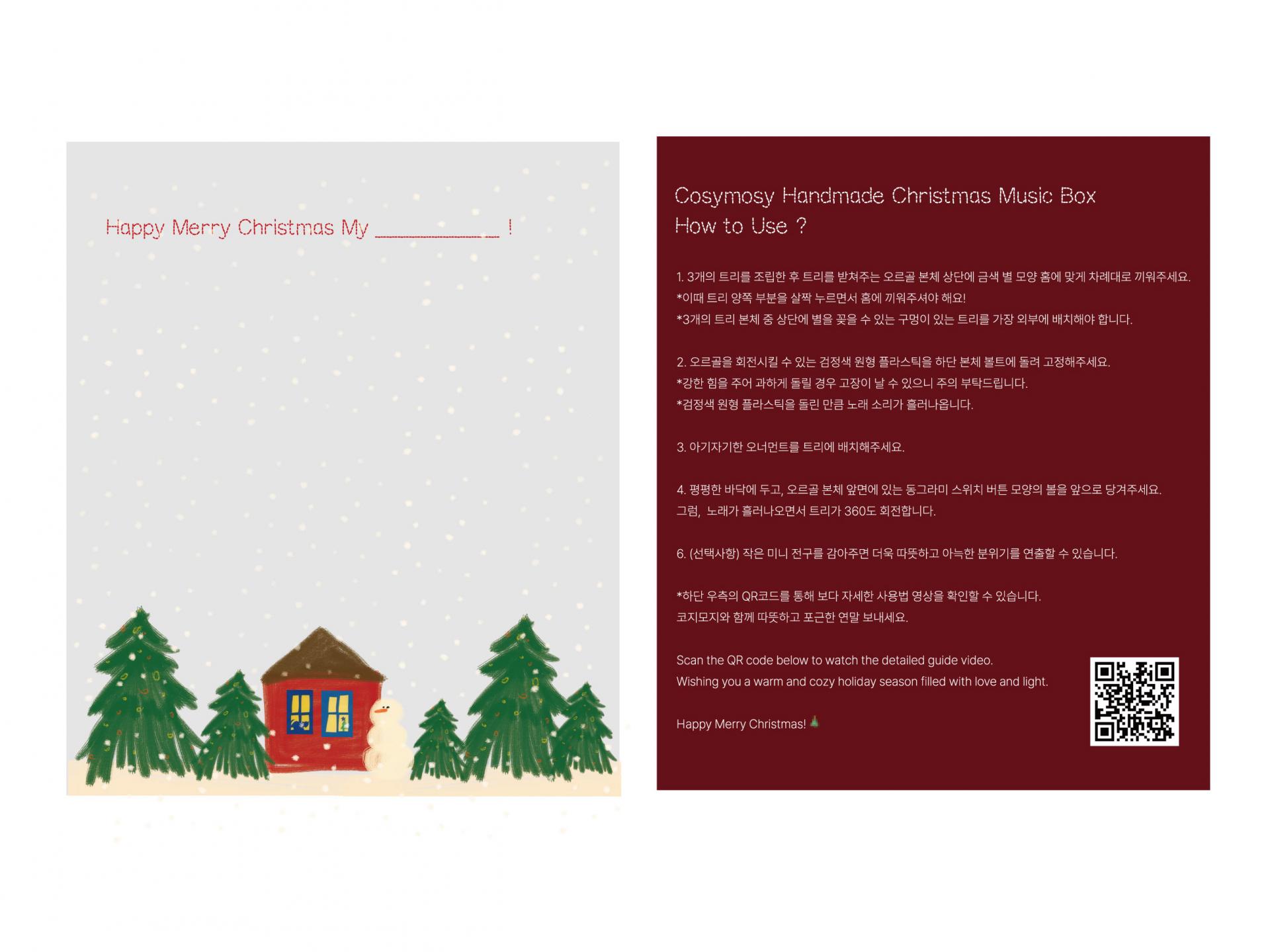 ▼ *2025년 버전은 뉴 크리스마스 패키지와 함께 조립 방법이 기재된 안내카드와 간단한 메세지를 전할 수 있는 엽서 1장이 동봉됩니다.