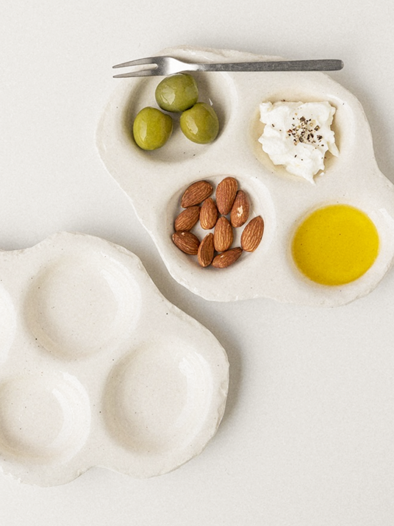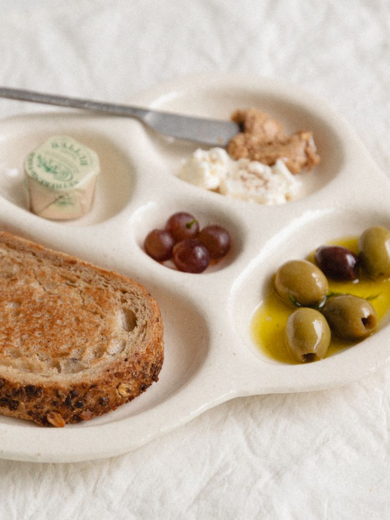 곡선이 자연스럽게 이어지는 형태는 서로 다른 음식을 조화롭게 담기 편하고, 소스나 잼, 작은 디저트를 나누어 올릴 때도 깔끔하게 정돈됩니다.