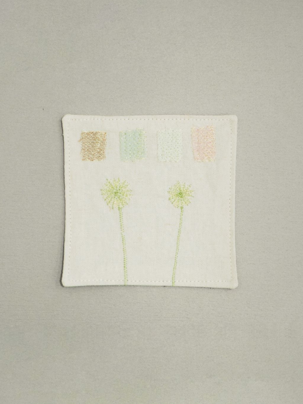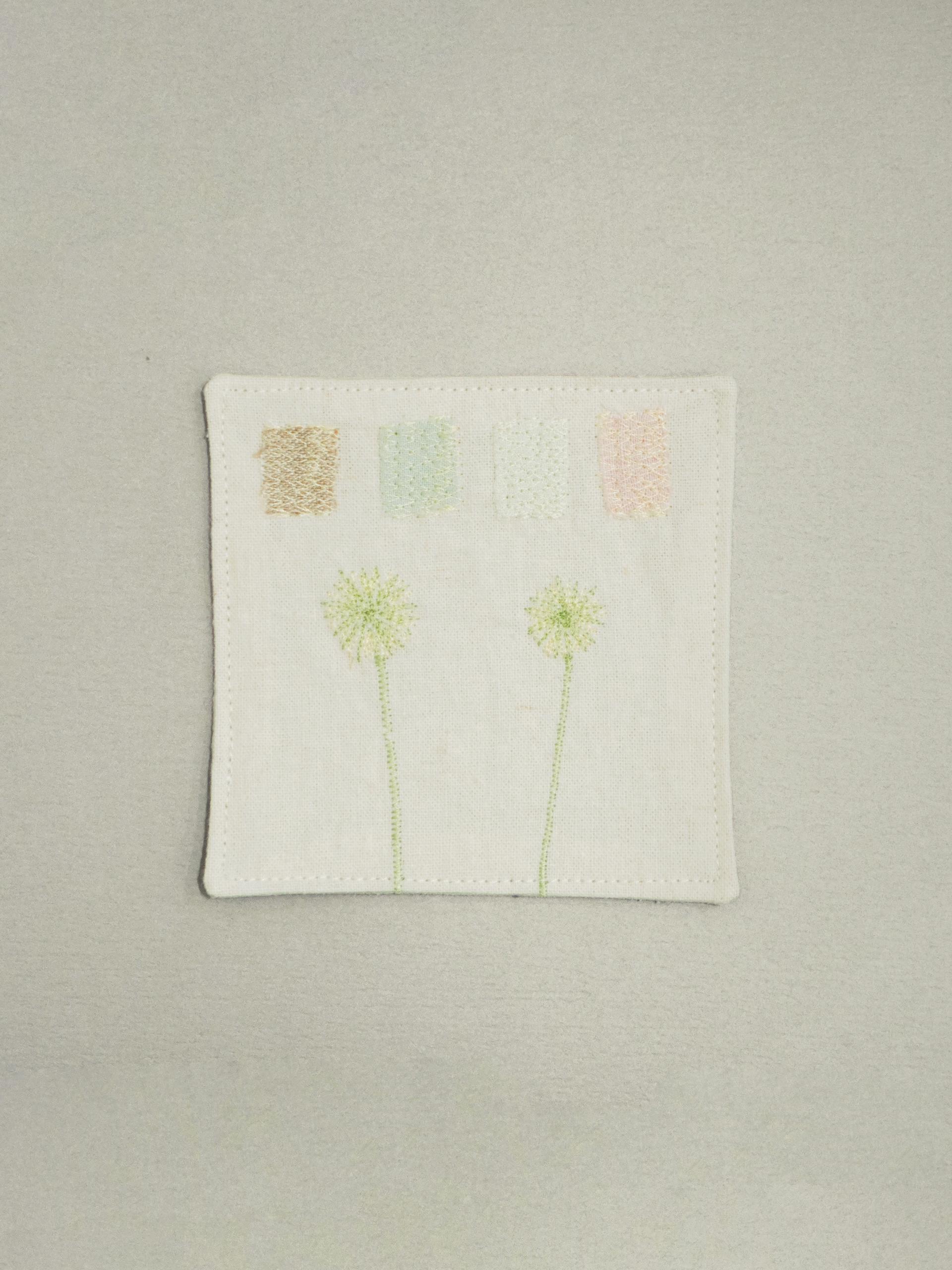 👩🏻 : 차분한 색감의 원단 위에 꽃잎과 풀잎 같은 작은 조각들을 작가님의 손으로 한 땀 한 땀 수놓아 정성스럽게 만든, 세상에 단 하나뿐인 원앤온리 코스터예요.