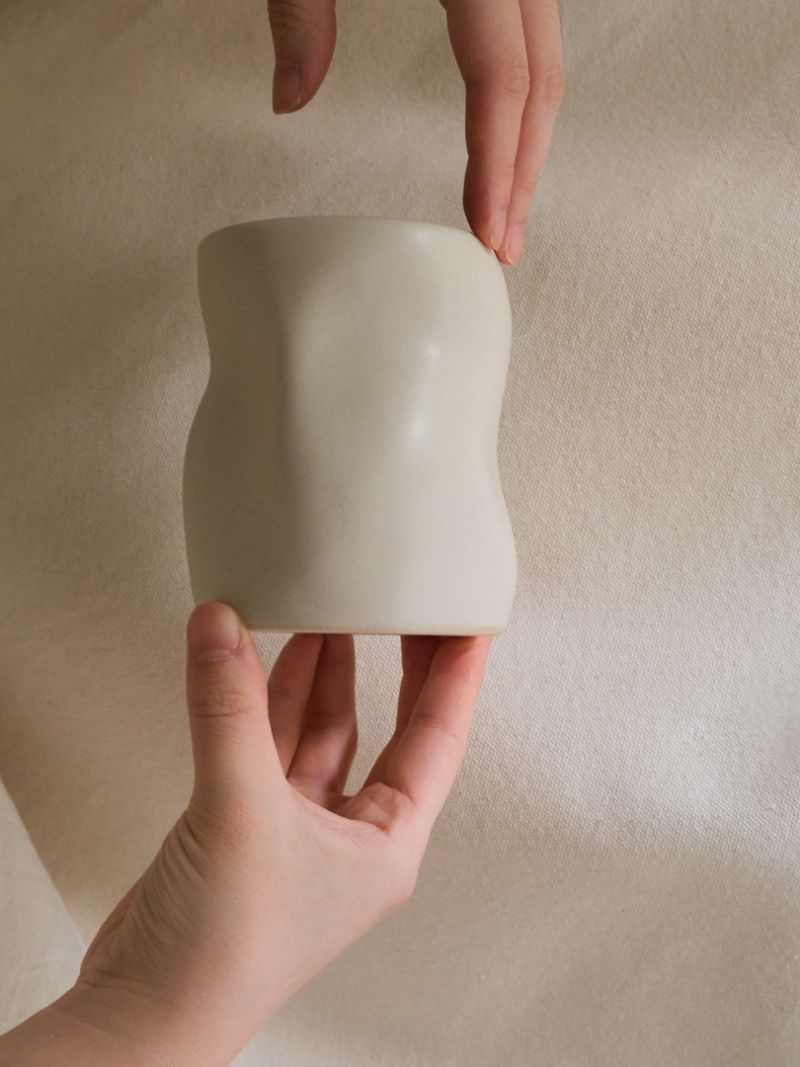 Body Cup 01 은 여성의 신체 중 사타구니의 굴곡을 아름답고 자연스러운 형태로 담았습니다. 단독 오브제, 컵 등의 용도로 활용할 수 있습니다. 백색부터 여러가지의 빛과, 그로부터 발생되는 색을 각기 담아 특유의 분위기를 냅니다.