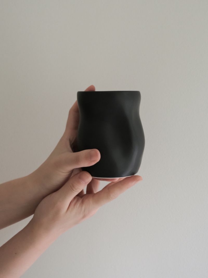 👩🏻 : 어떤 각도로 바라보아도 동일하지 않은 굴곡 쉐입을 띄고 있는 우아한 디자인의 바디 컵입니다.